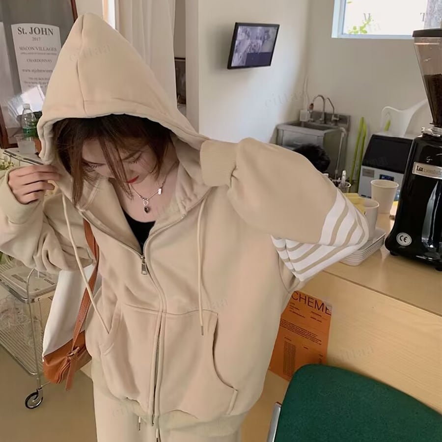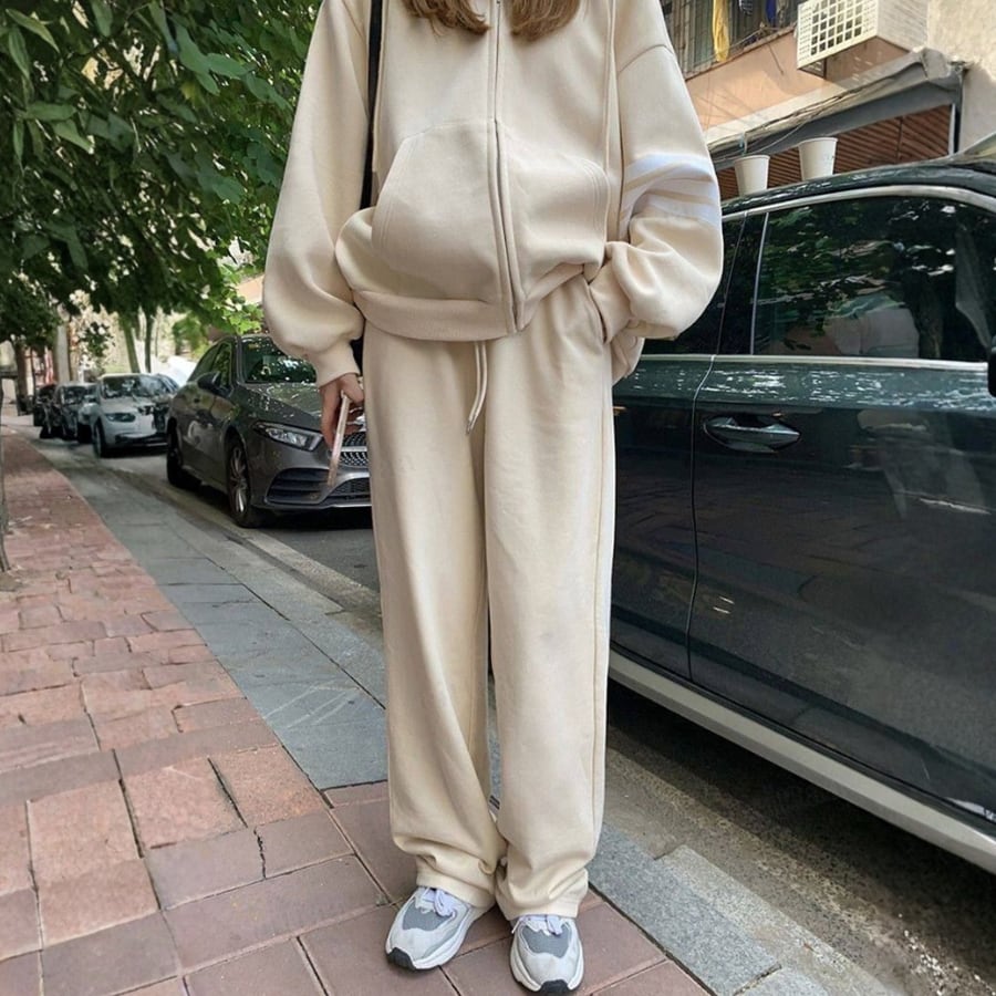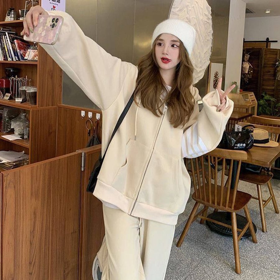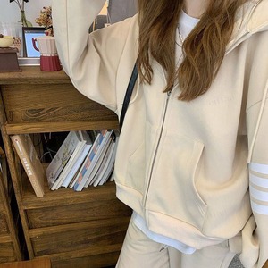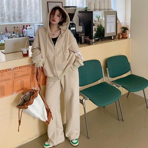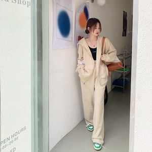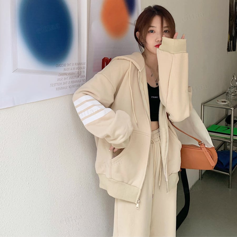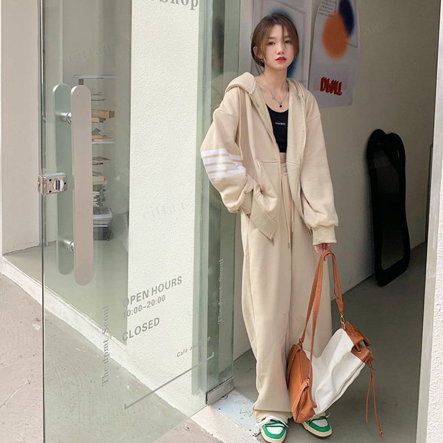 ★予約★D-814 2026新作♡【上下セット】袖ラインジップアップパーカーセットアップ アプリコット
