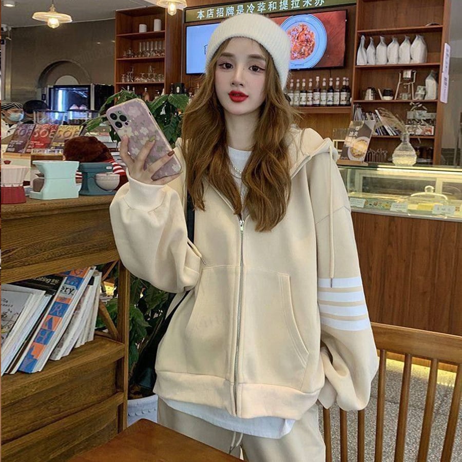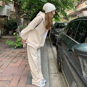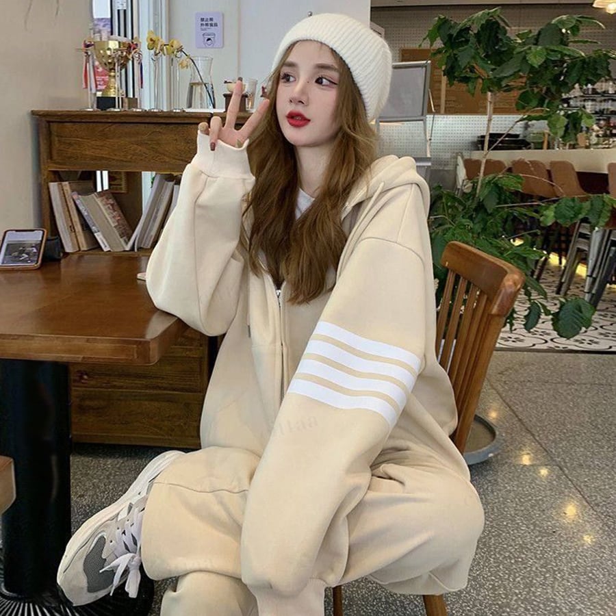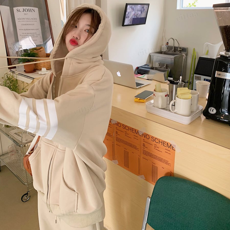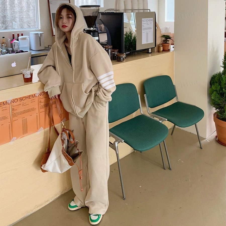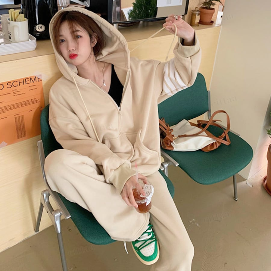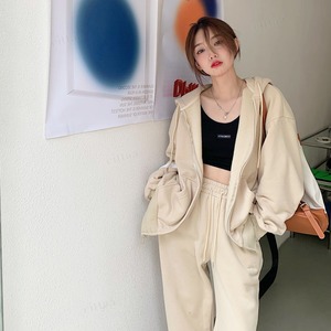 ★予約★D-814 2026新作♡【上下セット】袖ラインジップアップパーカーセットアップ アプリコット
