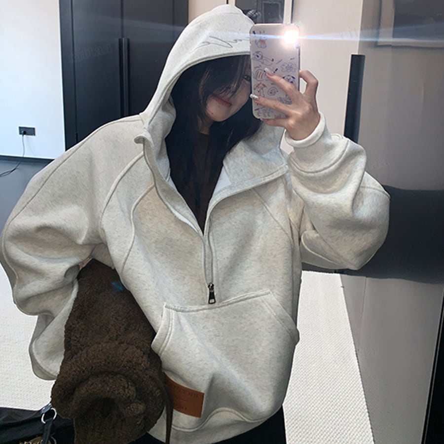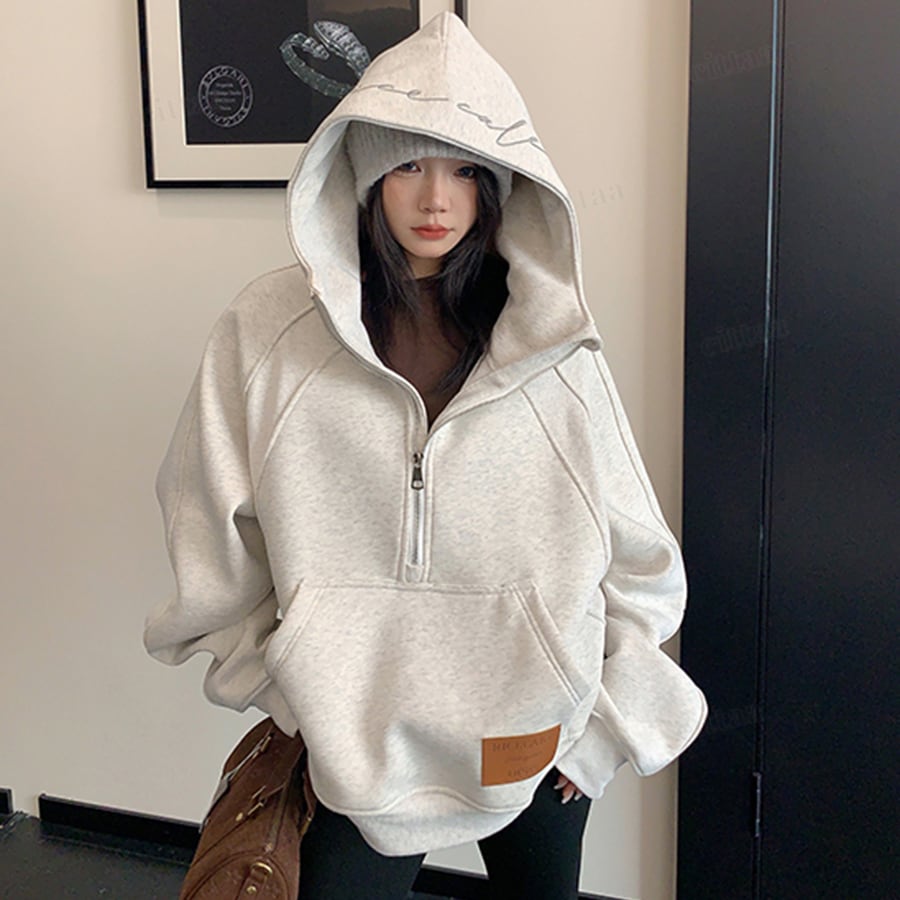フードの刺繍ロゴで差がつくハーフジップフーディー♡