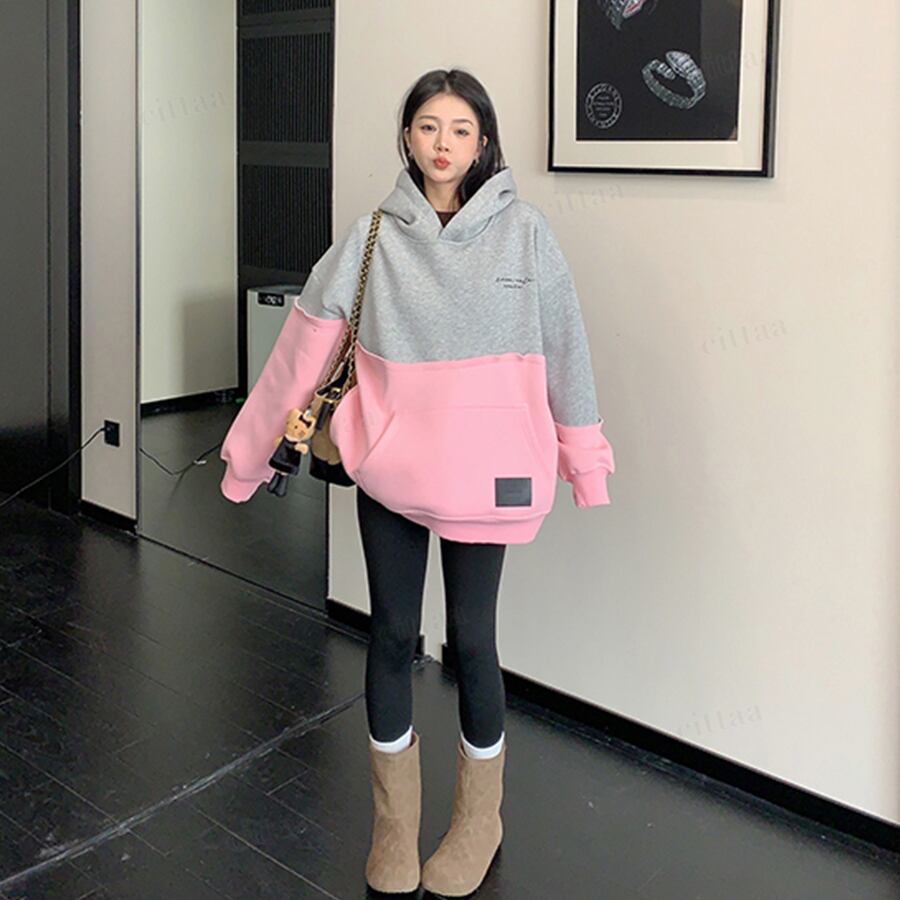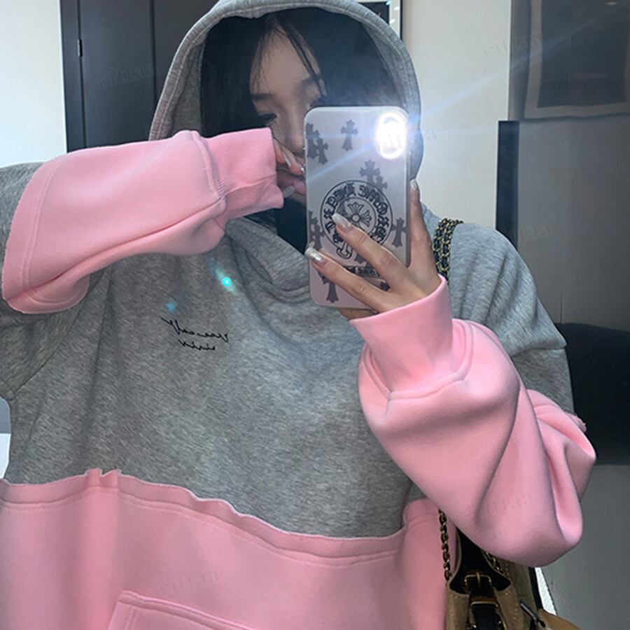 ★予約★D-818 2026新作♡RICECAKEラベル付き配色フーディー ピンク