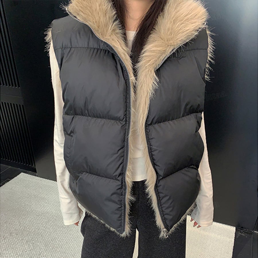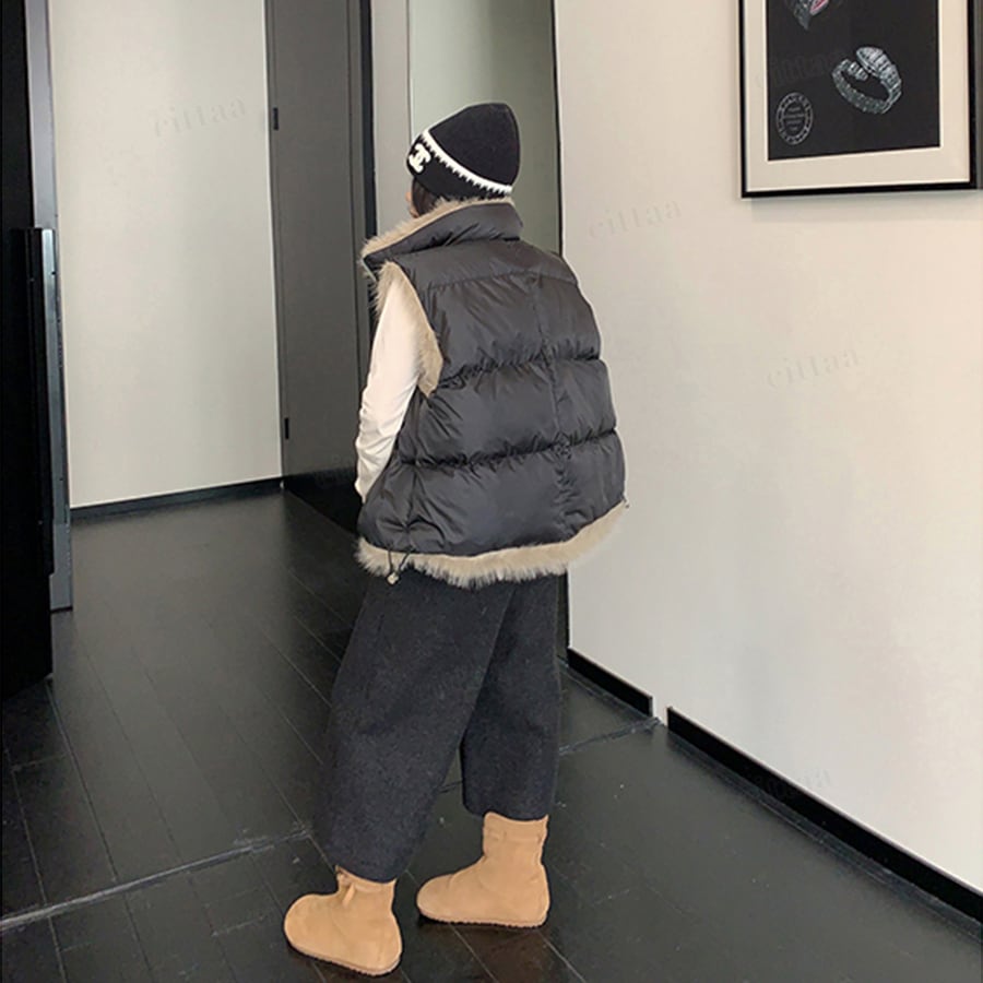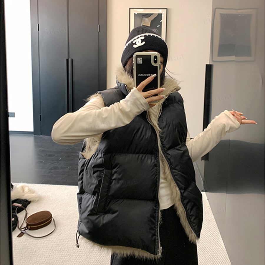 ★予約★D-819 2026新作♡ricecake刺繍ロゴリバーシブルファーベスト ブラック