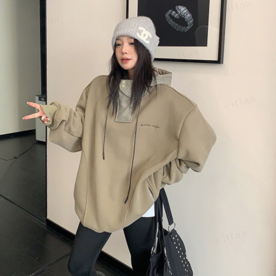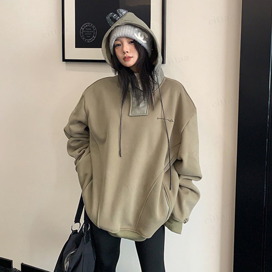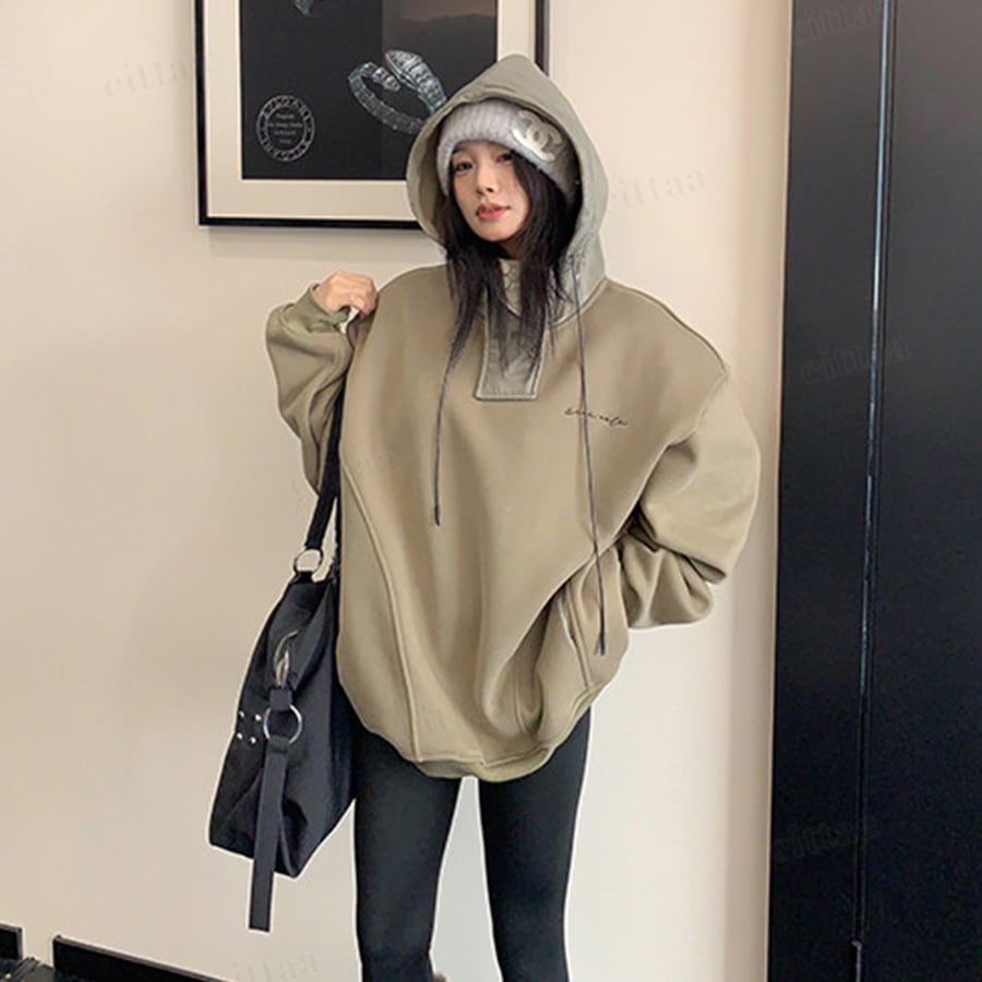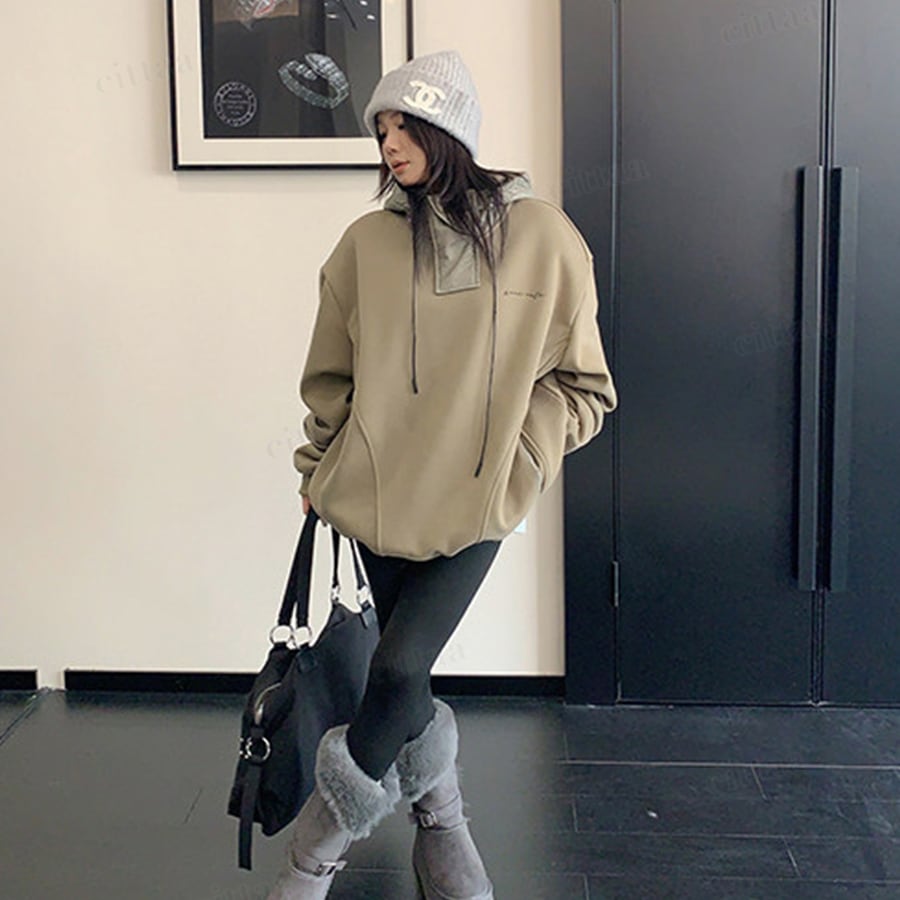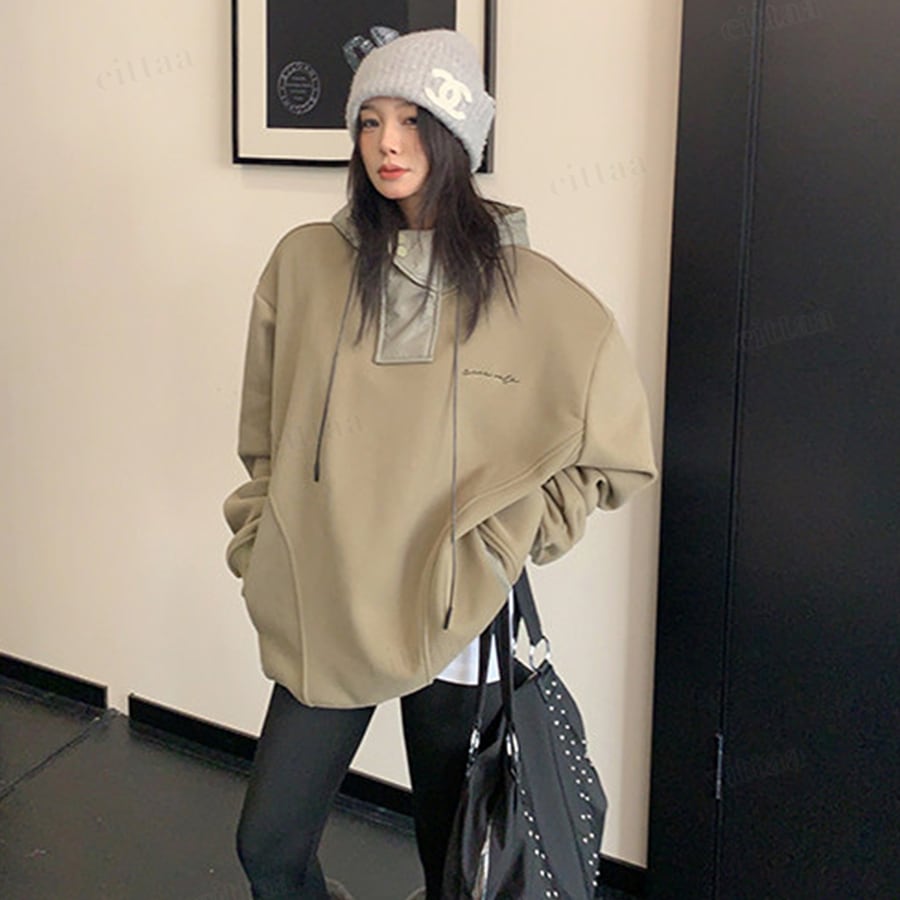 ★予約★D-826 2026新作♡ricake刺繍ロゴ異素材MIXフーディー ライトグリーン
