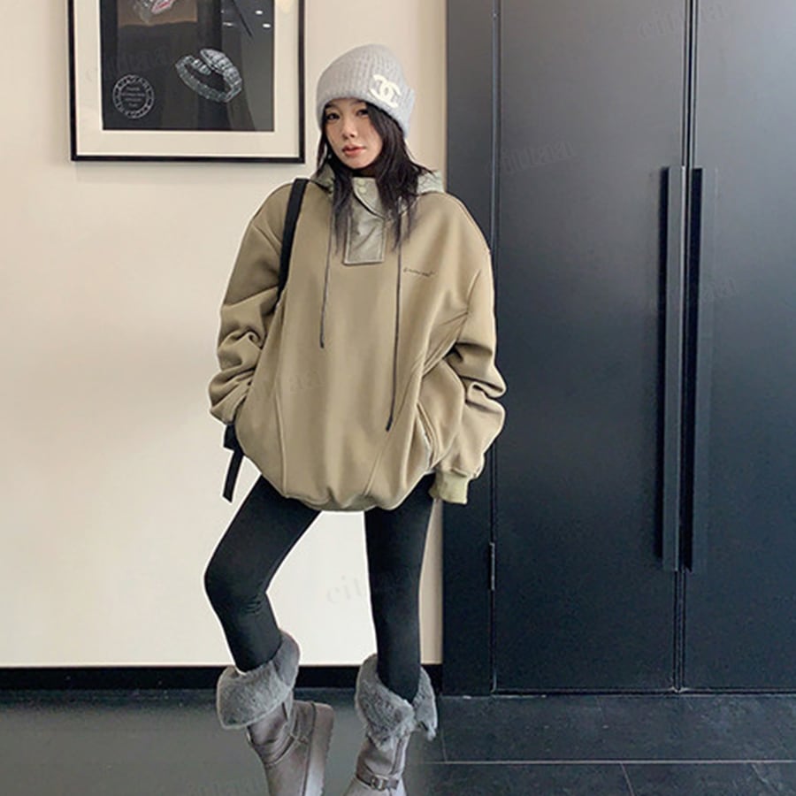 メンズライクなゆったりシルエットで、ストリート感のある着こなしが完成。Tシャツの裾を少し覗かせたレイヤードスタイルもおすすめで、こなれ感たっぷり。