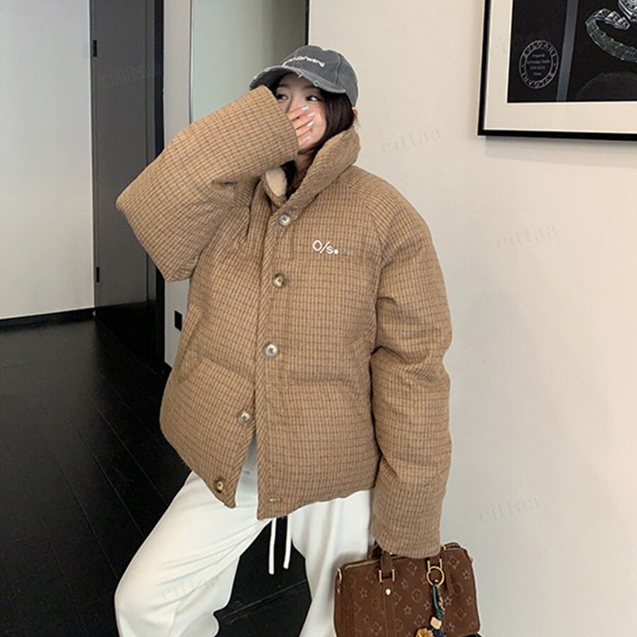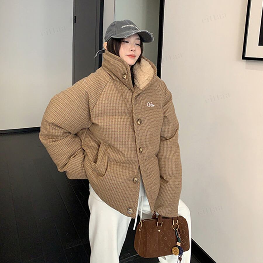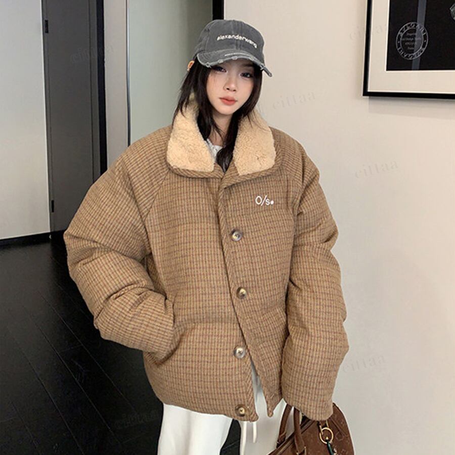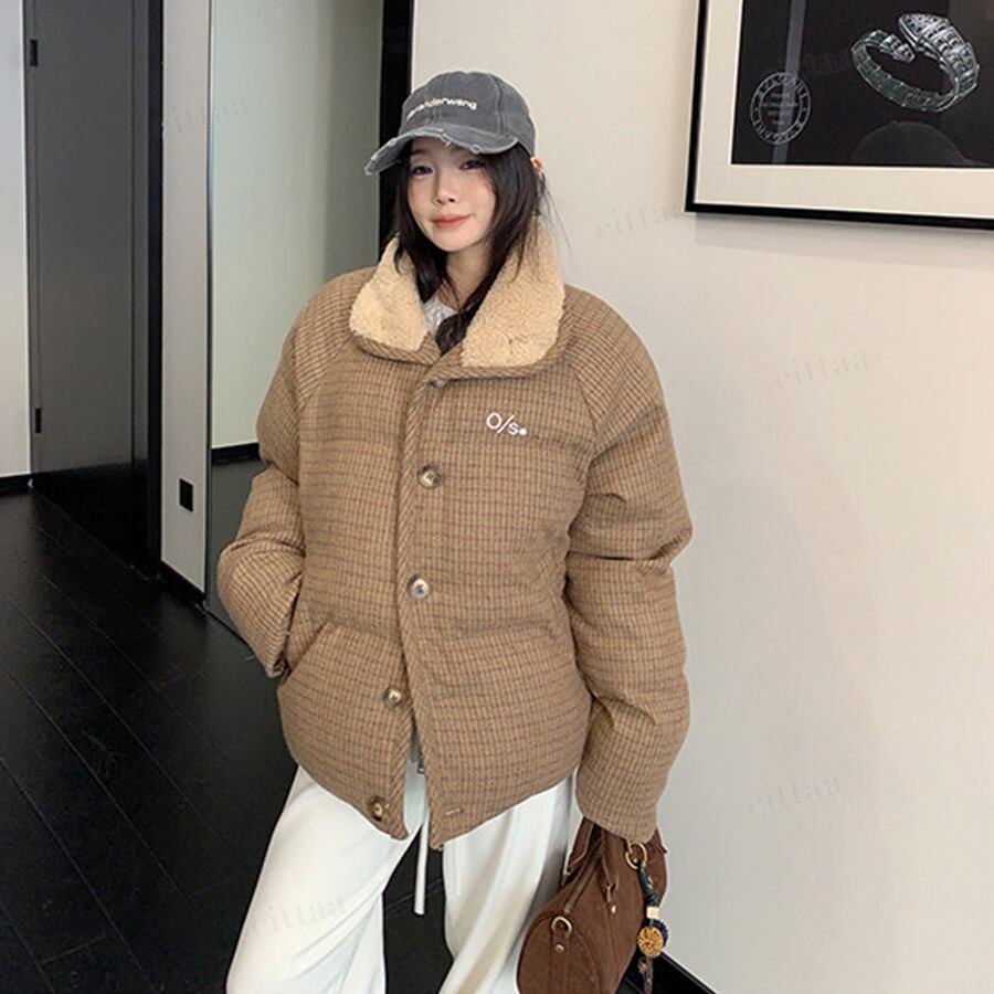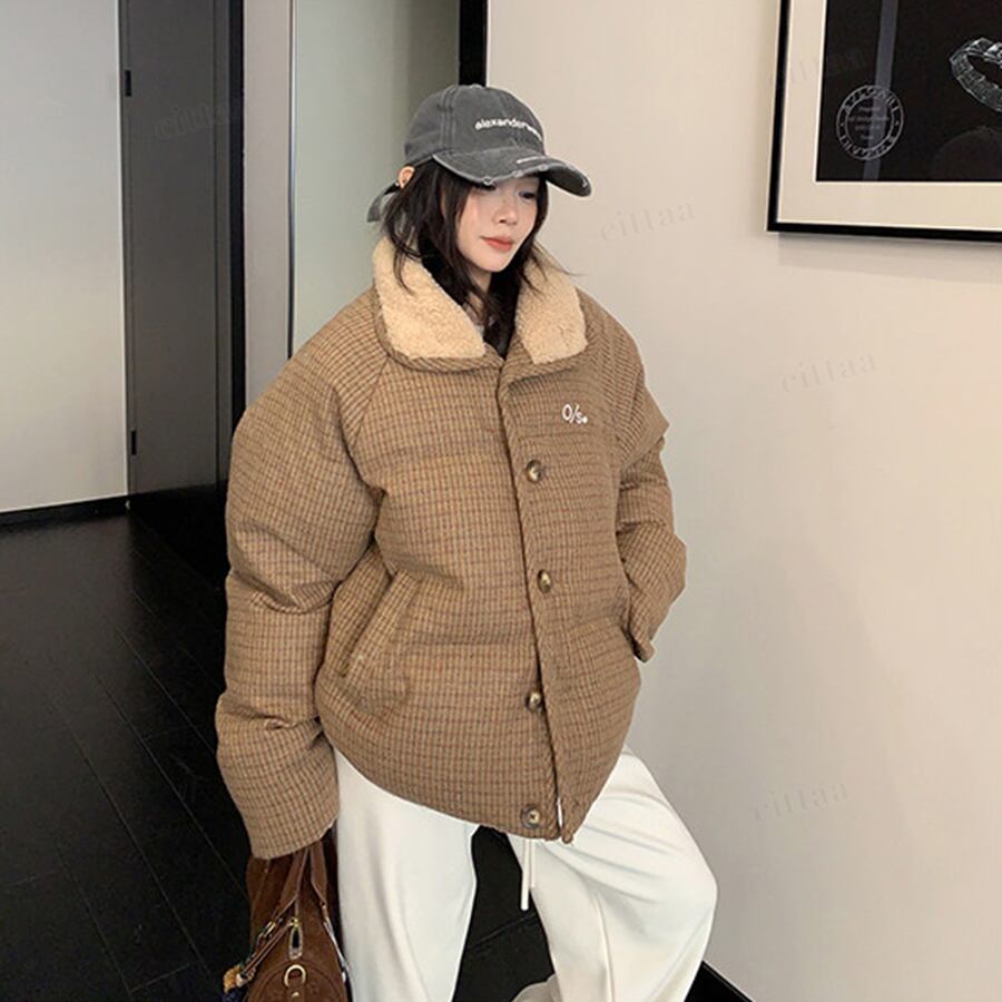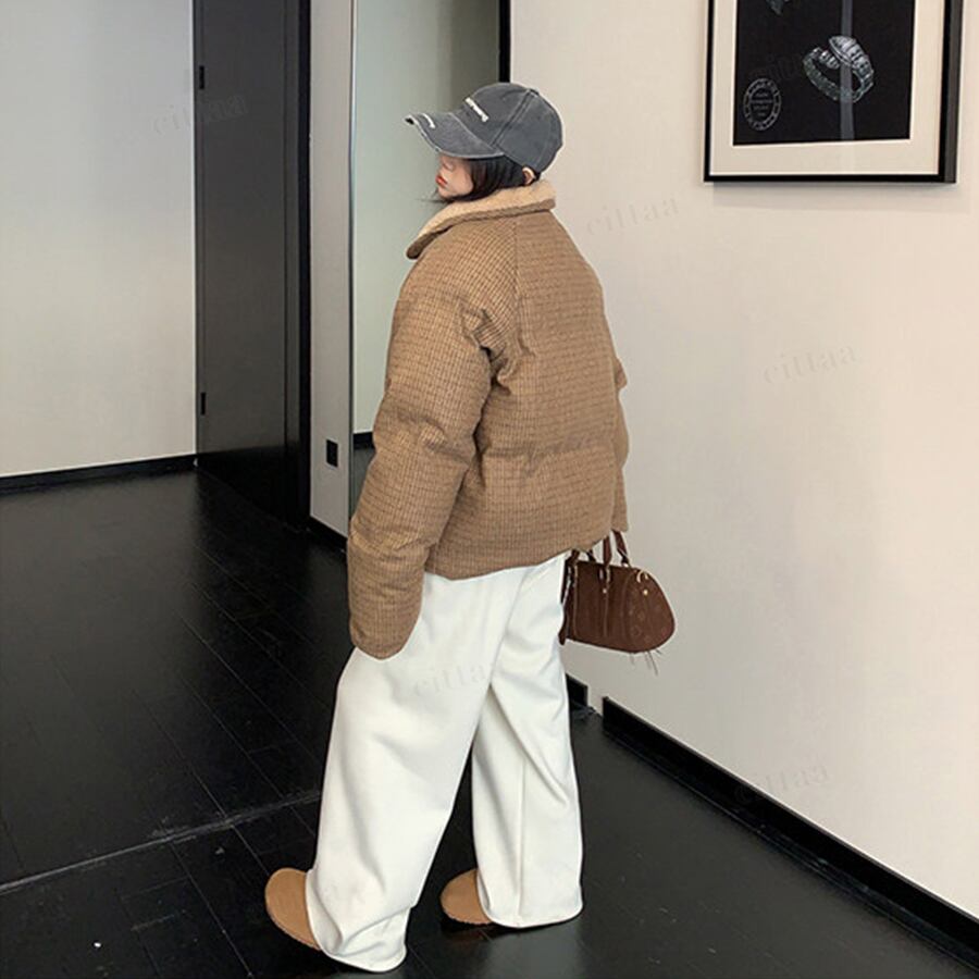 ★予約★D-828 2026新作♡OS襟ボアレトロチェック柄中綿ジャケットコート ブラウン