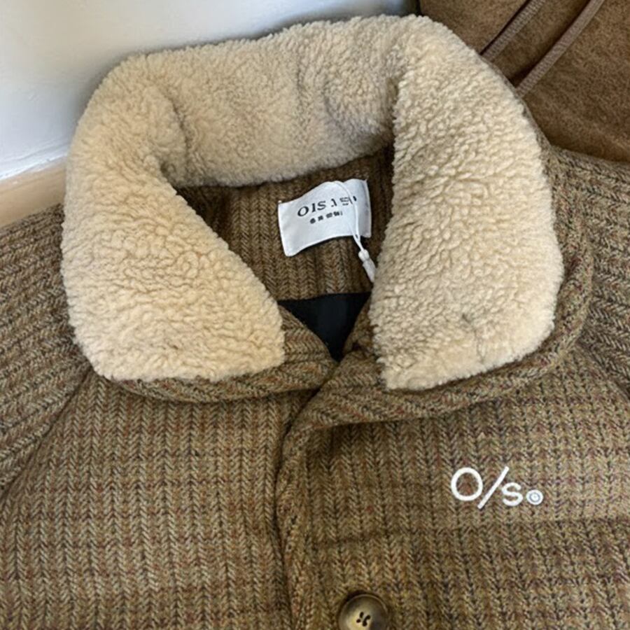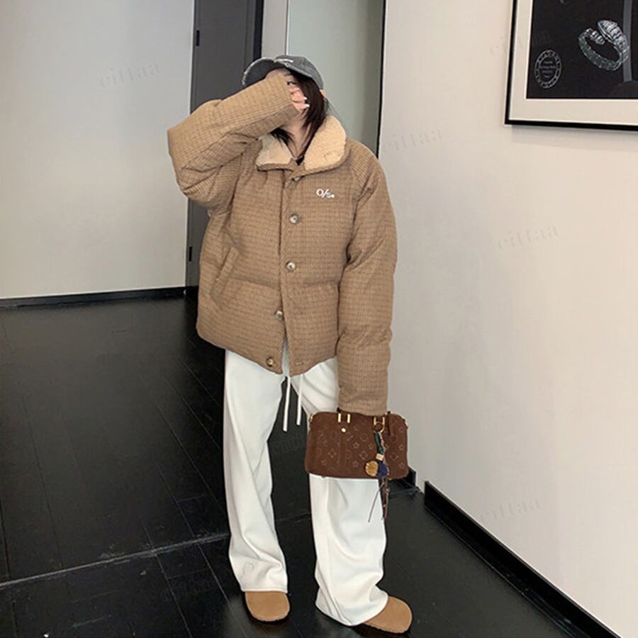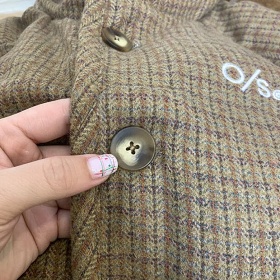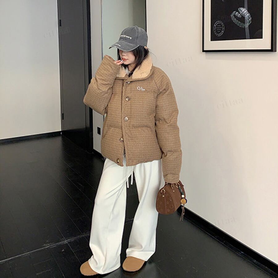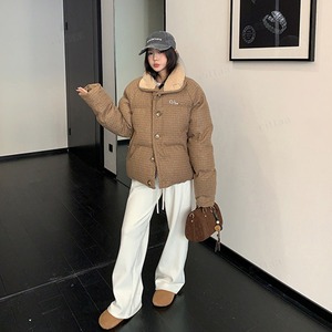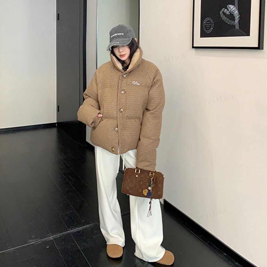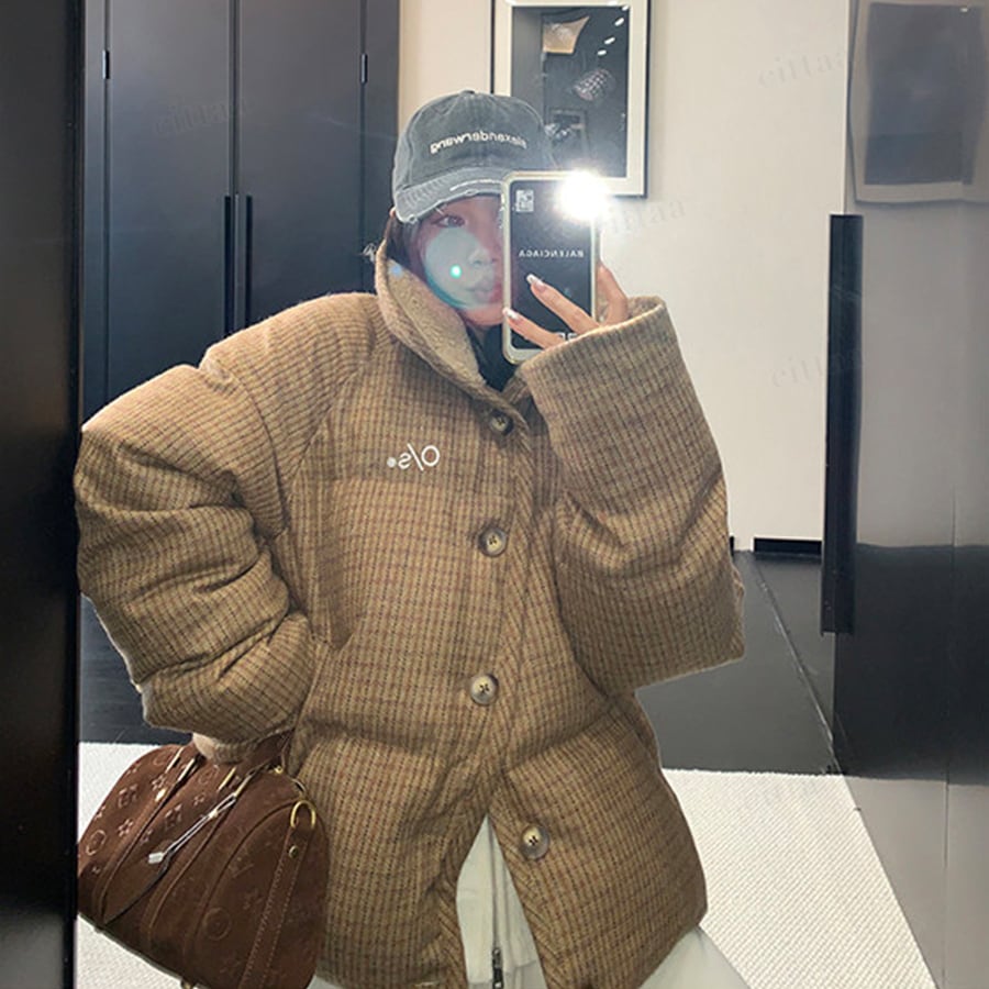 ★予約★D-828 2026新作♡OS襟ボアレトロチェック柄中綿ジャケットコート ブラウン