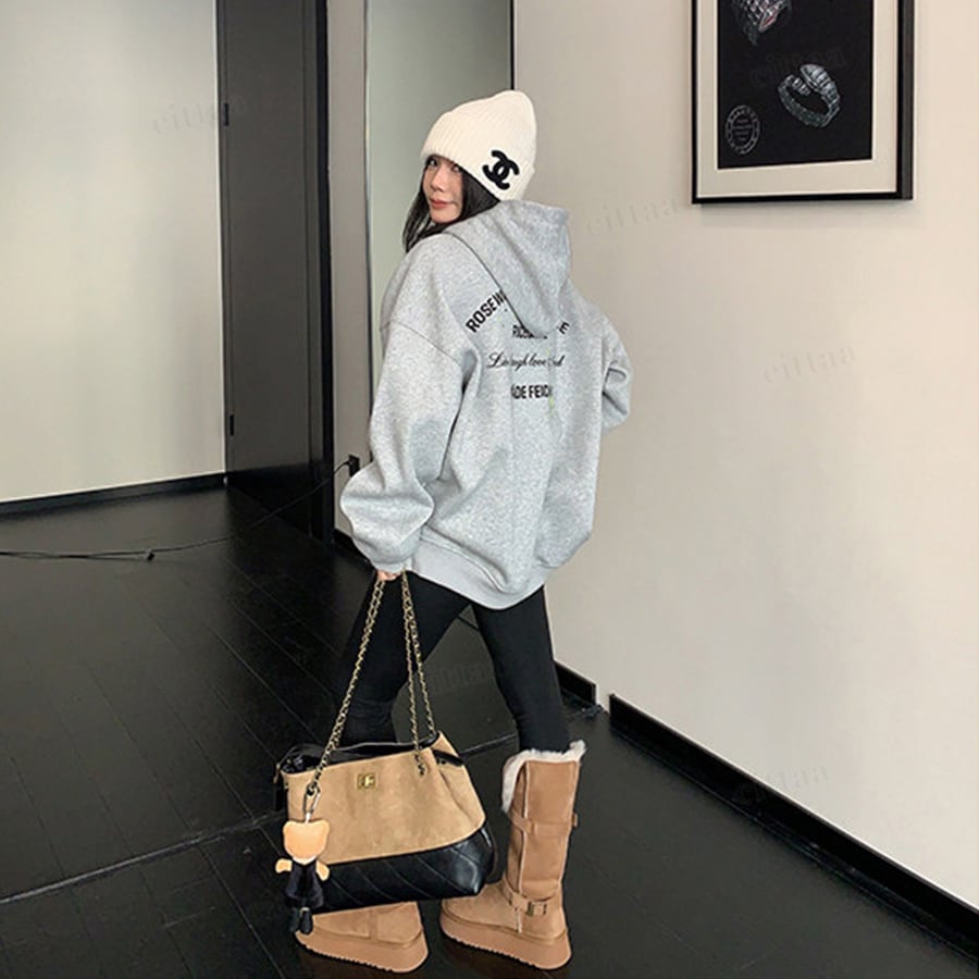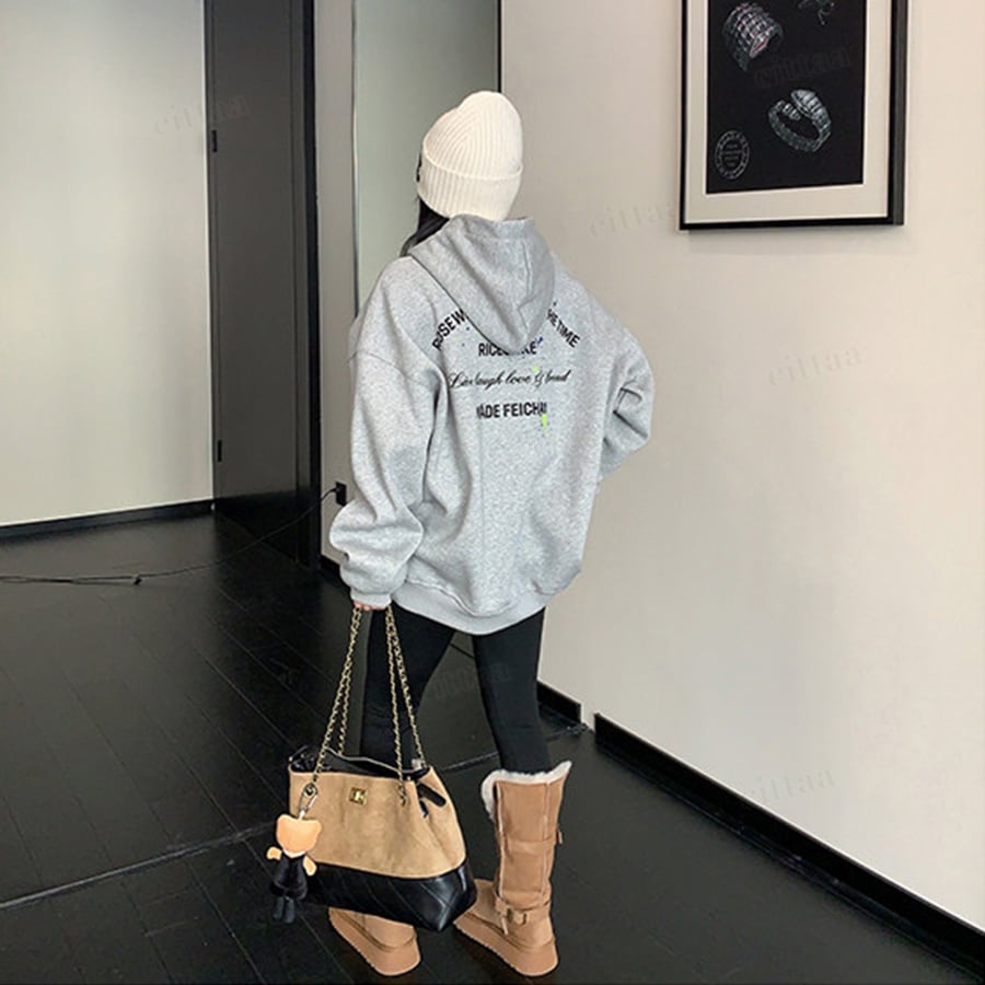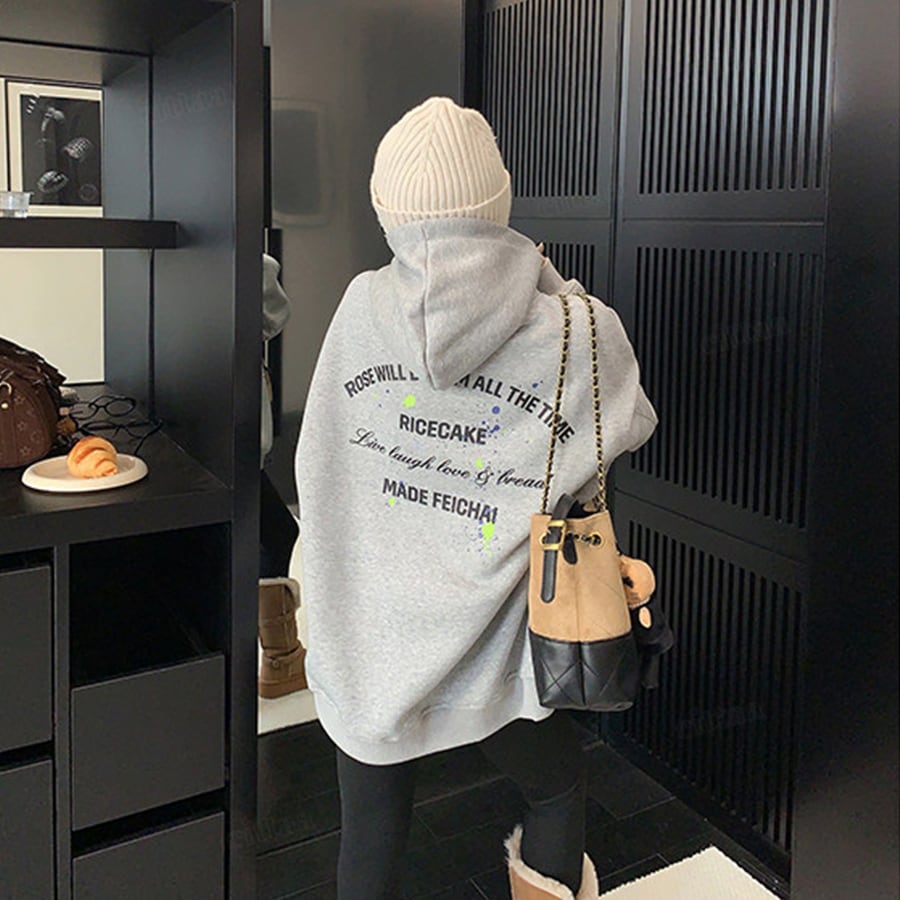 ★予約★D-833 2026新作♡RICECAKE刺繍ロゴストリートフーディー グレー