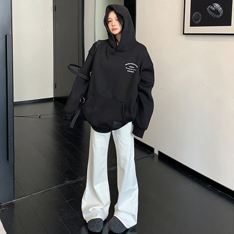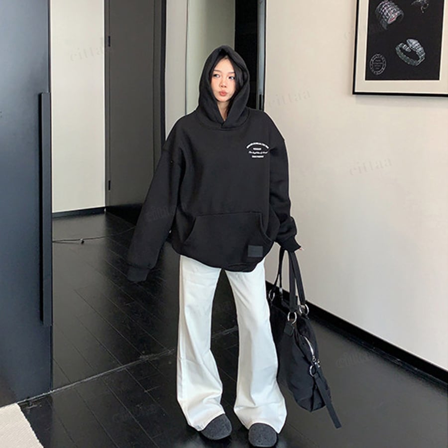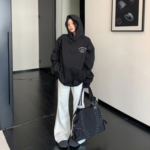 ストリートな着こなしが今っぽいロゴフーディー♡