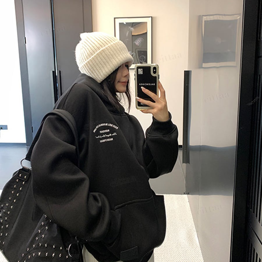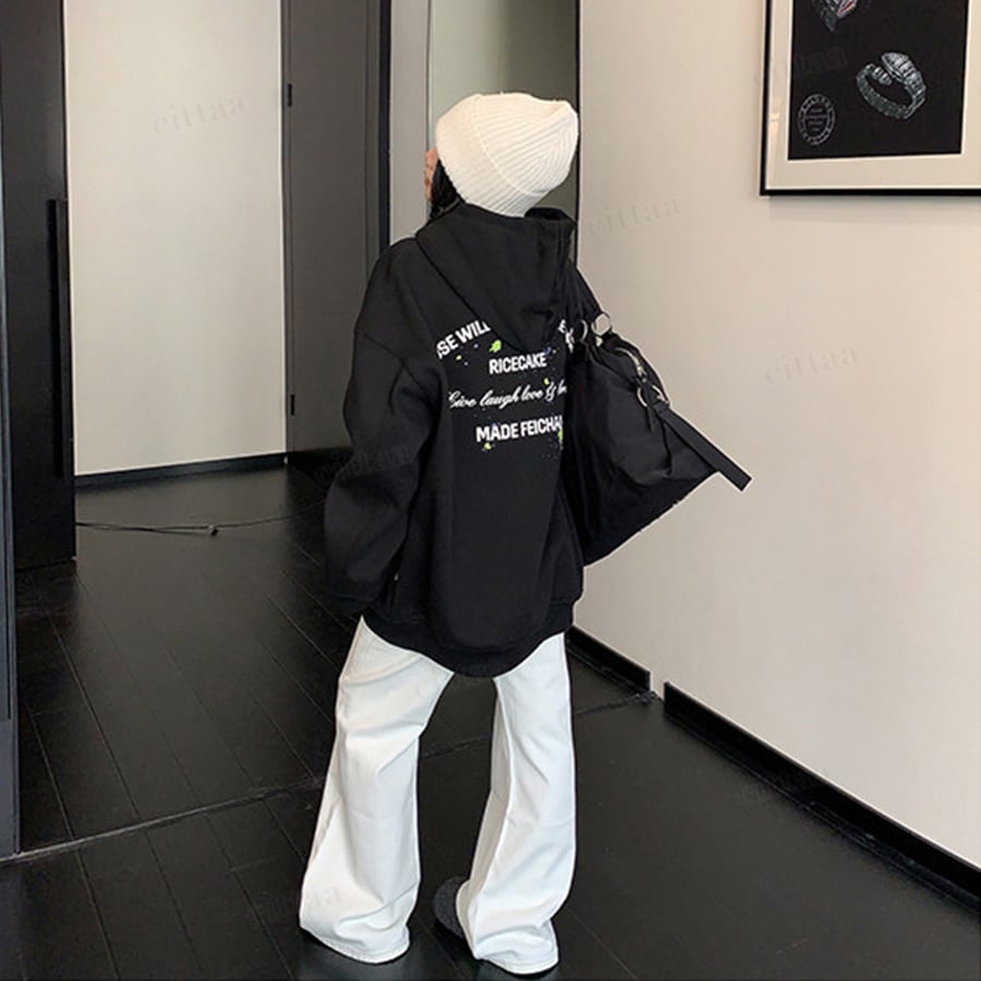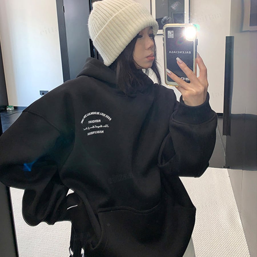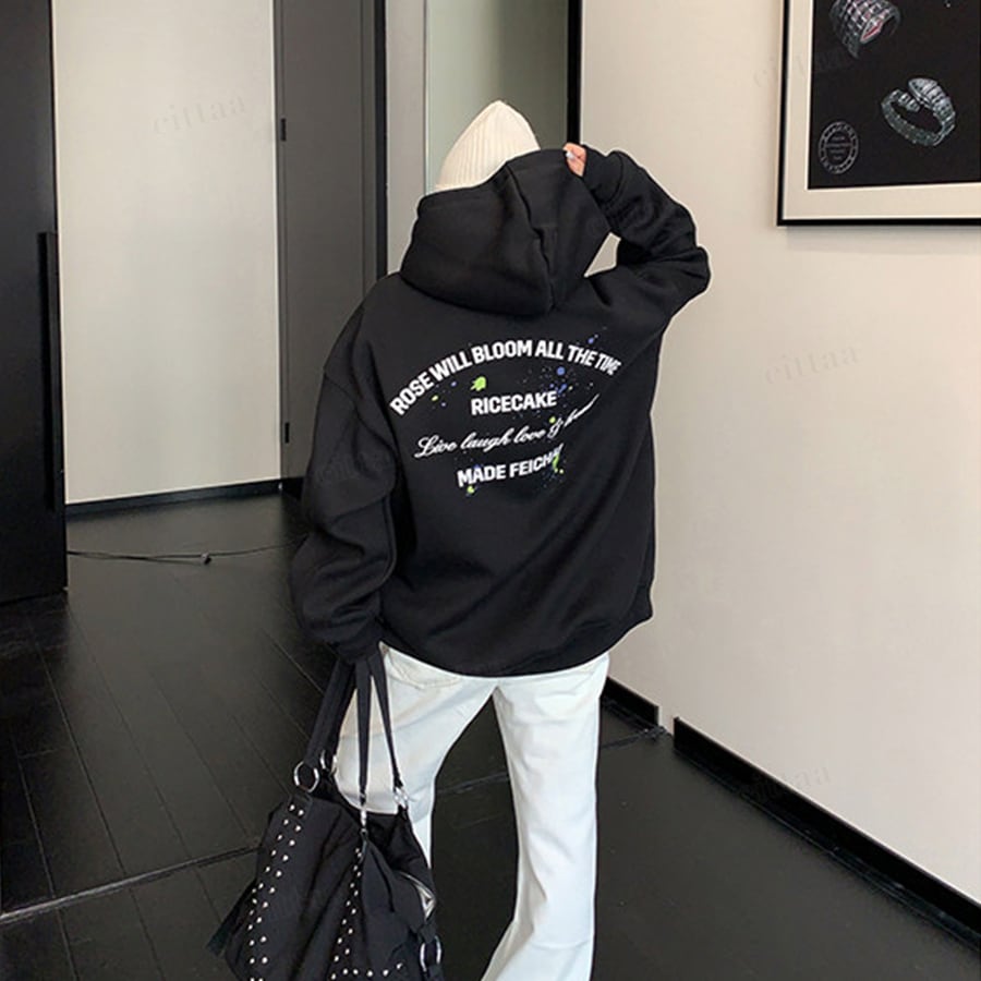 ★予約★D-833 2026新作♡RICECAKE刺繍ロゴストリートフーディー ブラック
