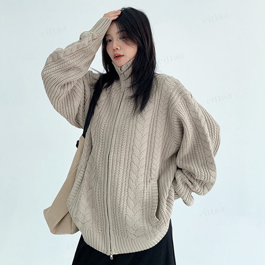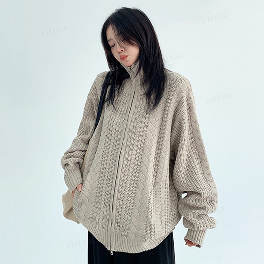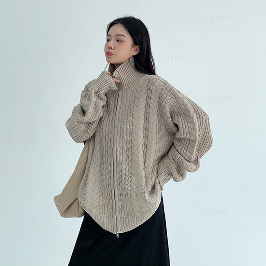 大人カジュアルなダブルジップハイネックニットカーディガン