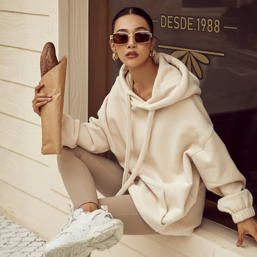 ★予約★D-835 2026新作♡オーバーサイズシンプルフーディー ライトベージュ