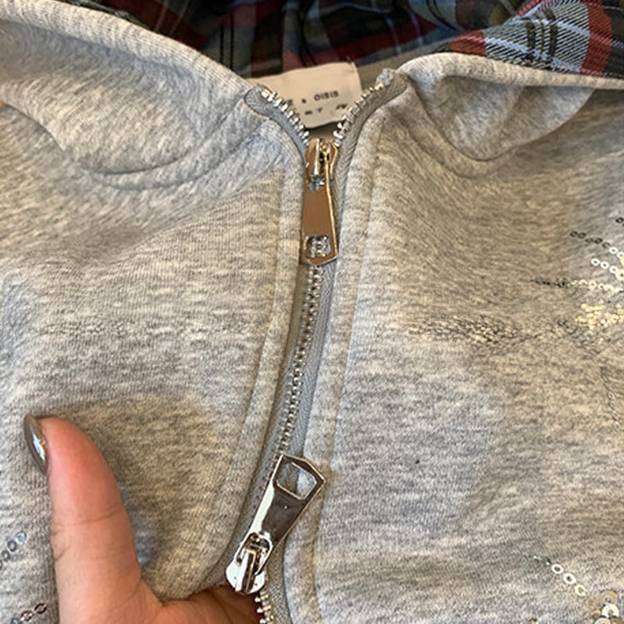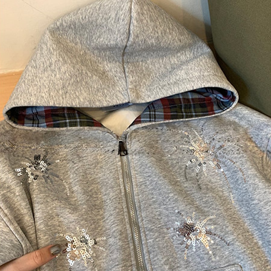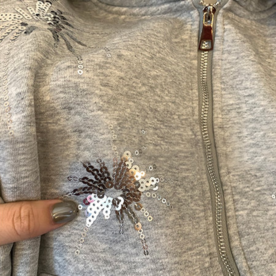 キラッと光るスパンコールがポイントのダブルジップパーカー