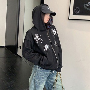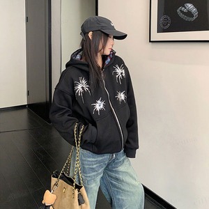 キラッと光るスパンコールがポイントのダブルジップパーカー
