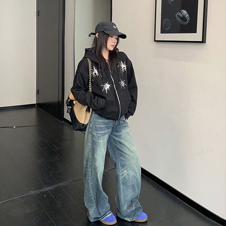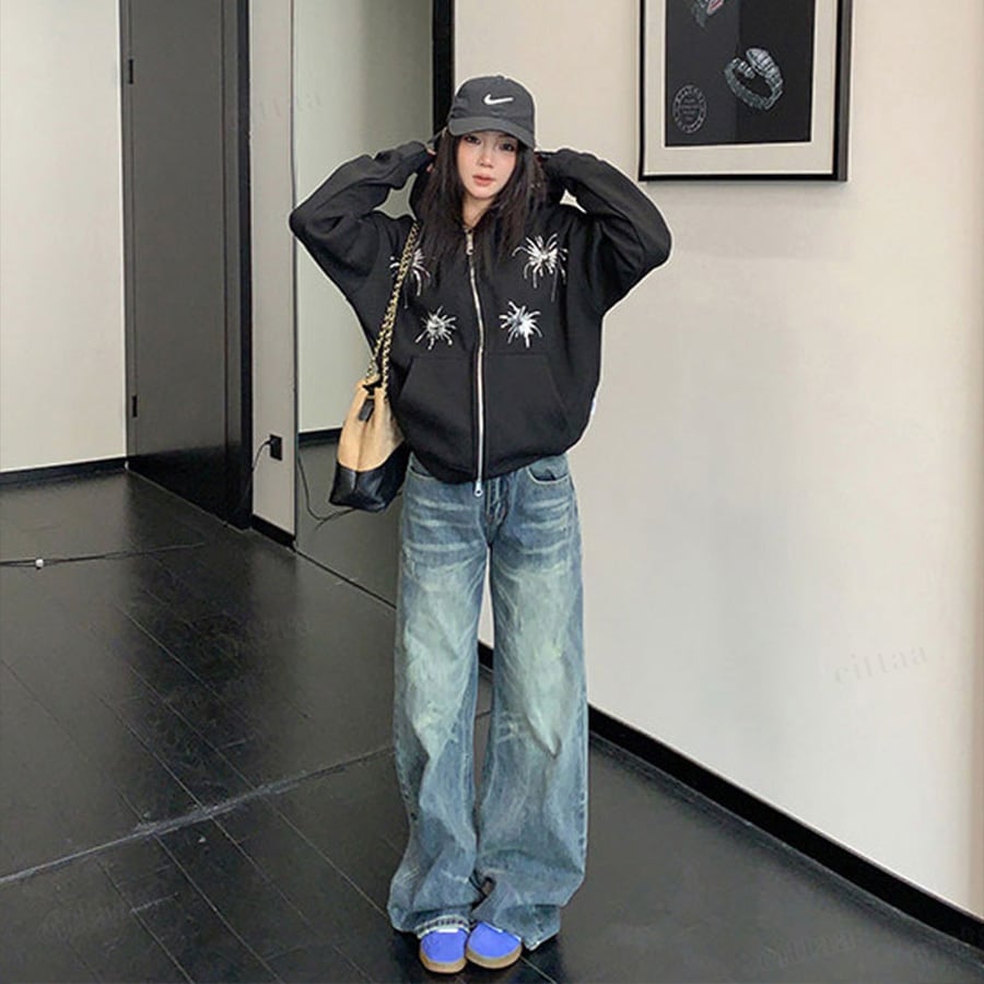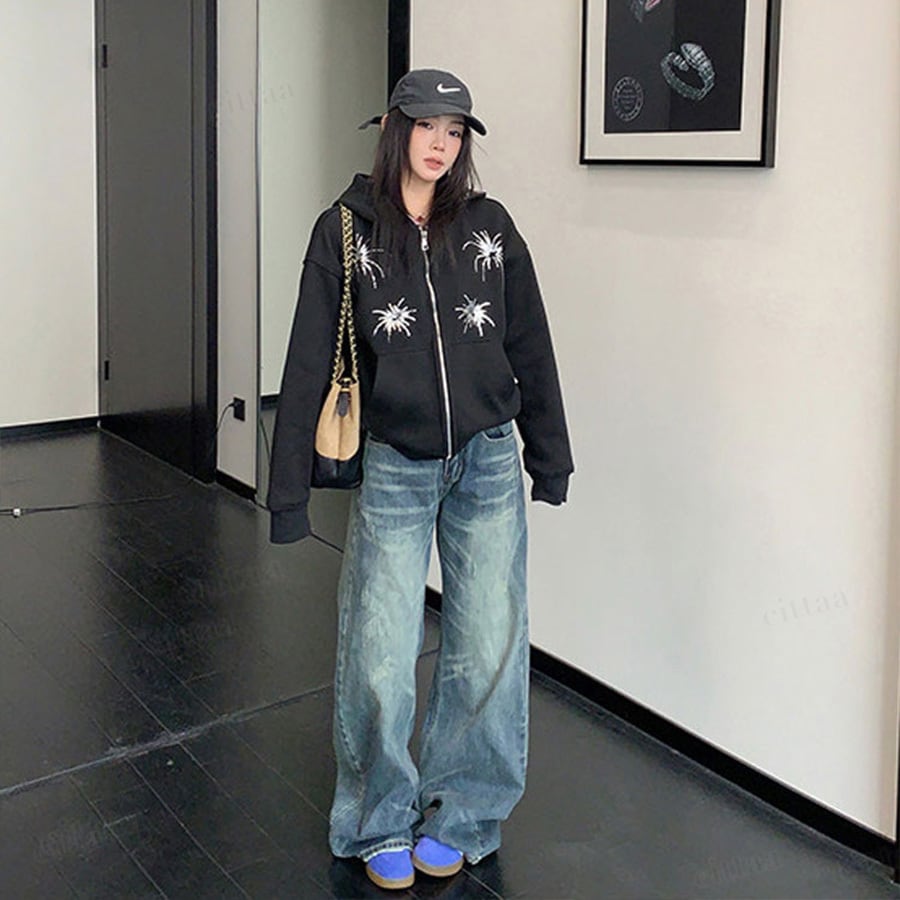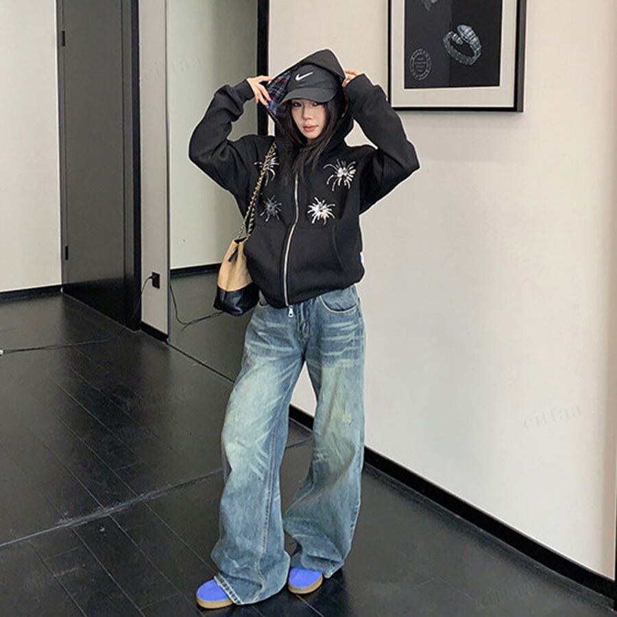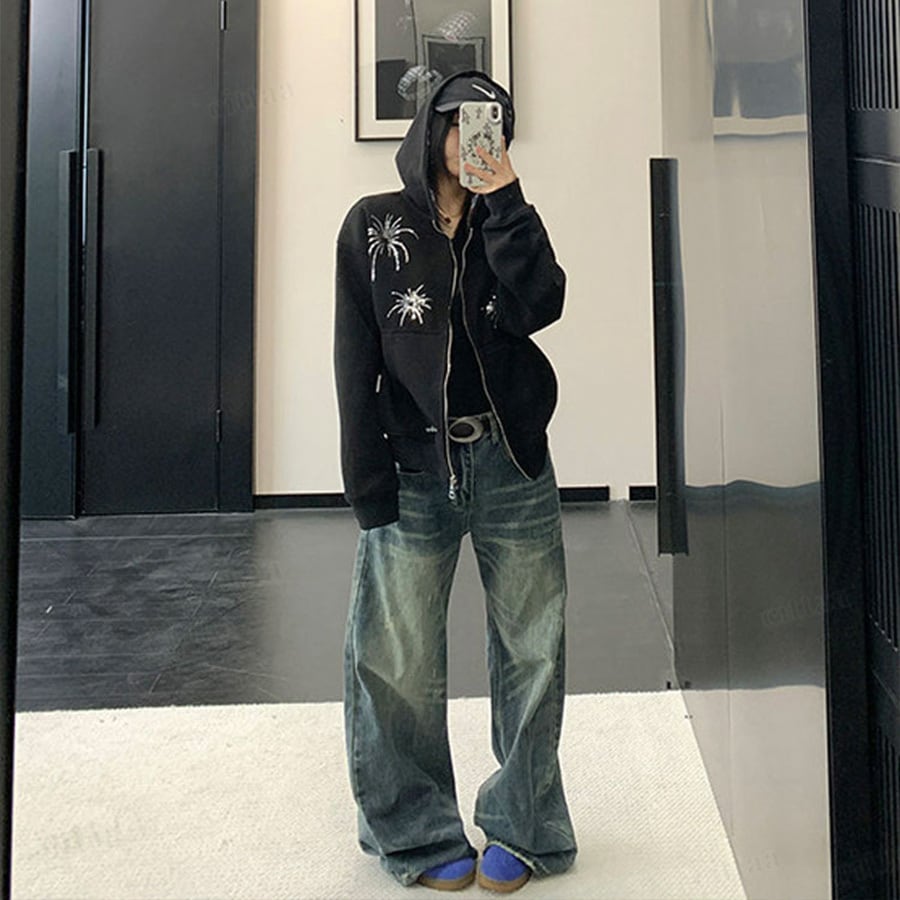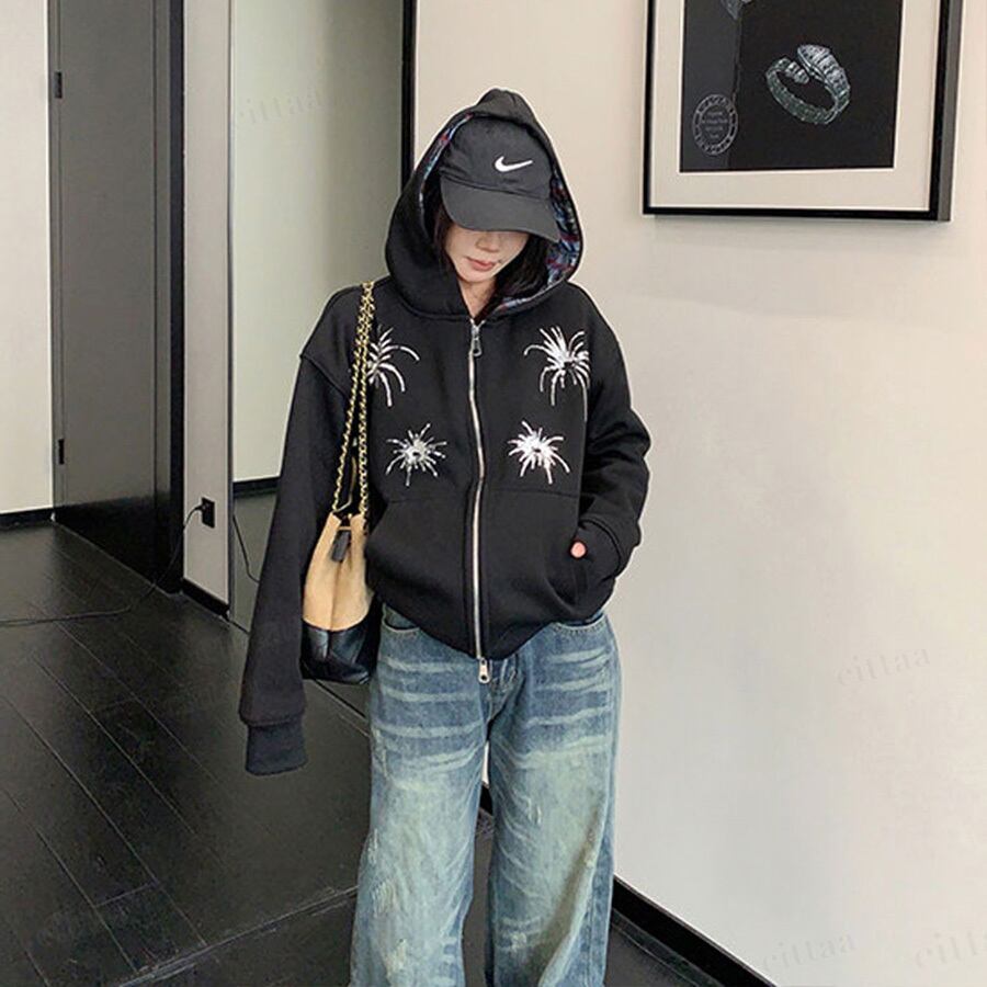 ★予約★D-909 2026新作♡Ricecakeスパンコールデザインダブルジップパーカー ブラック