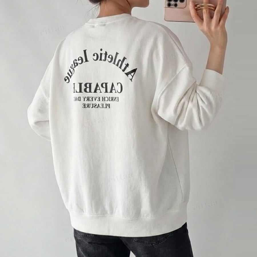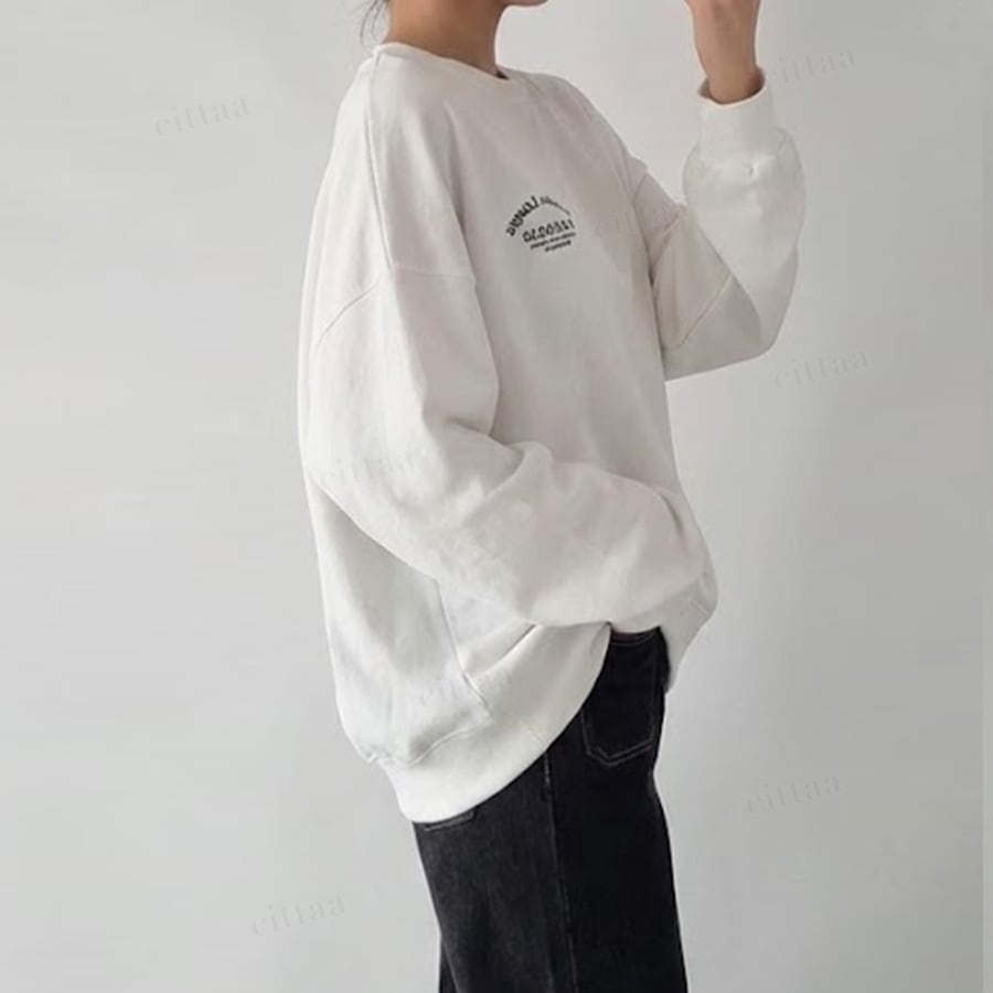 ゆるっとラフな着こなしが魅力的な英字プリントプルオーバー