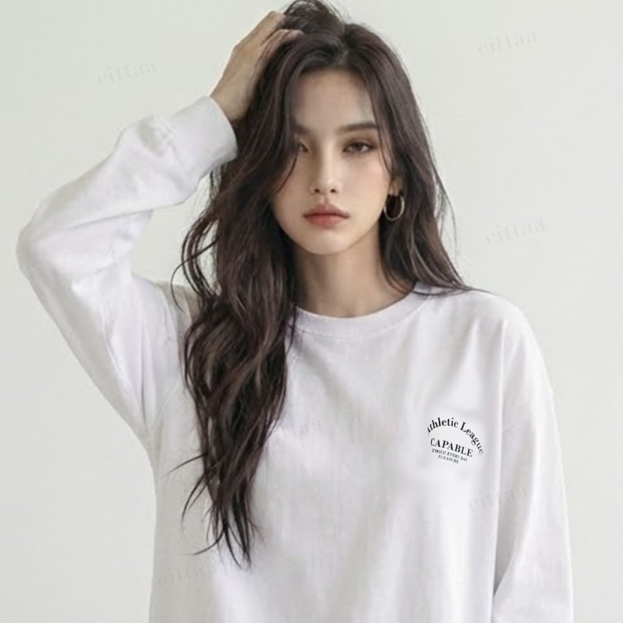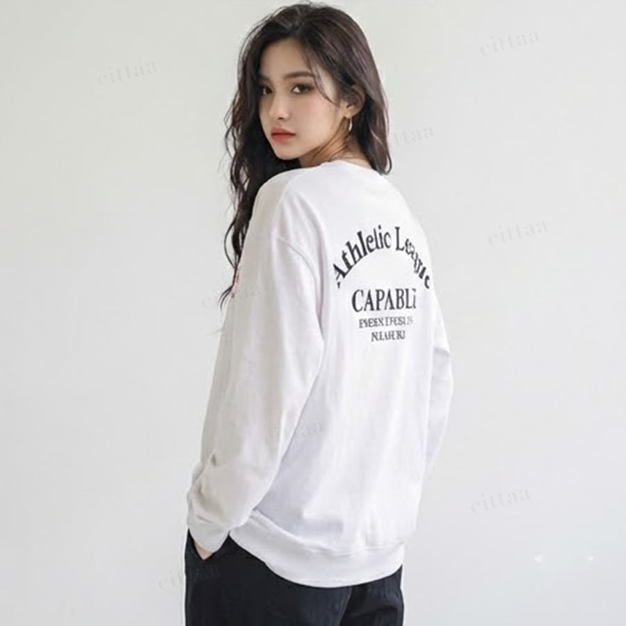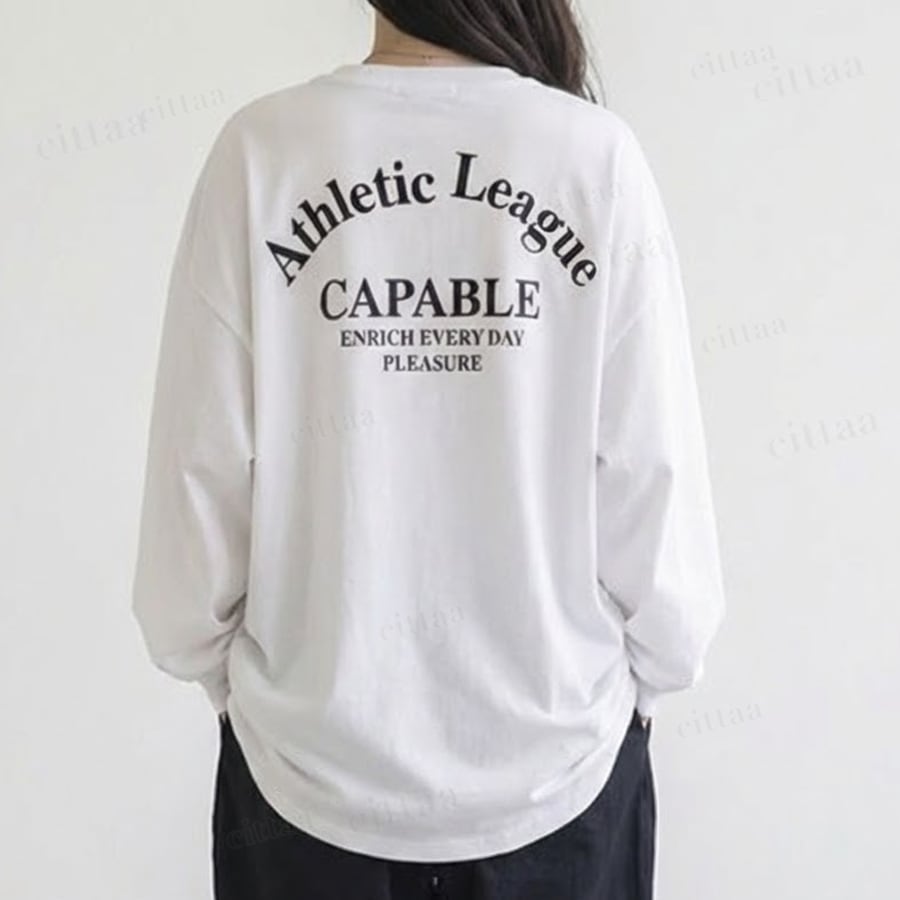 【即納】Y-4788 2026新作♡CAPABLE英字プリント長袖Tシャツ ホワイト 0120