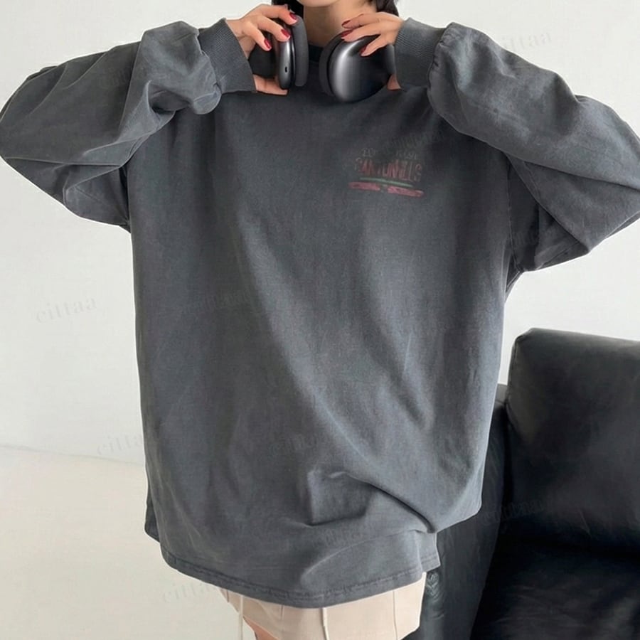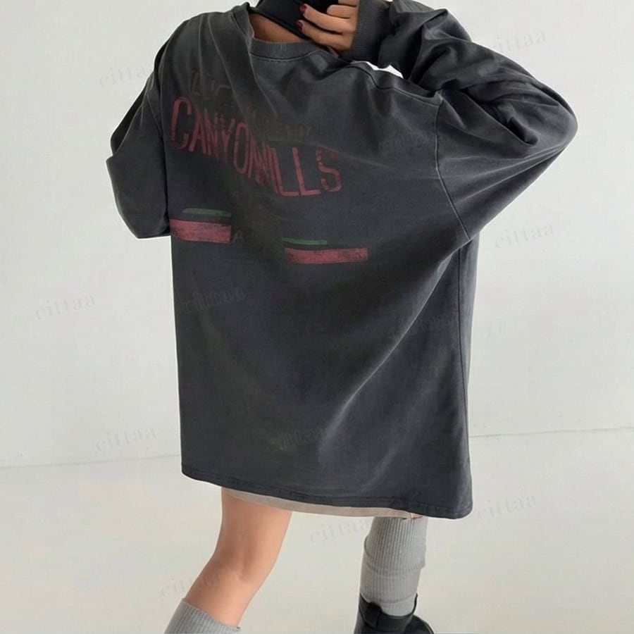 【即納】Y-4793 2026新作♡CANYONHILLSヴィンテージプリント長袖Tシャツ チャコール 0120