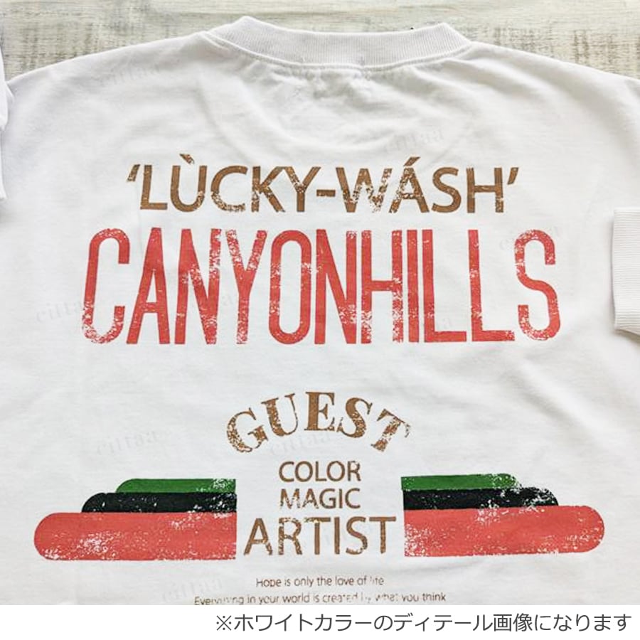 古着のような風合いを楽しめる、かすれプリントがポイント。フロント&バックにロゴを施し、どの角度から見てもお洒落に決まります。程よく効かせたカラープリントがコーデのアクセントになり、1枚で着映えするデザインです。