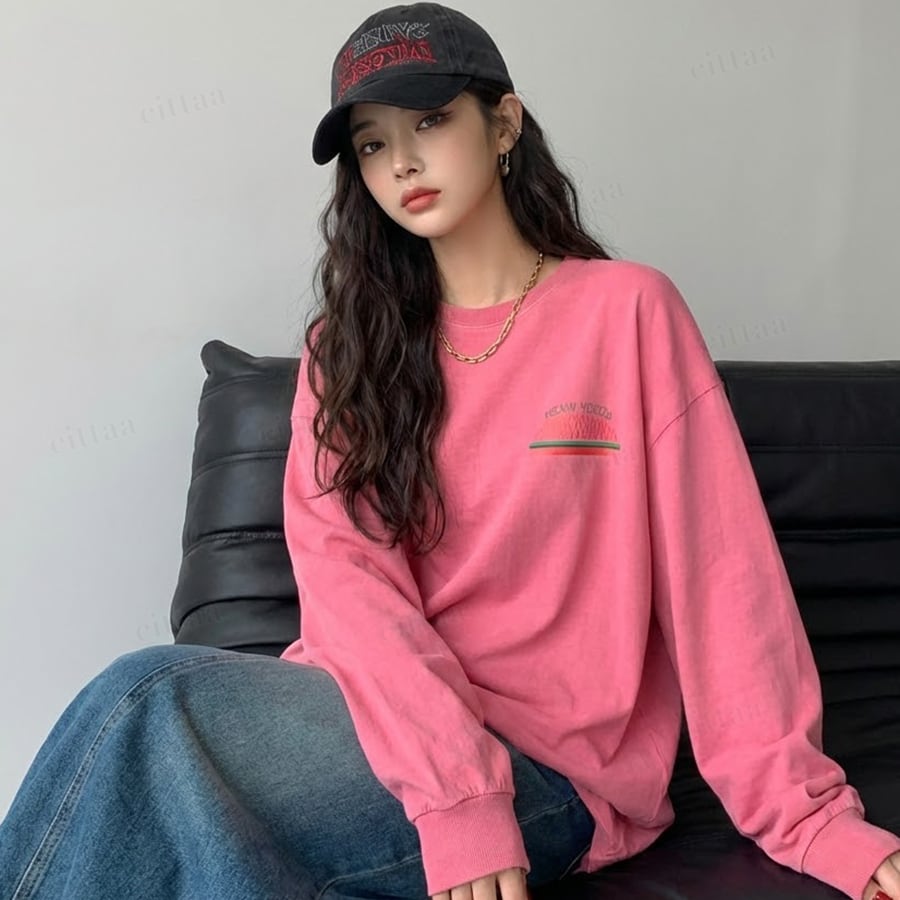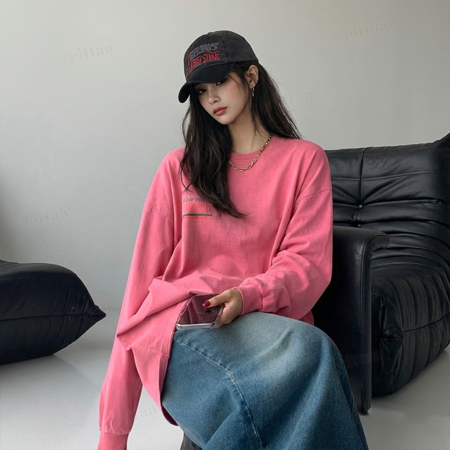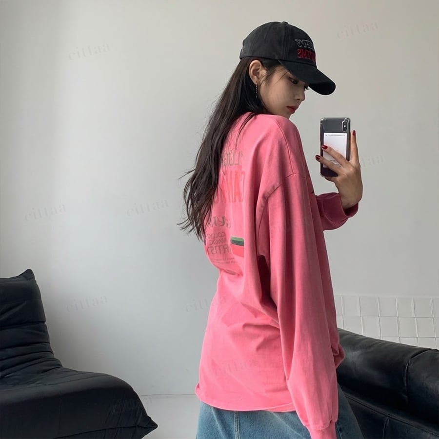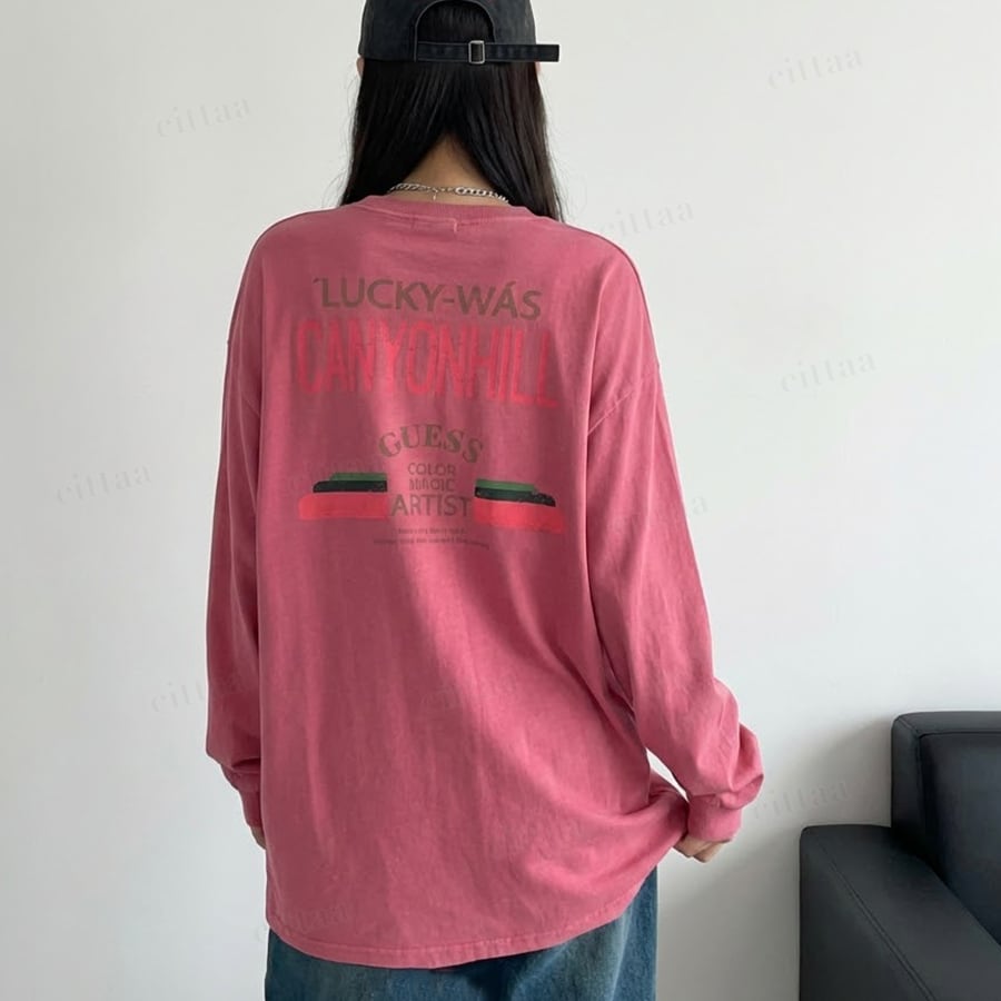 【即納】Y-4793 2026新作♡CANYONHILLSヴィンテージプリント長袖Tシャツ ピンク 0120