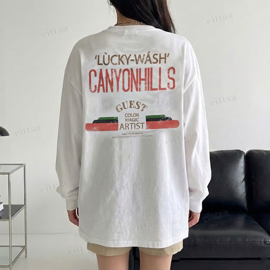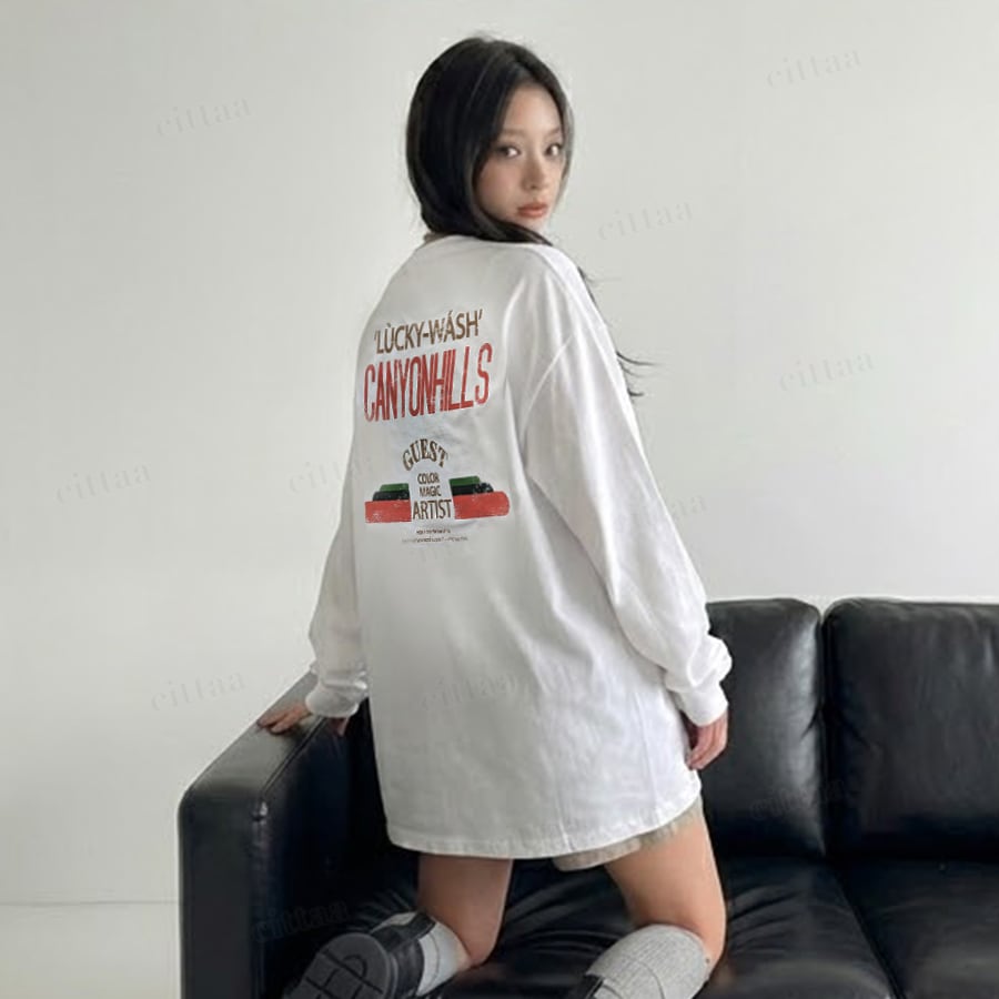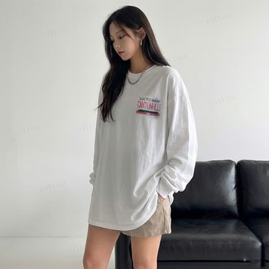 【即納】Y-4793 2026新作♡CANYONHILLSヴィンテージプリント長袖Tシャツ ホワイト 0120