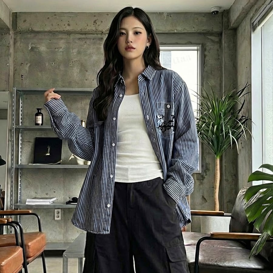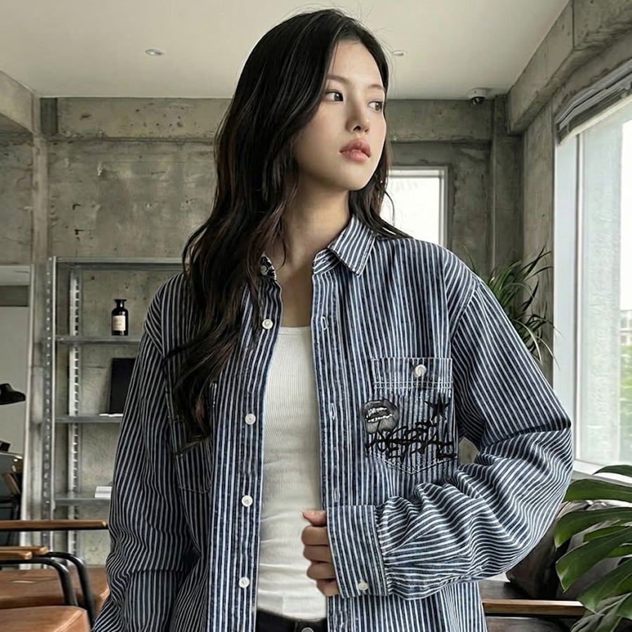 Y-4789 2026新作♡HOSPITALロゴストライプデニムシャツ ダークデニム 0120