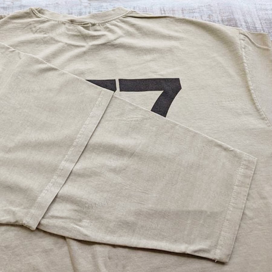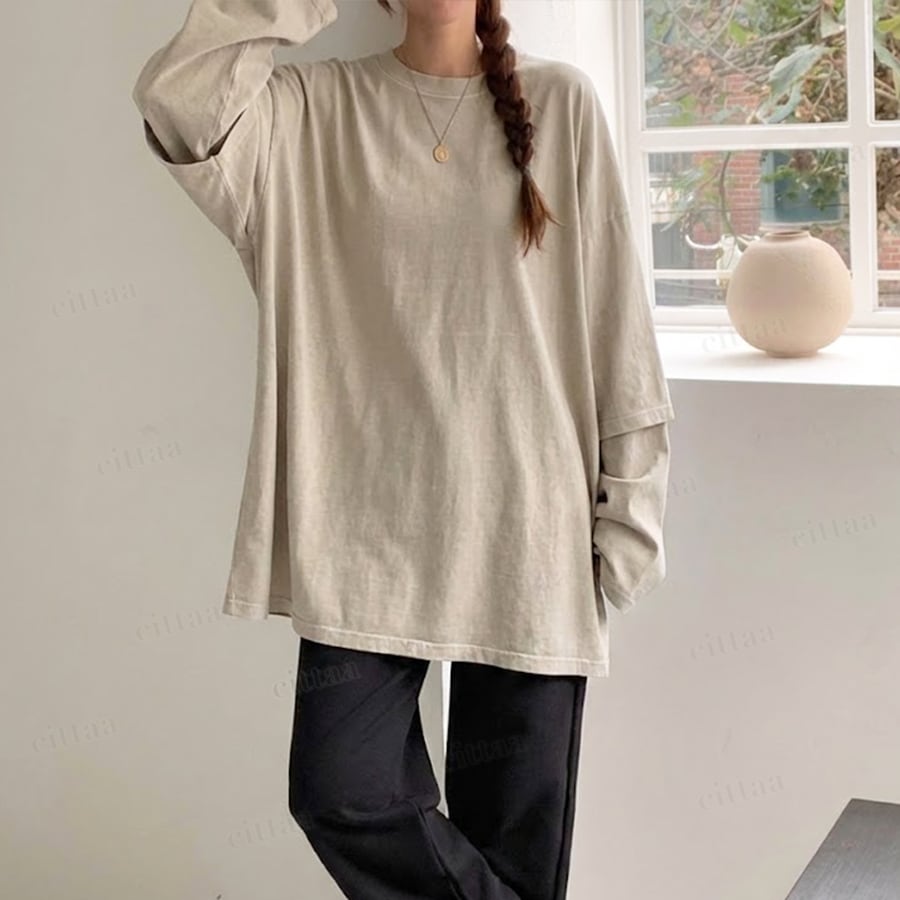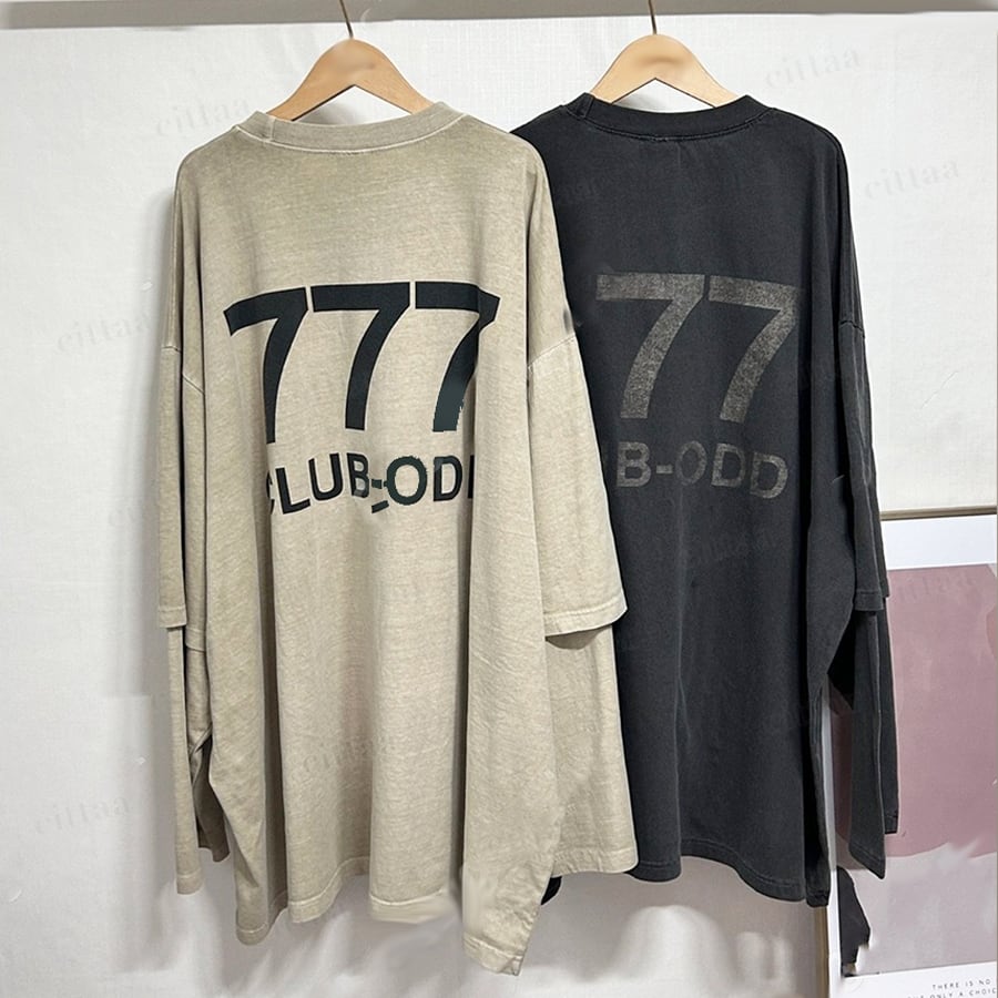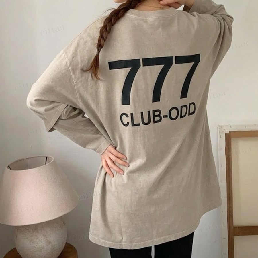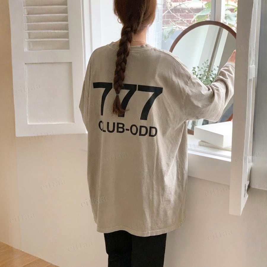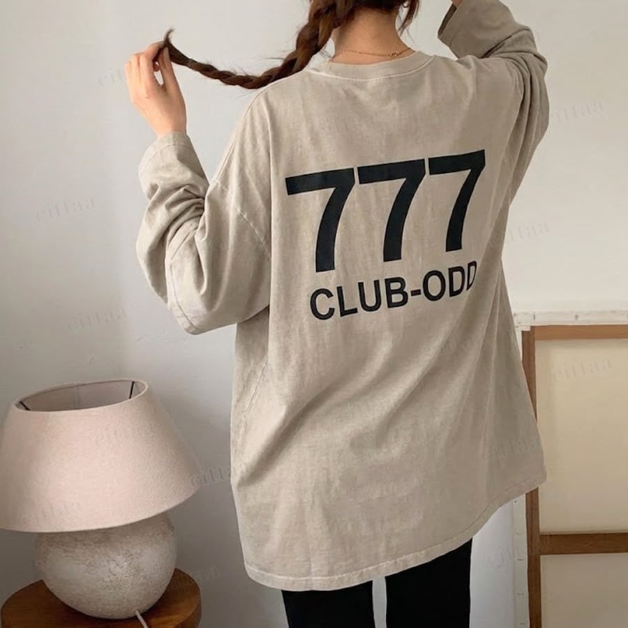 Y-4784 2026春新作♡777レイヤード風バックロゴ長袖Tシャツ グレーベージュ