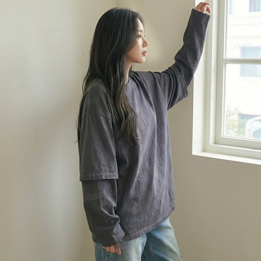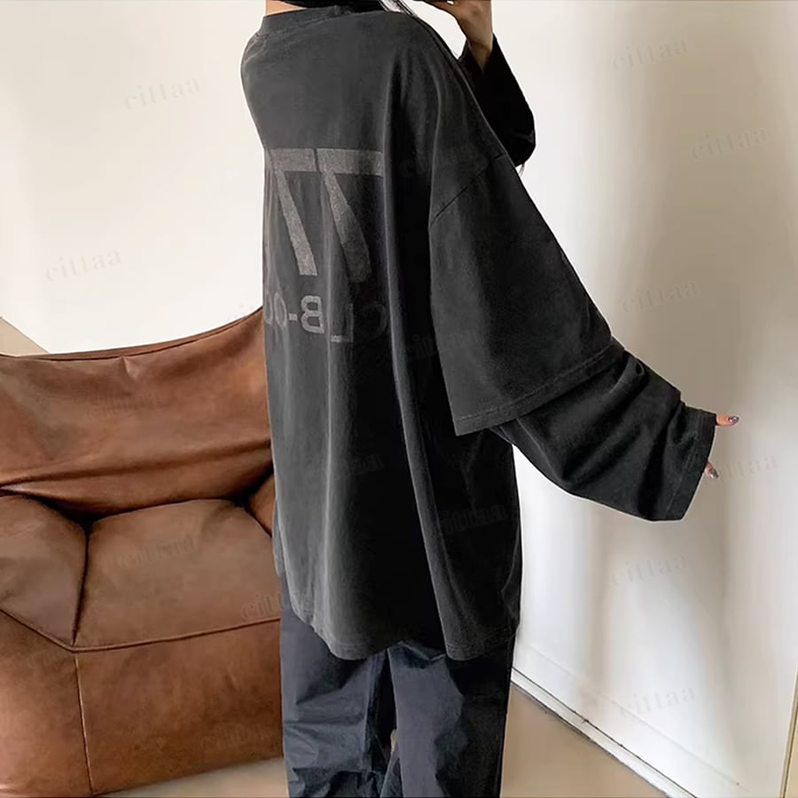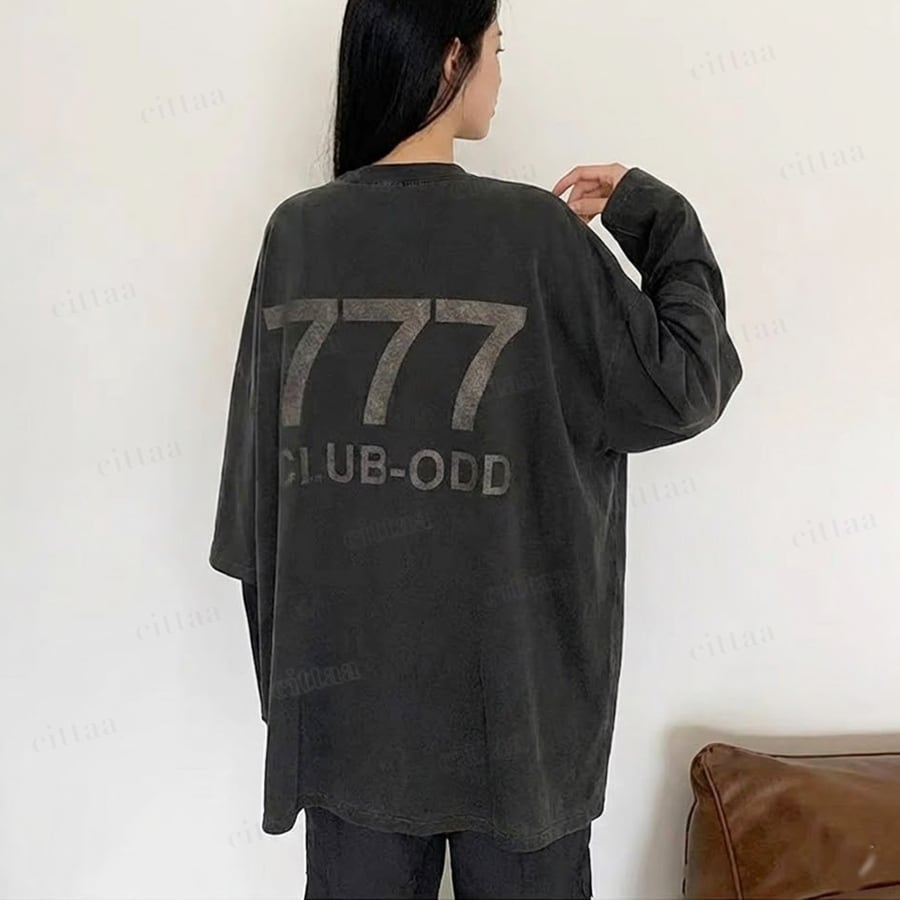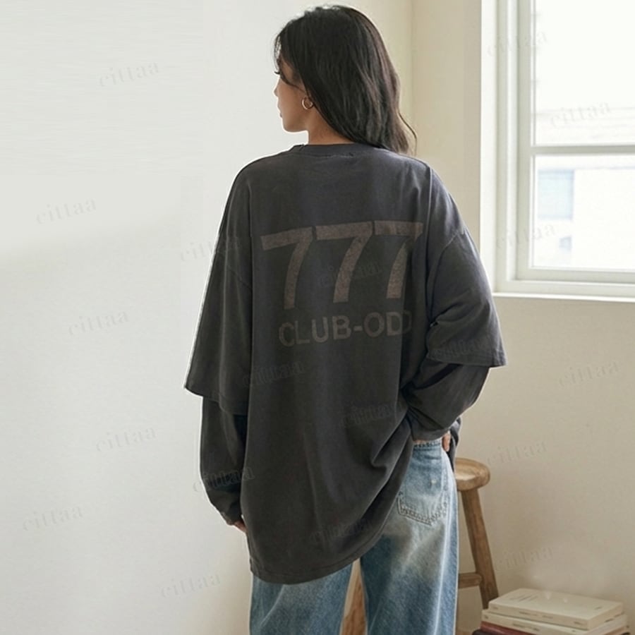 Y-4784 2026春新作♡777レイヤード風バックロゴ長袖Tシャツ チャコール 0123