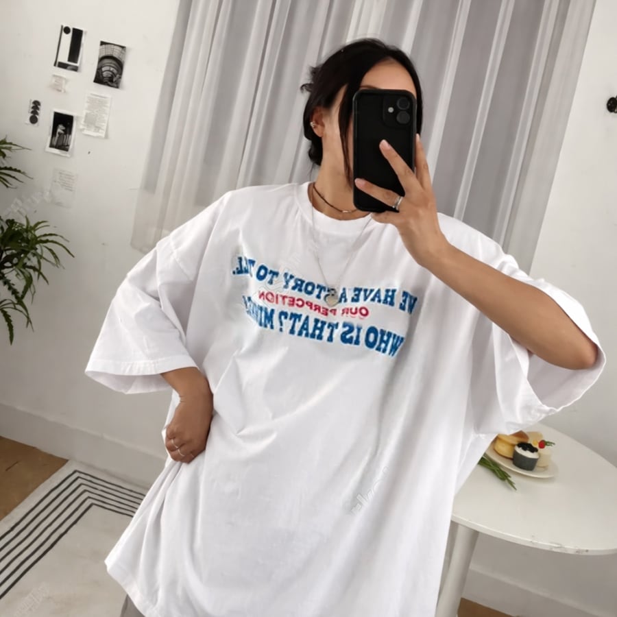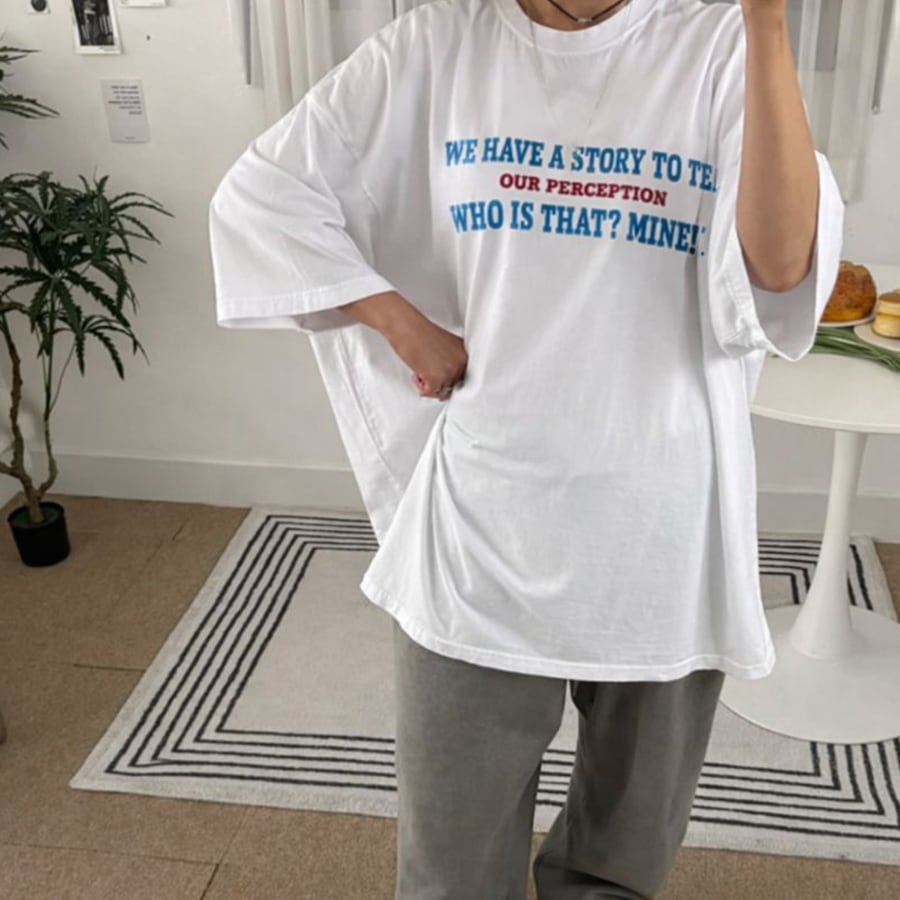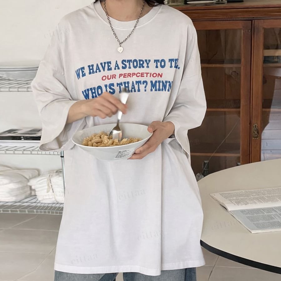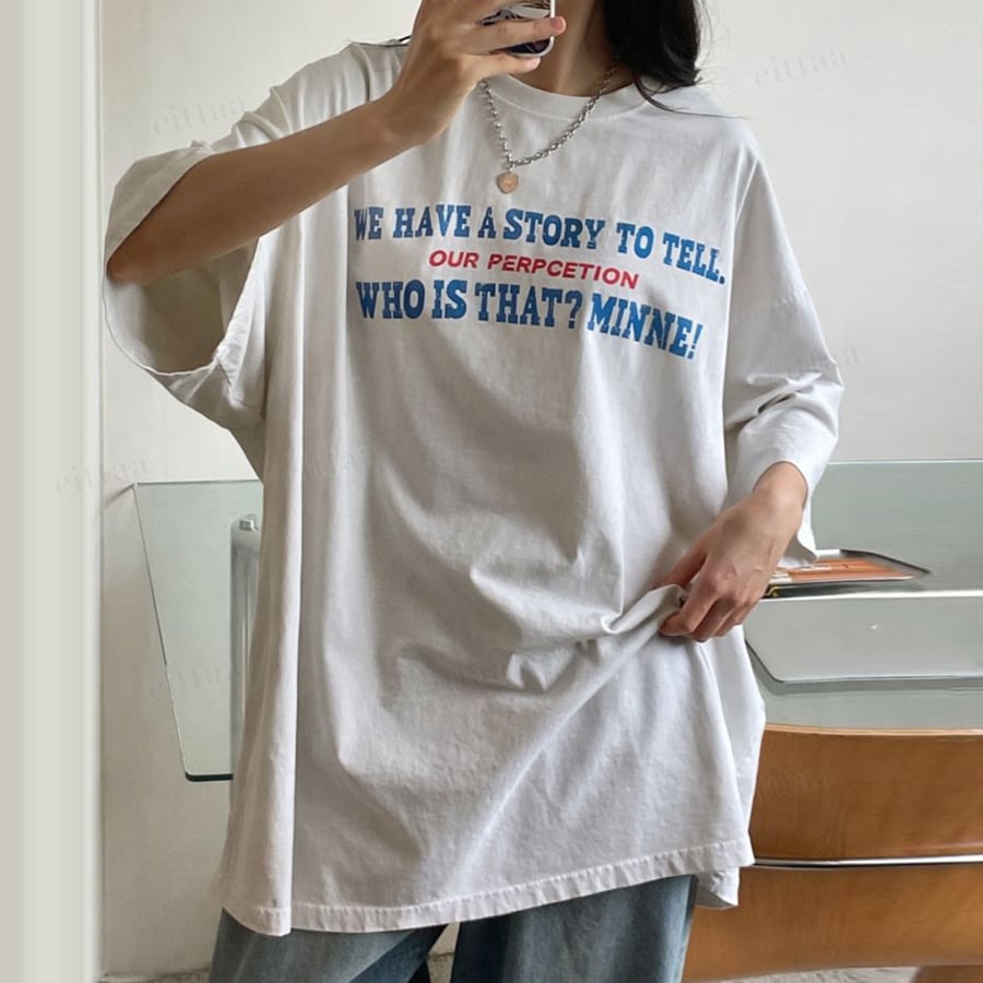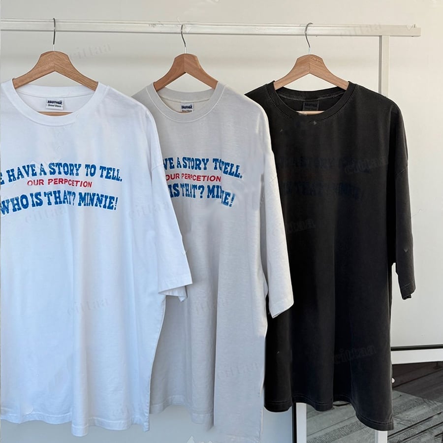 【即納】Y-4785 2026春新作♡STORY英字ロゴピグメント加工半袖Tシャツ アイボリー 0130
