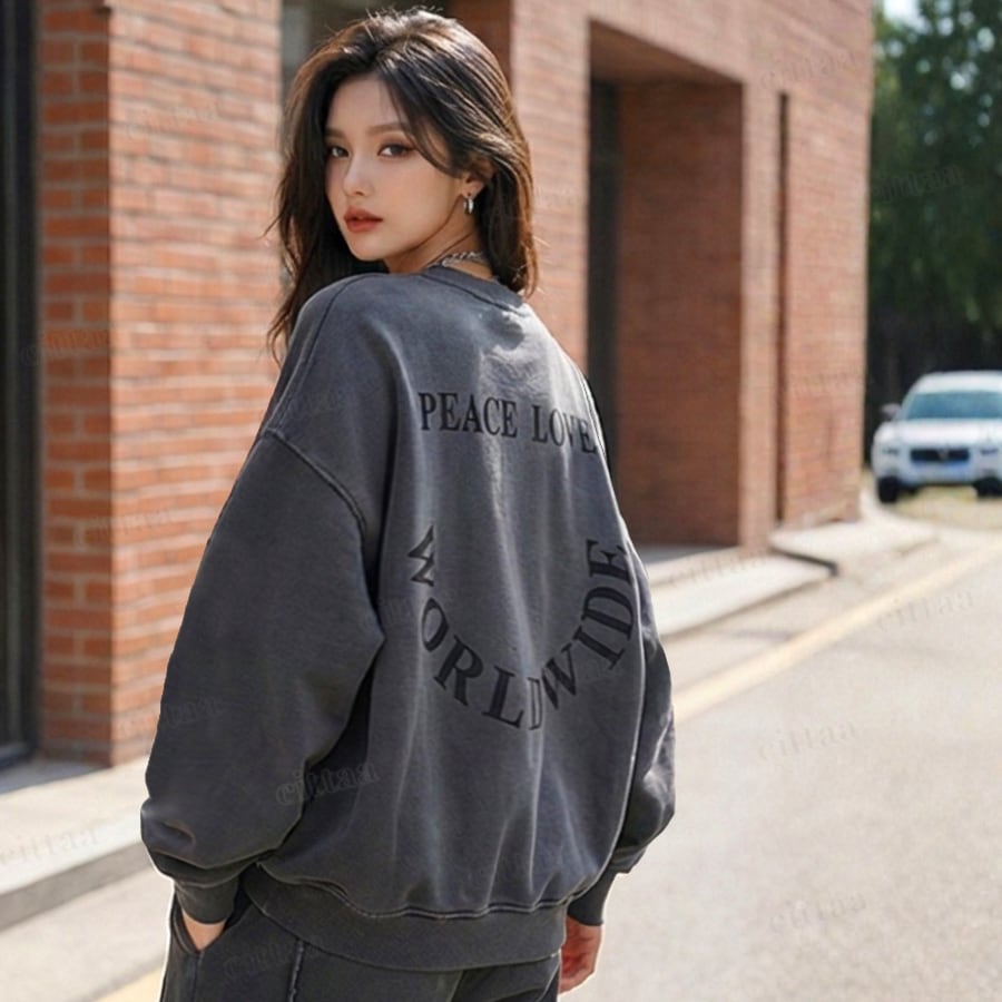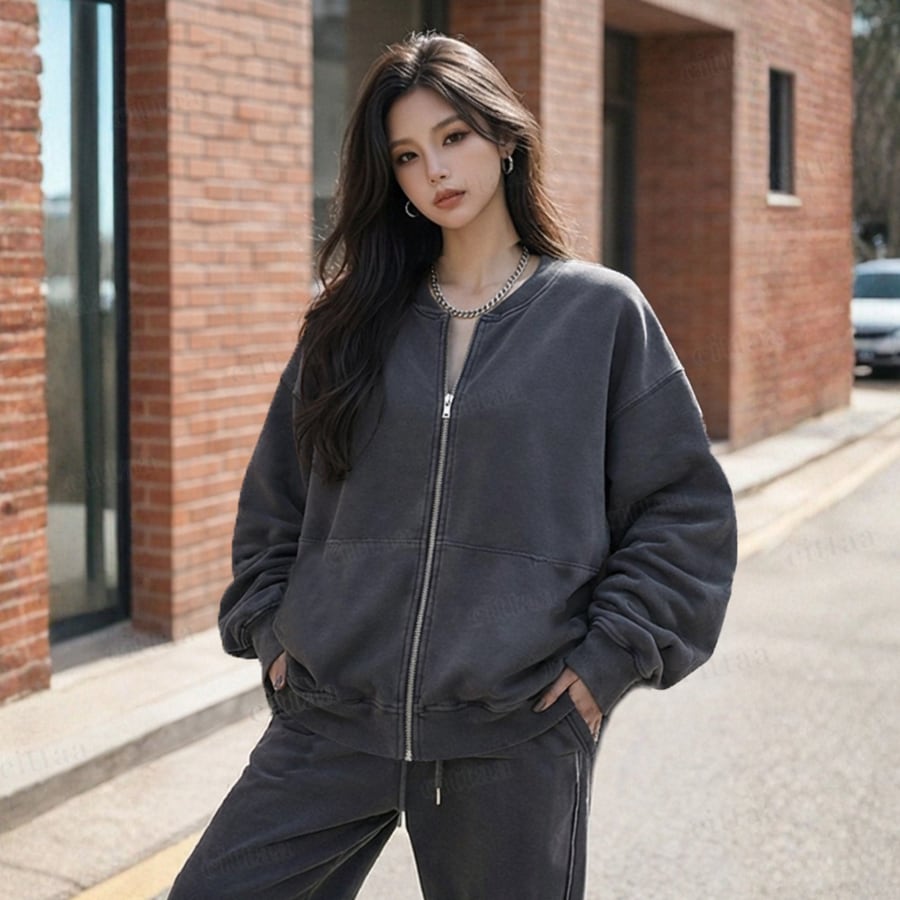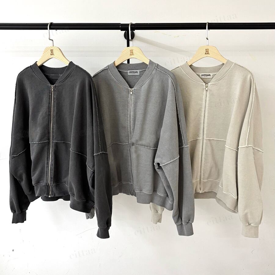 Y-4803 2026春新作♡【セットアップ可能】WORLDWIDEバックロゴジップアップスウェット チャコール 0206