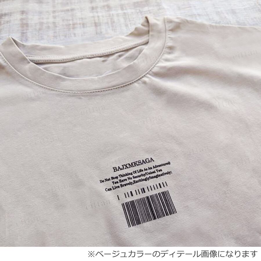 モードな着こなしが魅力的なバーコードプリント半袖Tシャツ