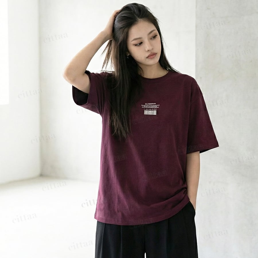 Y-4816 2026春新作♡BAJXMKSAGAバーコードプリント半袖Tシャツ ワイン 0206