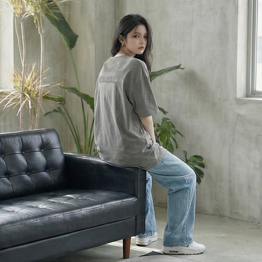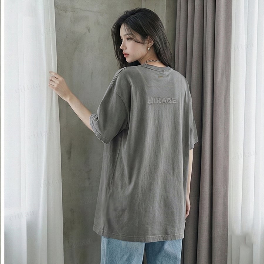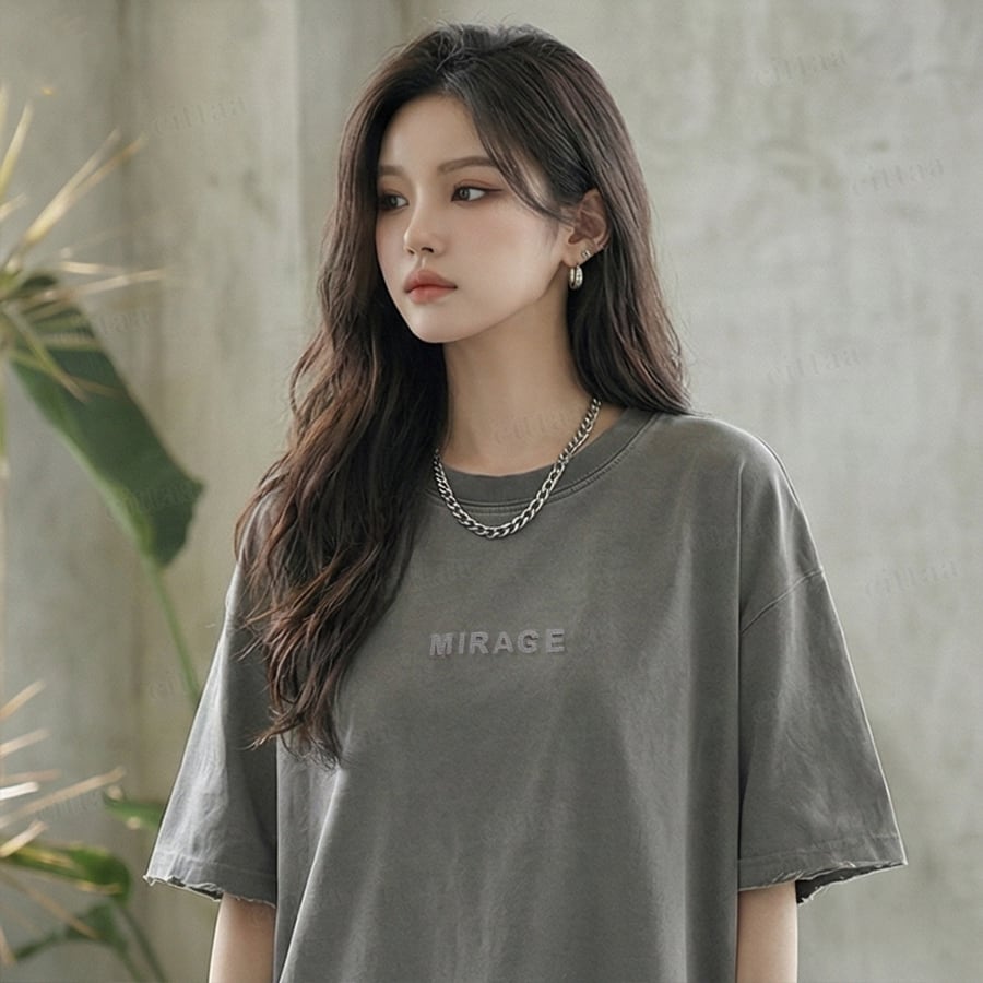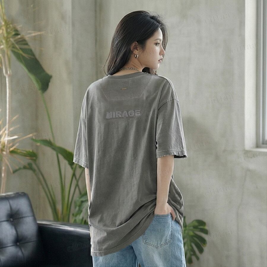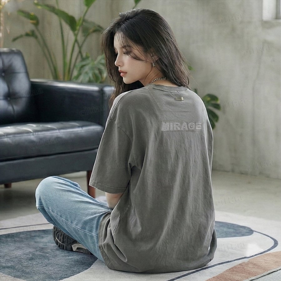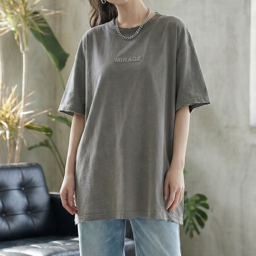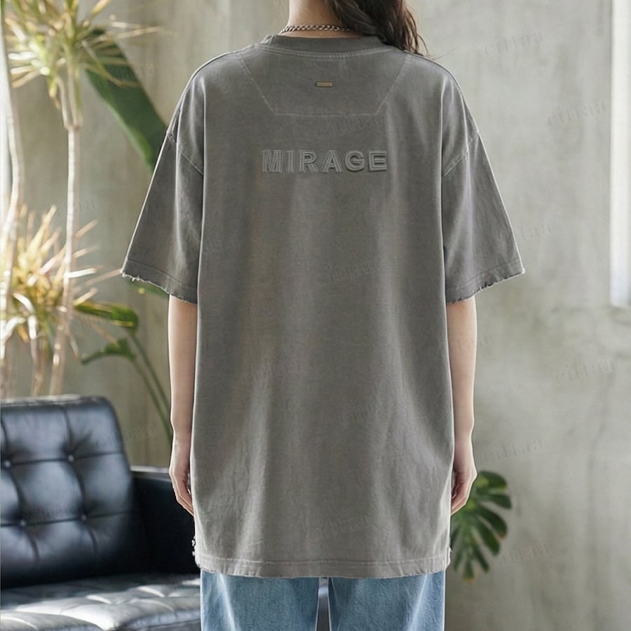 Y-4821 2026春新作♡MIRAGE刺繍ロゴダメージ加工半袖Tシャツ グレー 0213