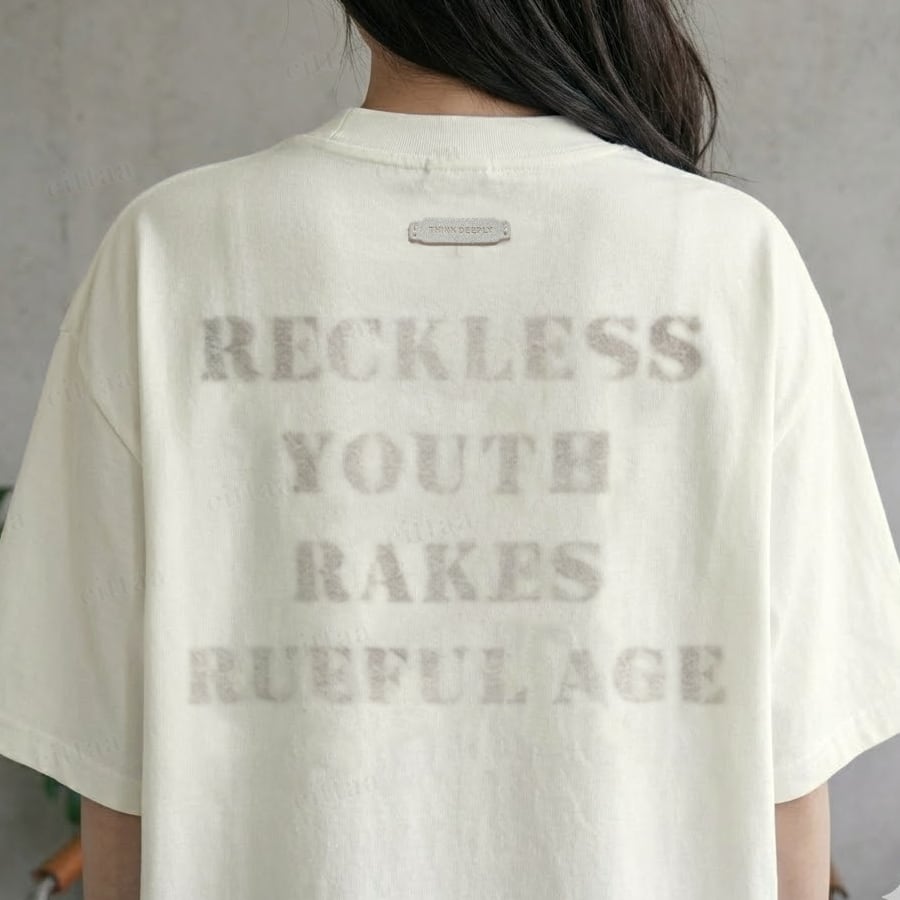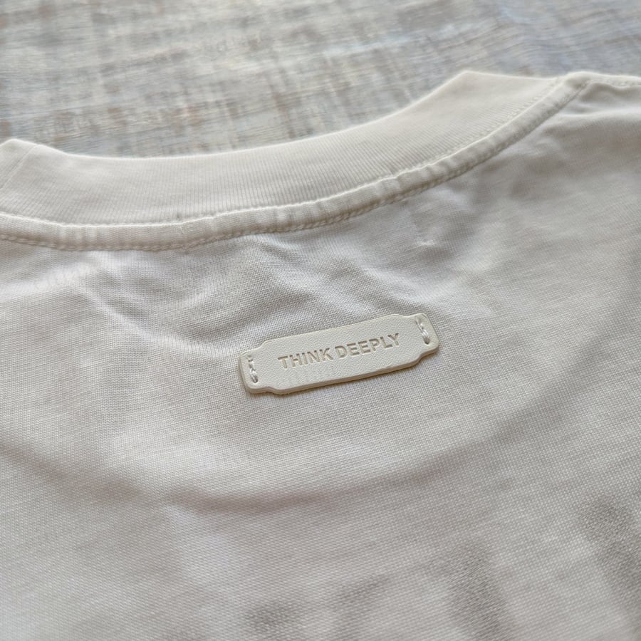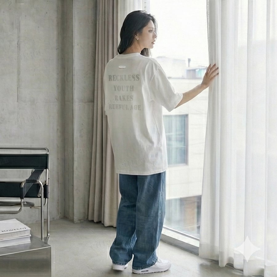 フロントとバックに施されたヴィンテージライクなかすれプリントがポイント。派手すぎないのにしっかり存在感があり、どの角度からも抜かりなく決まる一枚です。背中のレザータグがさりげない高見えアクセントに。厚手のしっかりとしたコットン生地で、大人カジュアルを格上げします。