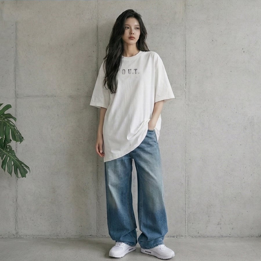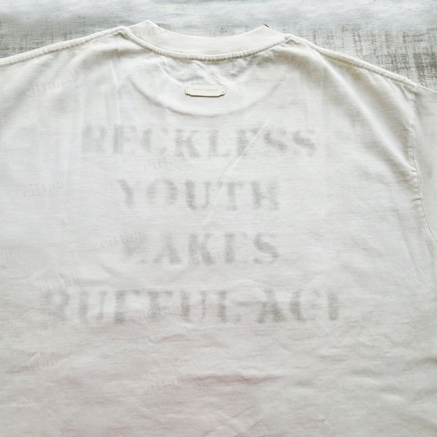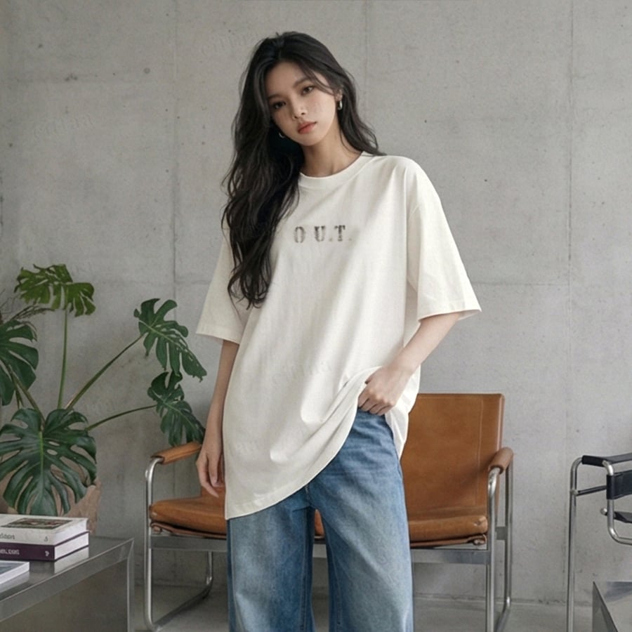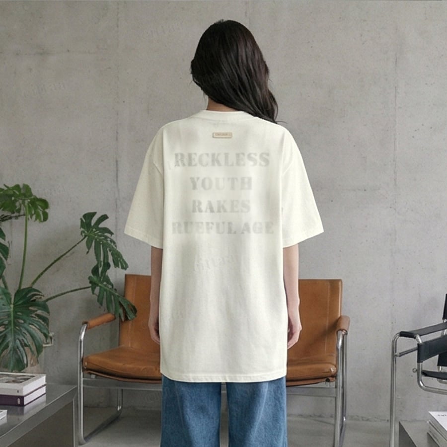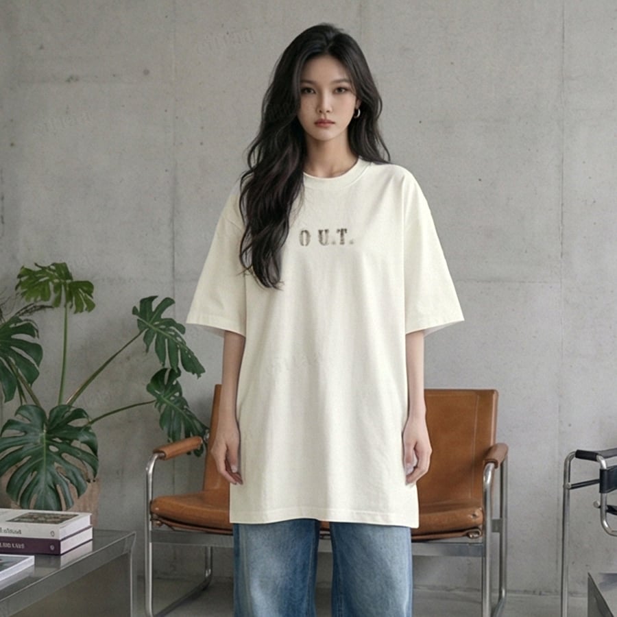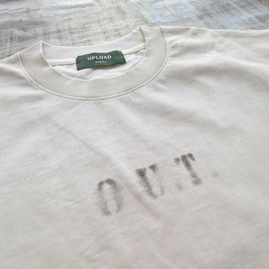 Y-4822 2026春新作♡OUTかすれロゴ半袖Tシャツ アイボリー 0213