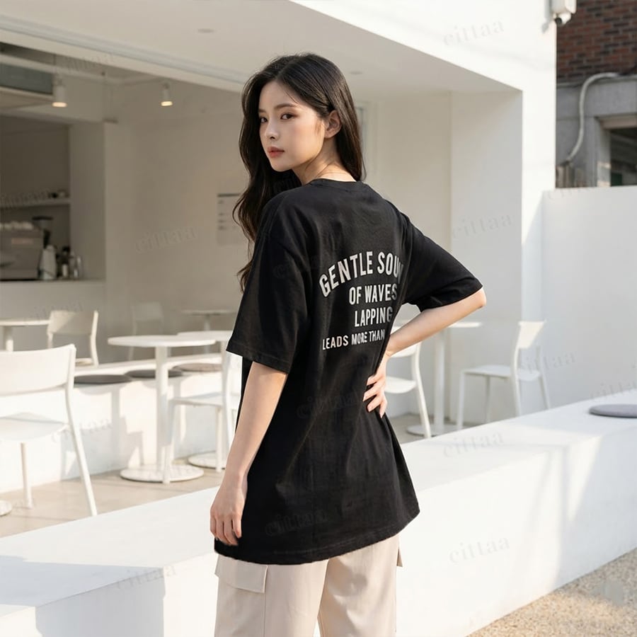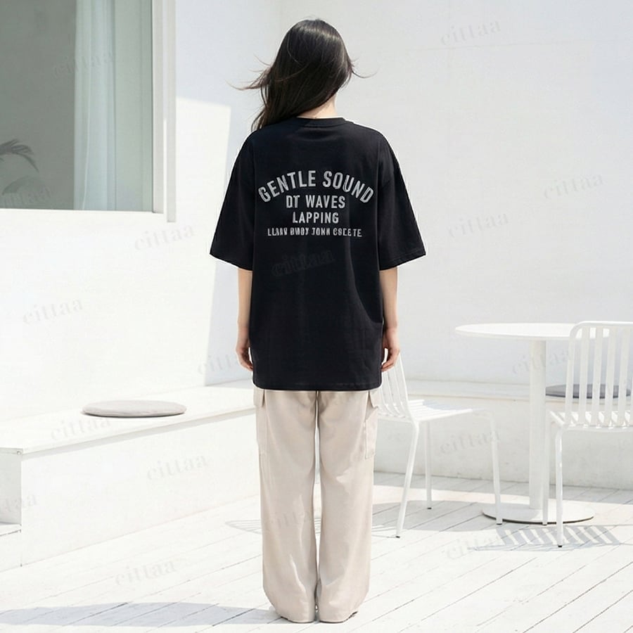 Y-4819 2026春新作♡GENTLE SOUNDバックロゴ半袖Tシャツ ブラック 0213