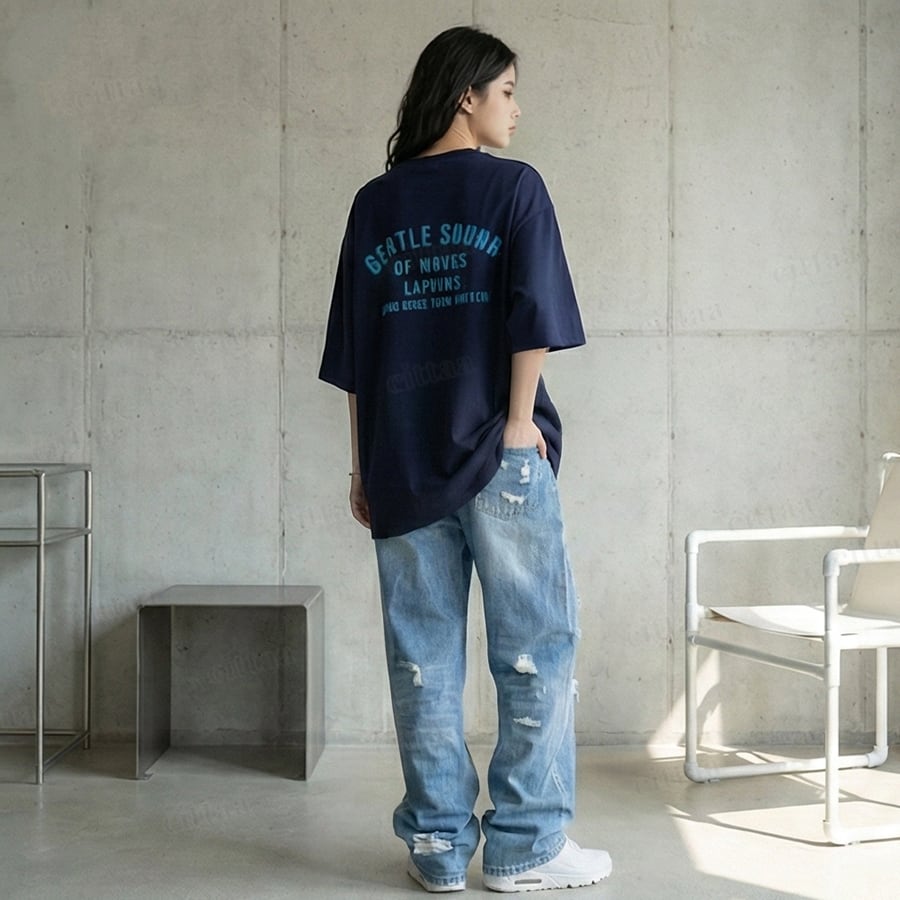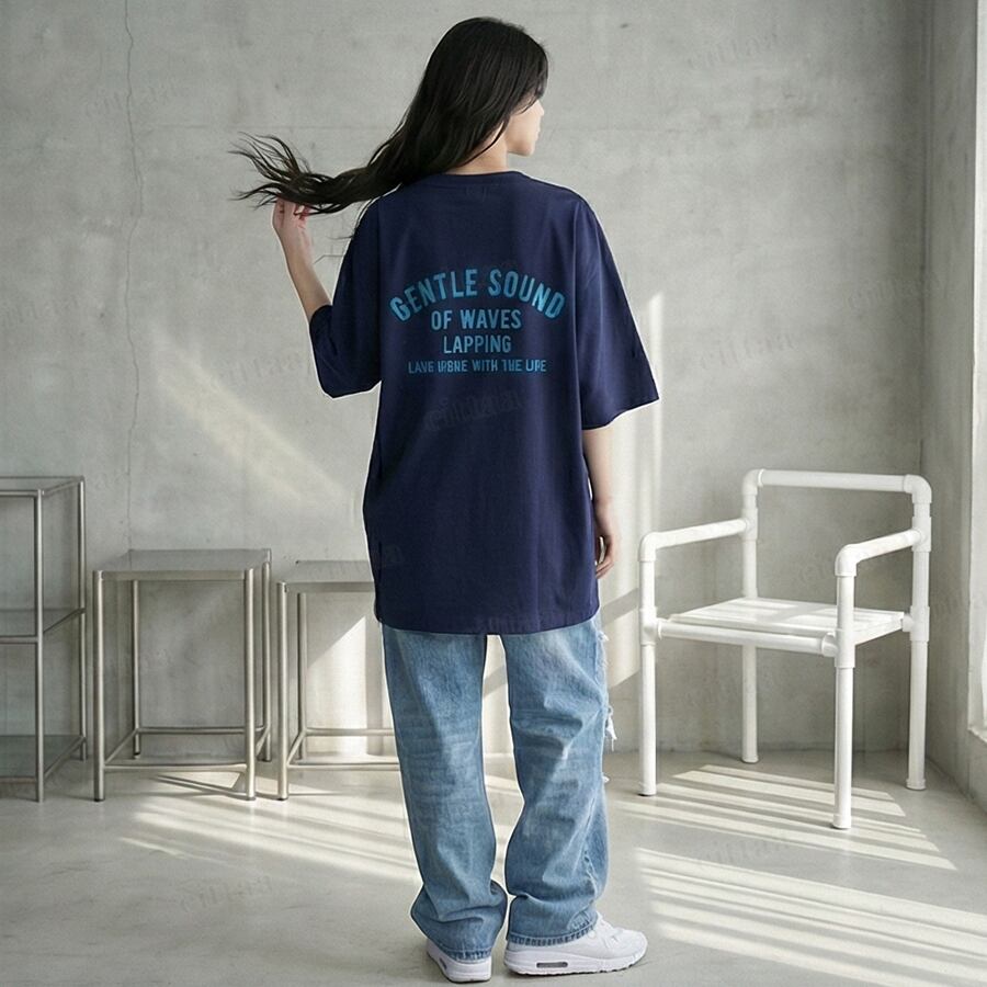 Y-4819 2026春新作♡GENTLE SOUNDバックロゴ半袖Tシャツ ダークブルー 0213