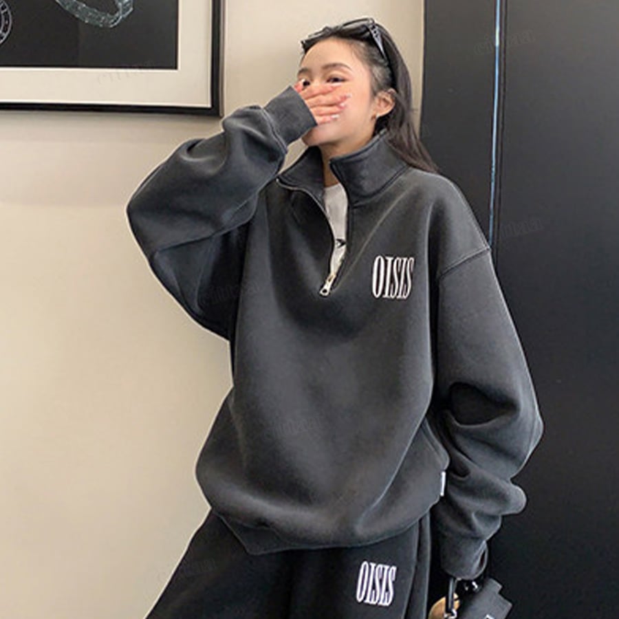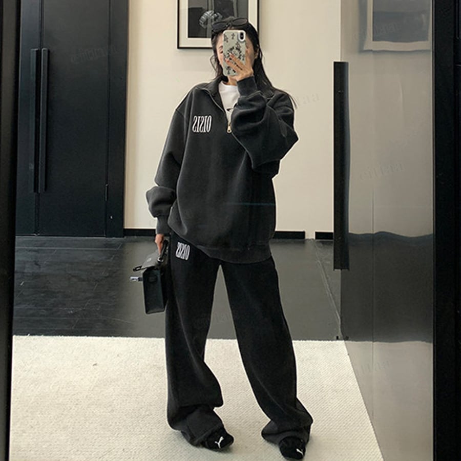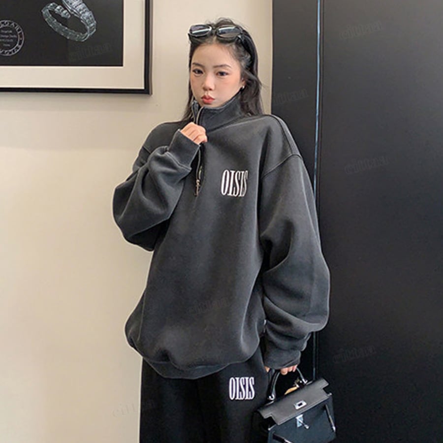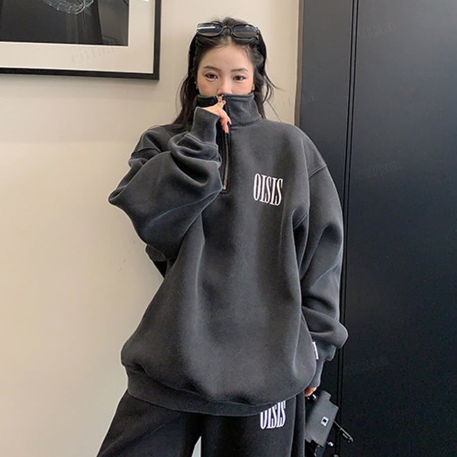 ★予約★D-912 2026新作♡【セットアップ可能】OISIS刺繍ロゴハーフジップスウェット ブラック
