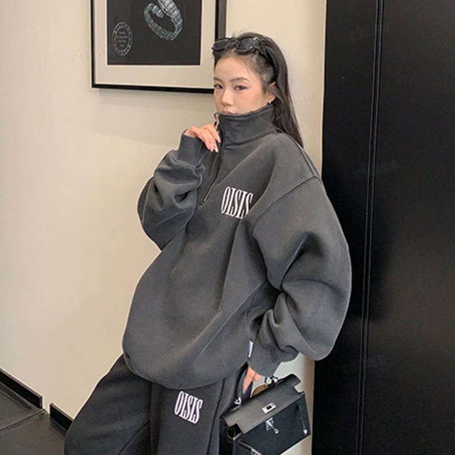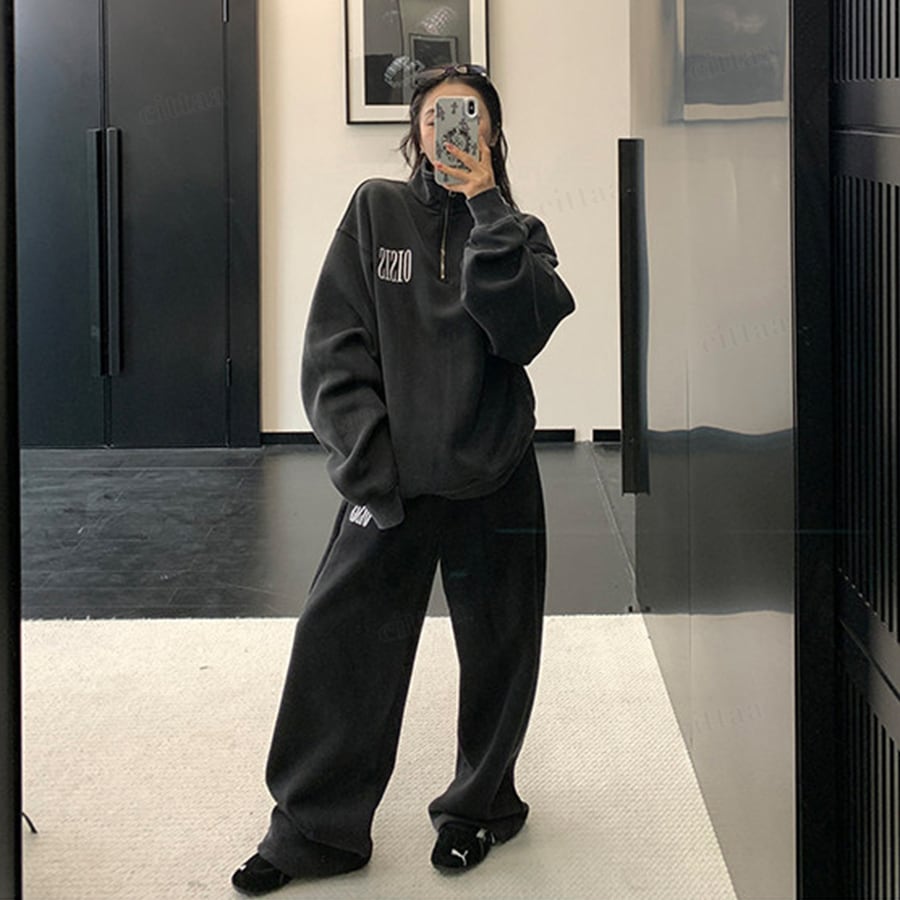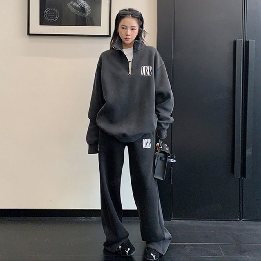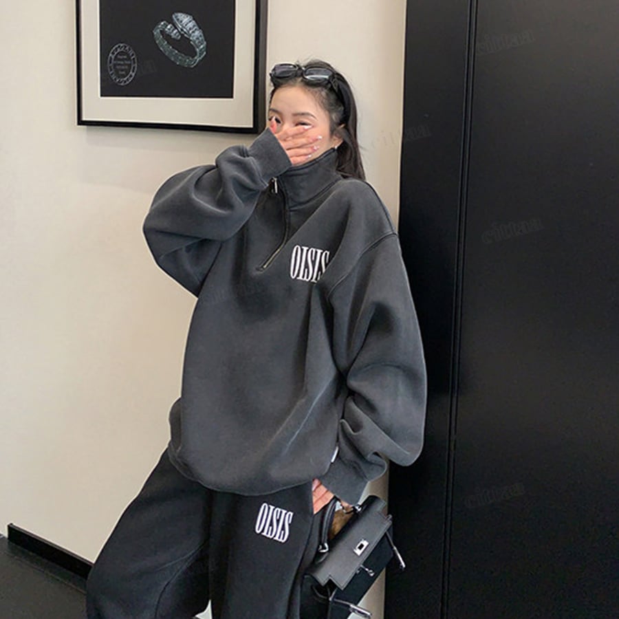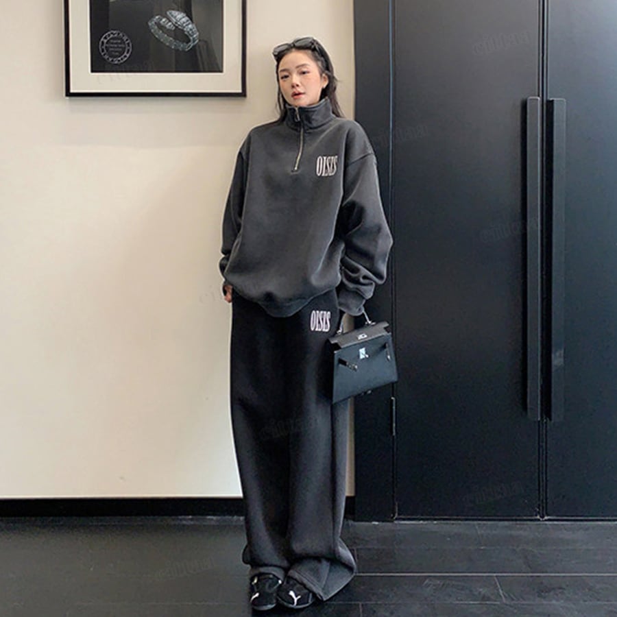 ★予約★D-912 2026新作♡【セットアップ可能】OISIS刺繍ロゴハーフジップスウェット ブラック