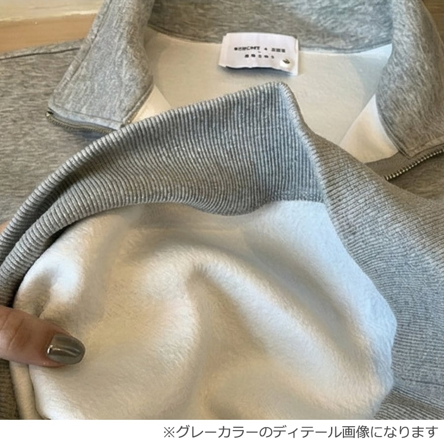 胸元の刺繍ロゴがさりげないアクセントに。シンプルながら存在感があり、さらっと着るだけでお洒落なコーデが完成します。ハーフジップ仕様で、ファスナーの開け具合によって印象チェンジも可能。インナーを見せたレイヤードスタイルもおすすめです。