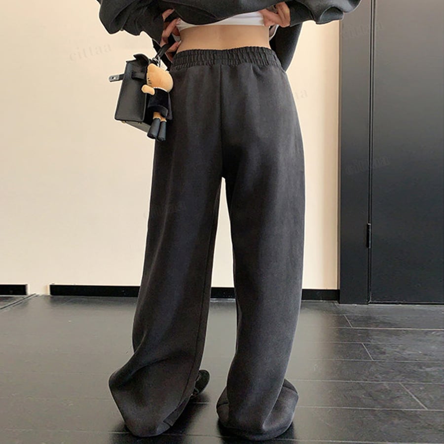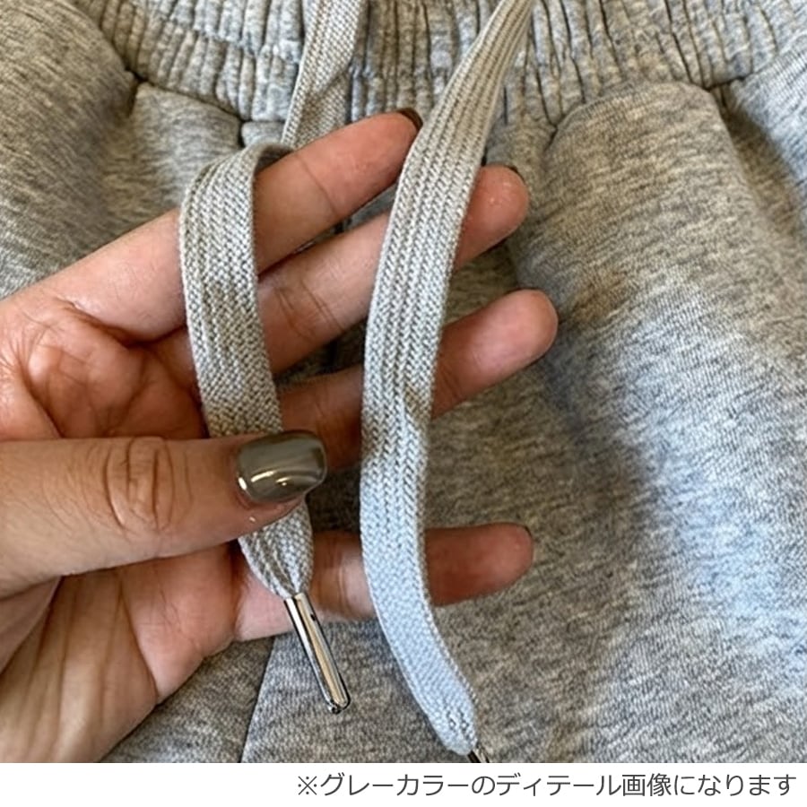 ウエストゴム&調整紐付きでストレスフリーな履き心地。ベーシックカラーで合わせるアイテムを選ばず着回し力も抜群。同デザインのトップスとセットアップで着用すれば、統一感のあるコーデが完成します。