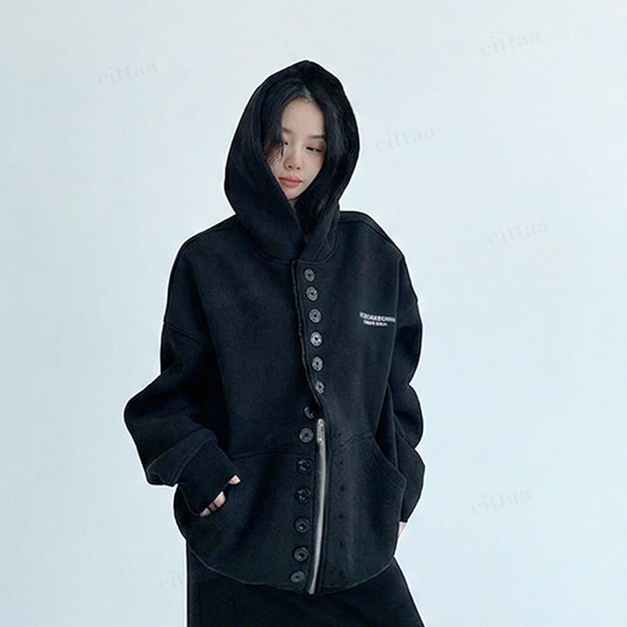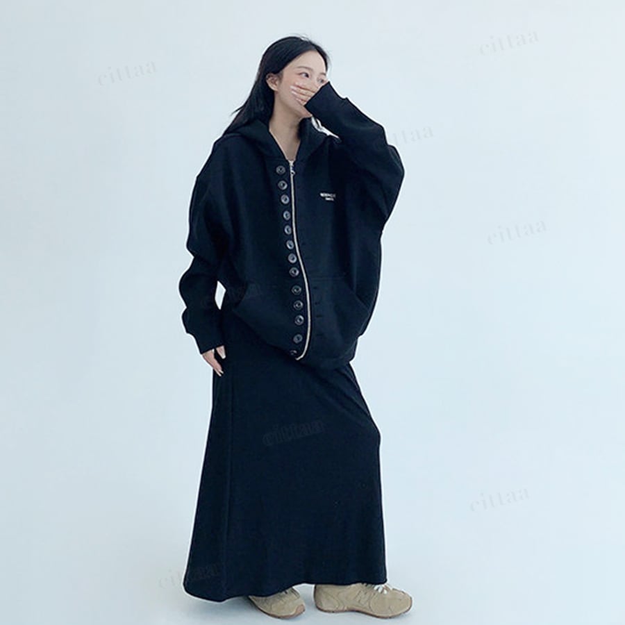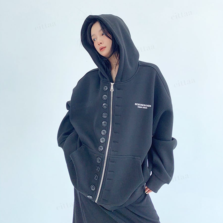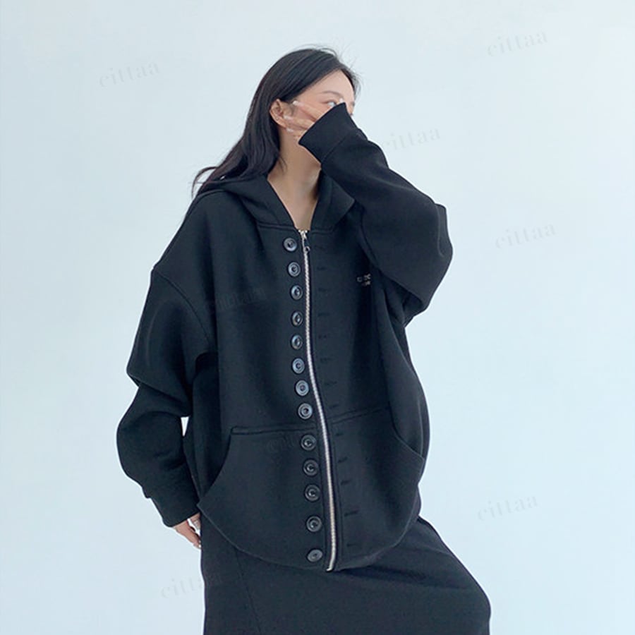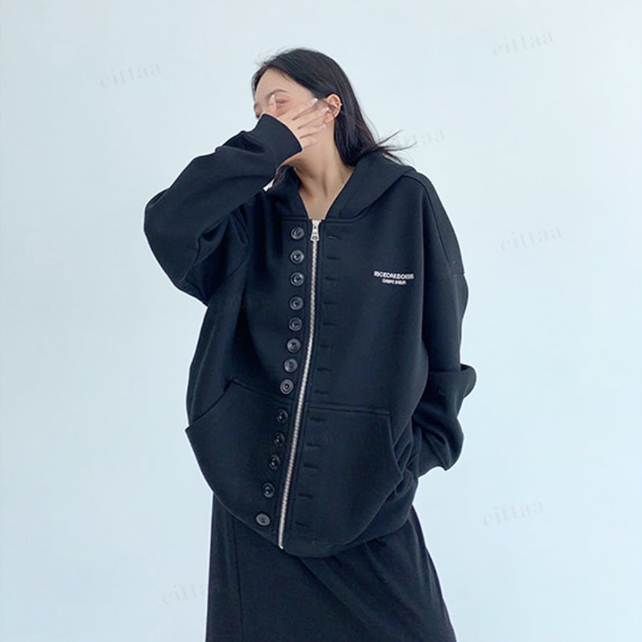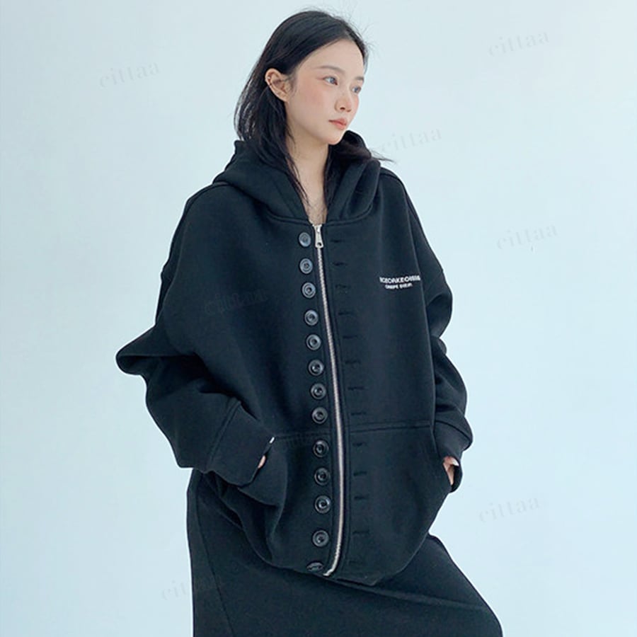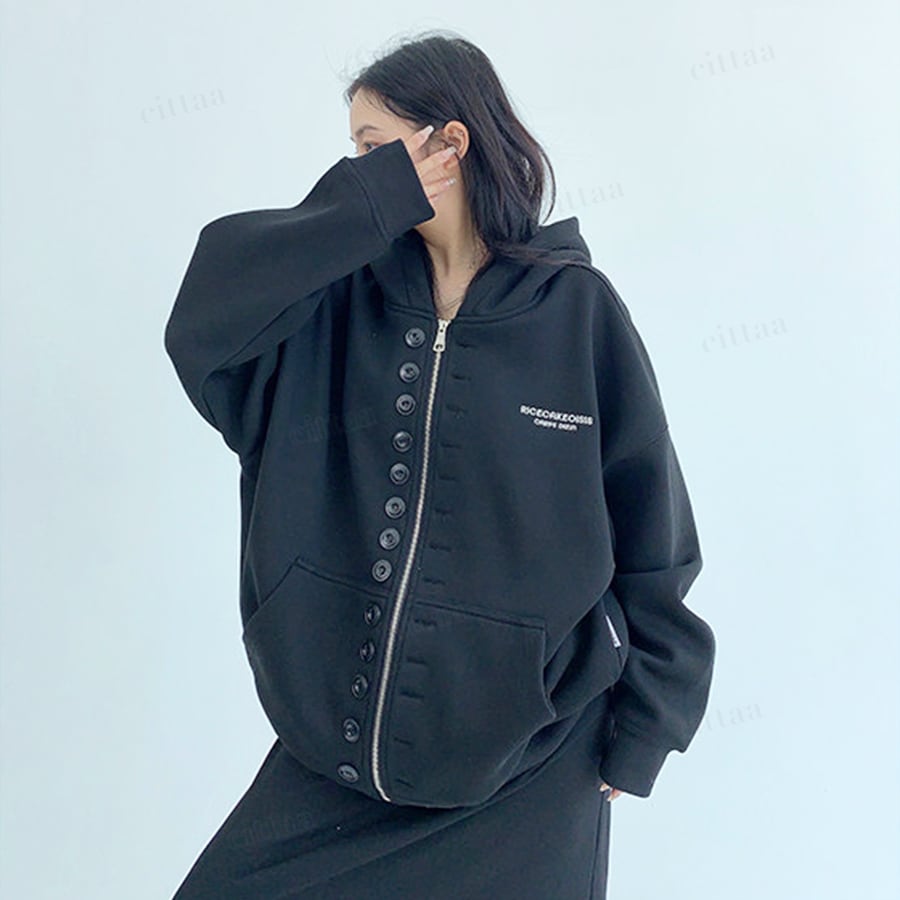 ★予約★D-918 2026新作♡RICECAKEメニーボタン2WAYジップアップパーカーフーディー ブラック