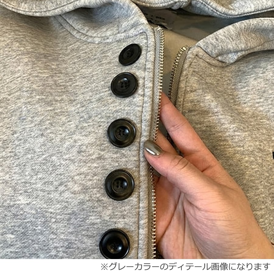 フロントに並んだボタンデザインで差がつくジップアップパーカー