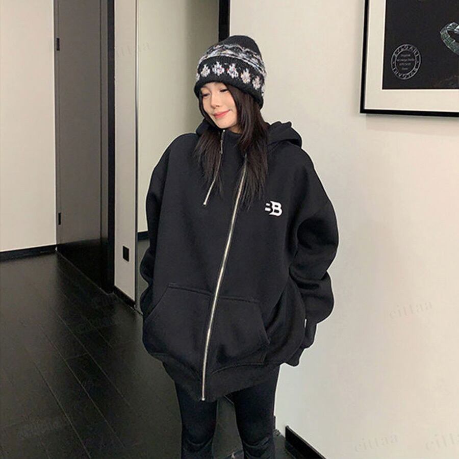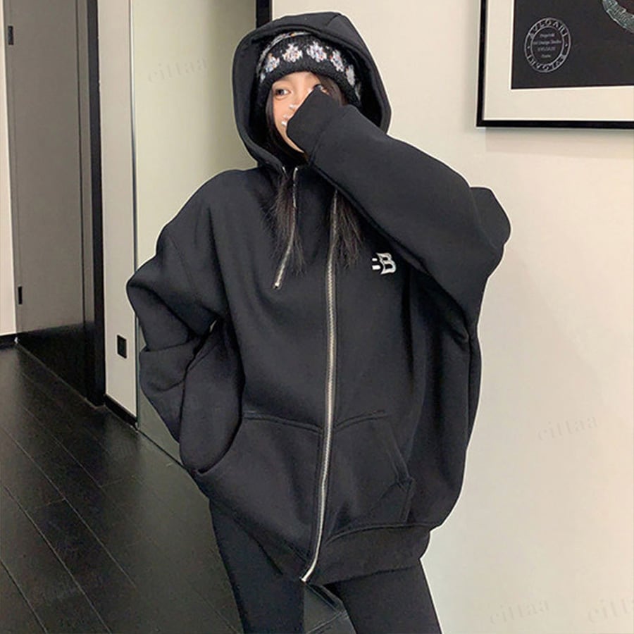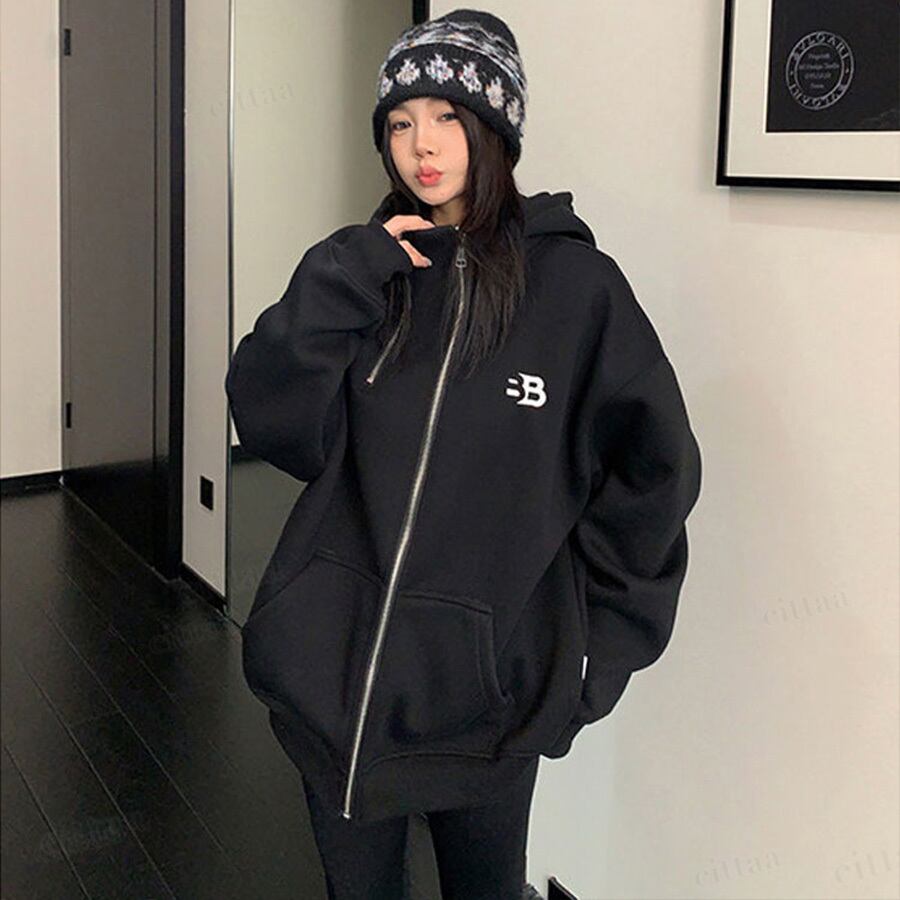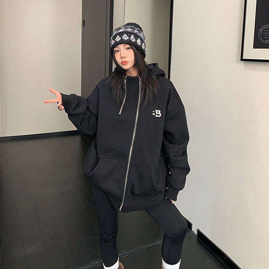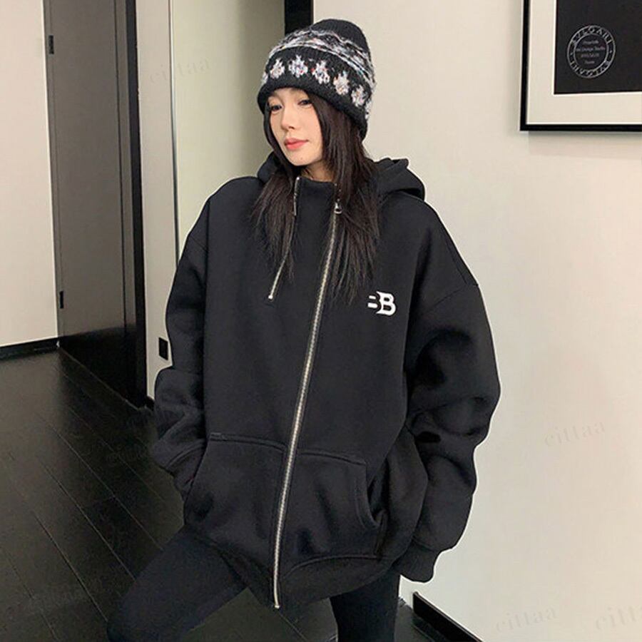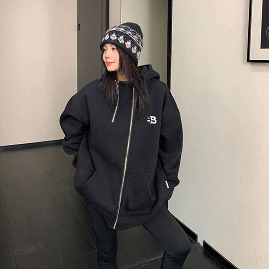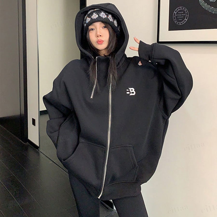 ★予約★D-920 2026新作♡BB刺繍ロゴファスナーデザインジップアップパーカー ブラック