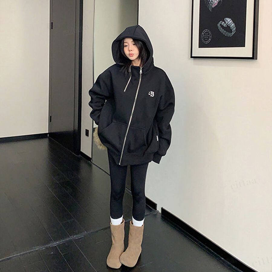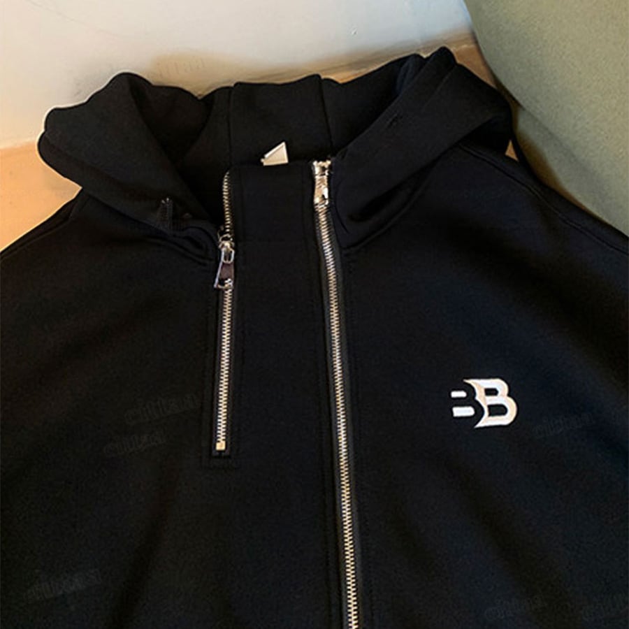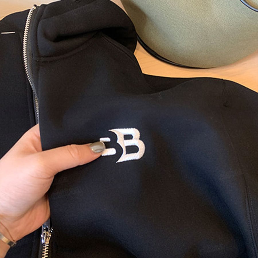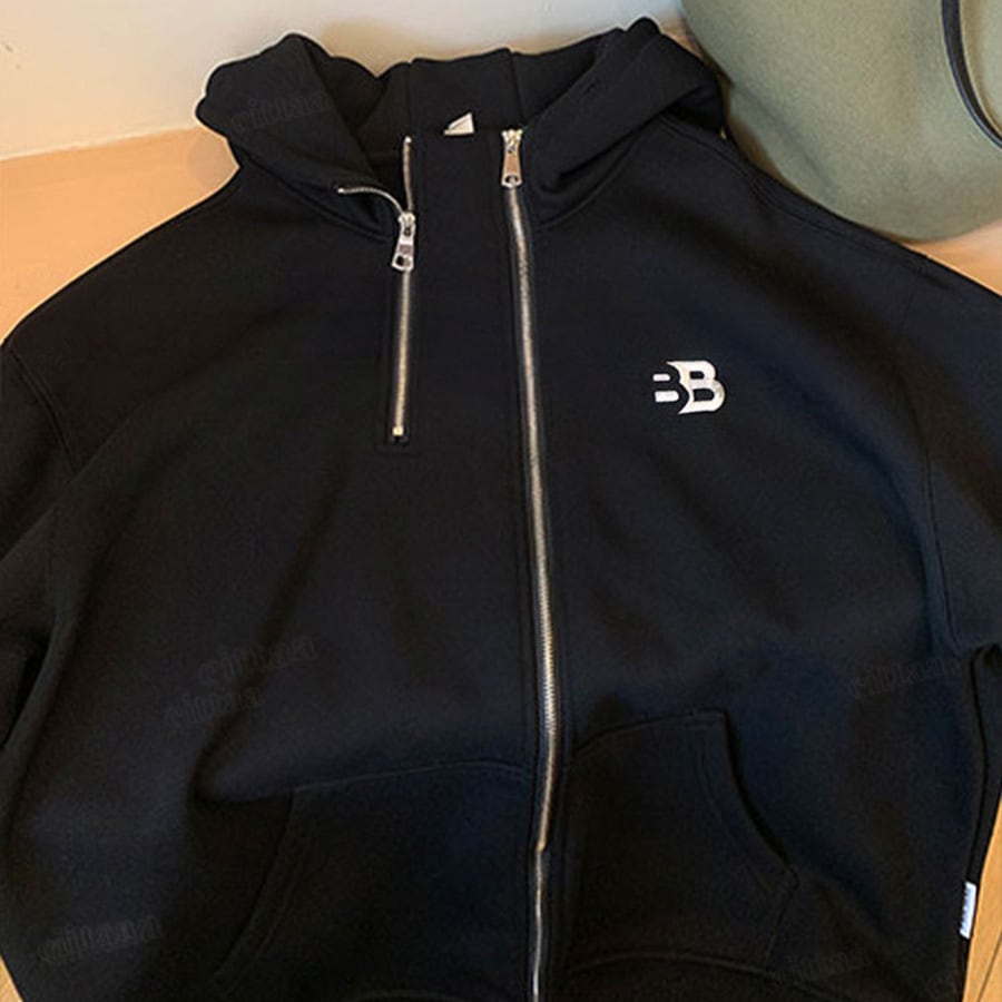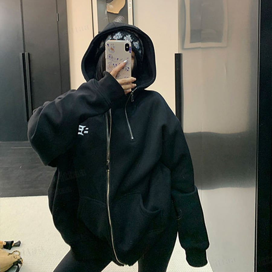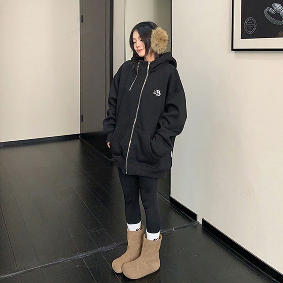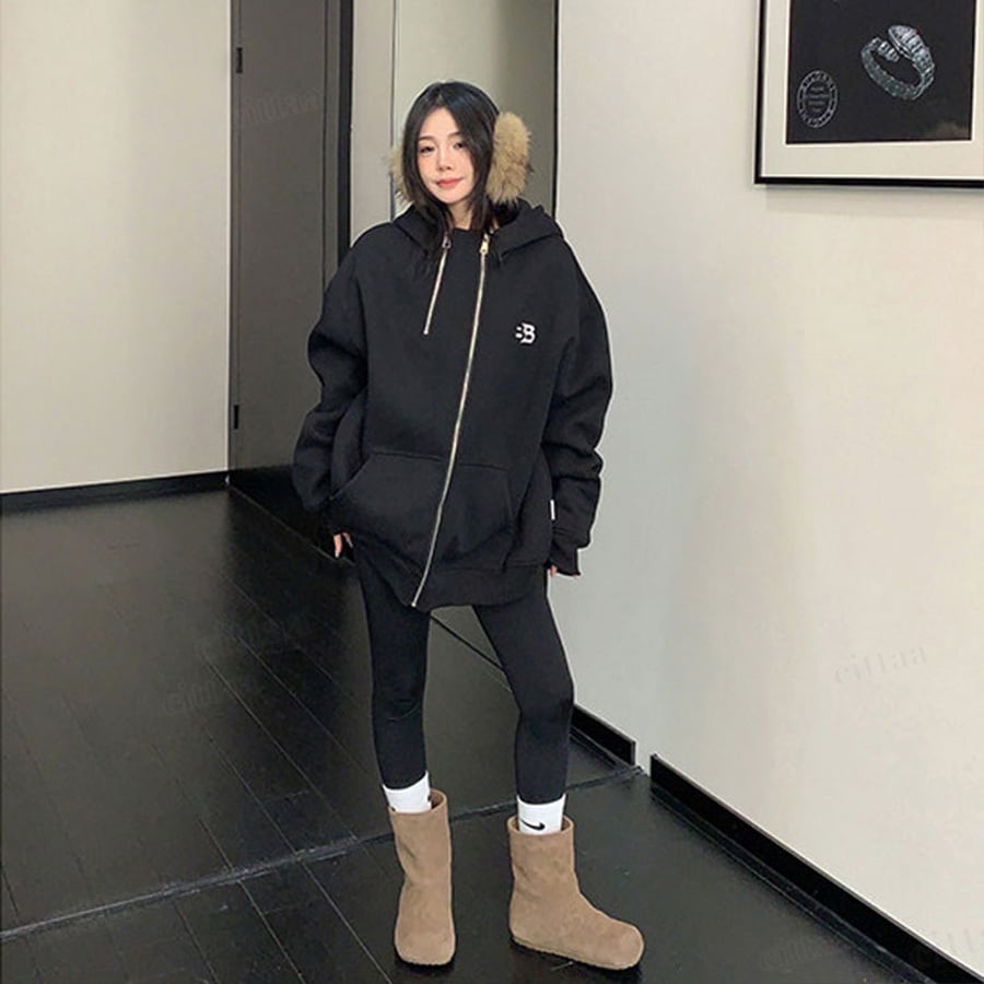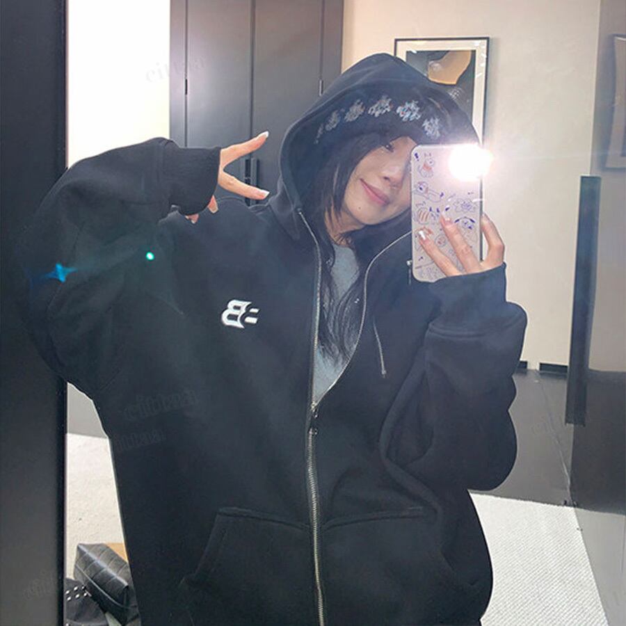 ★予約★D-920 2026新作♡BB刺繍ロゴファスナーデザインジップアップパーカー ブラック