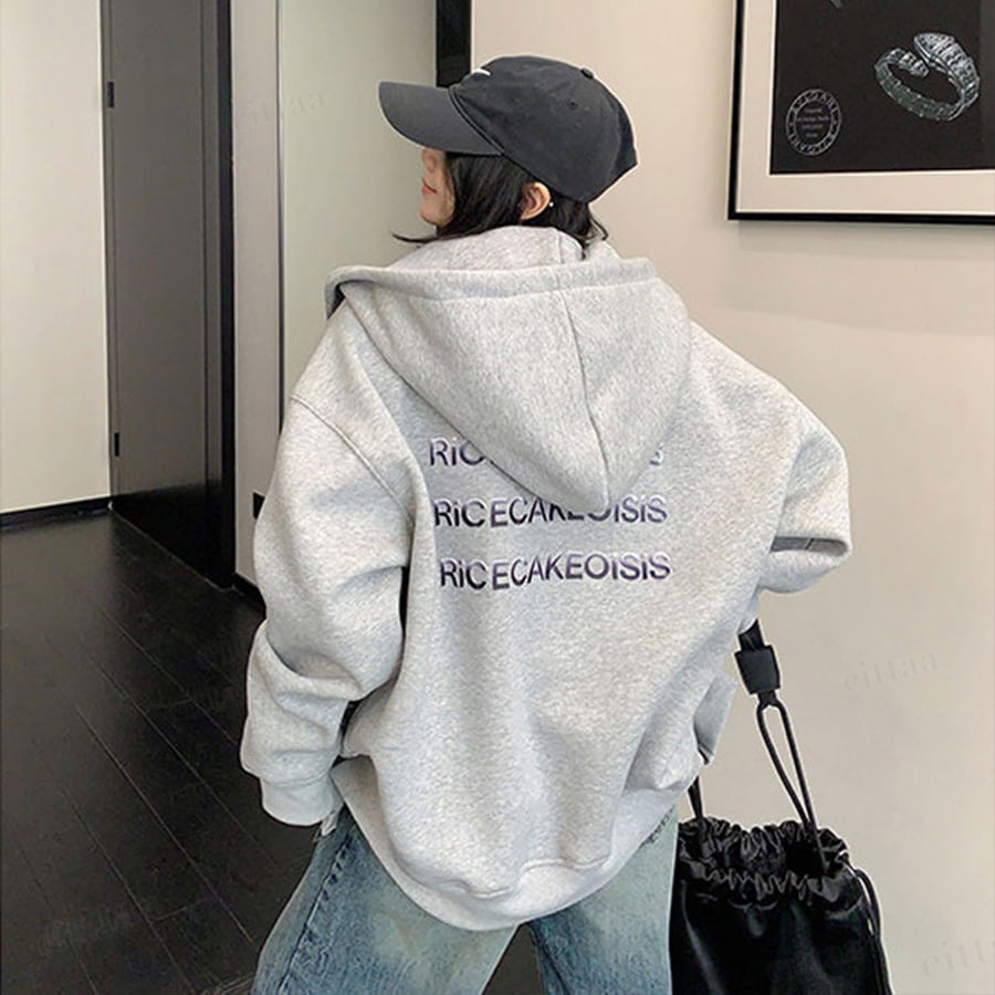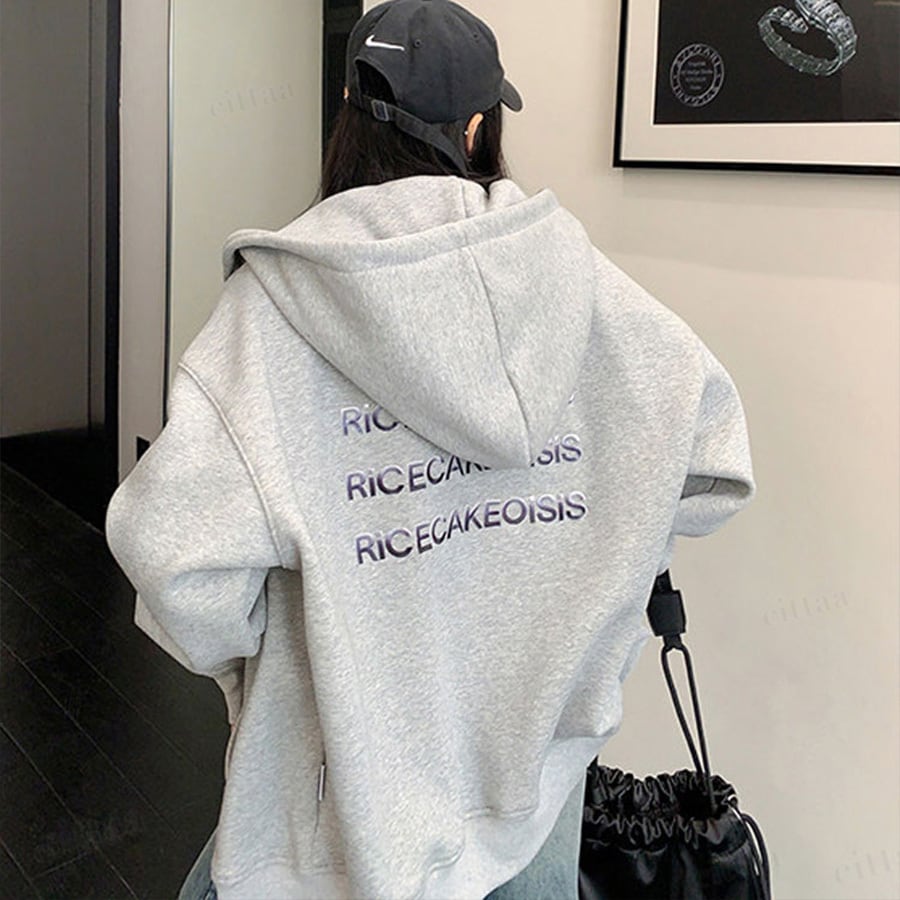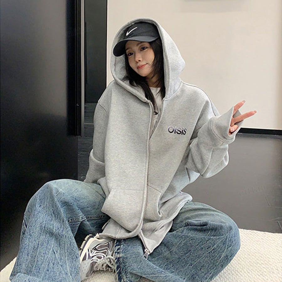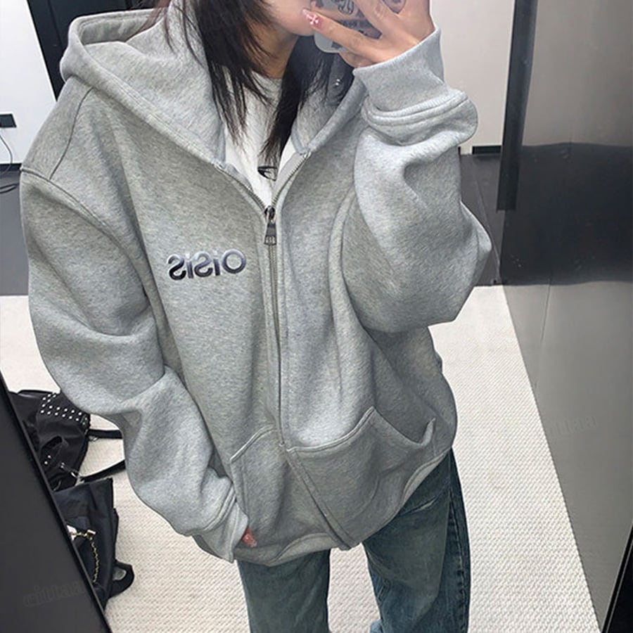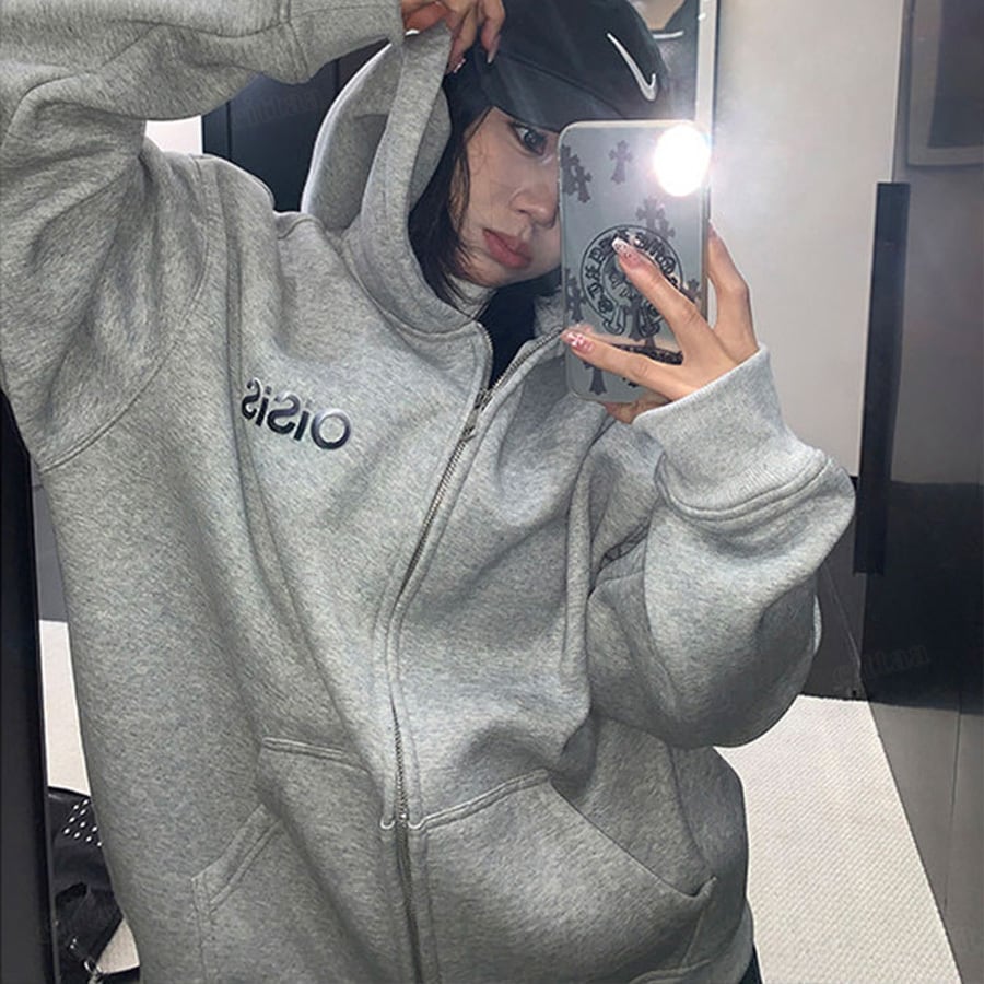 ★予約★D-922 2026新作♡OISISグラデーション立体刺繍ジップアップフーディー グレー