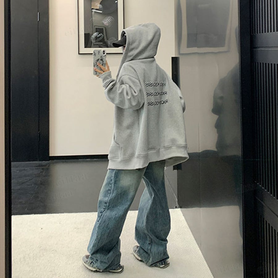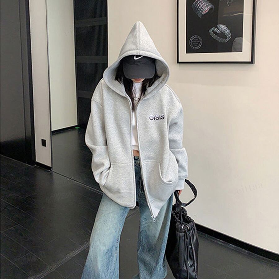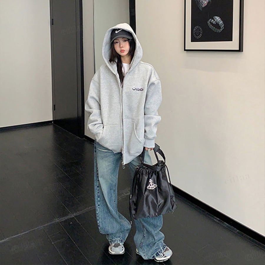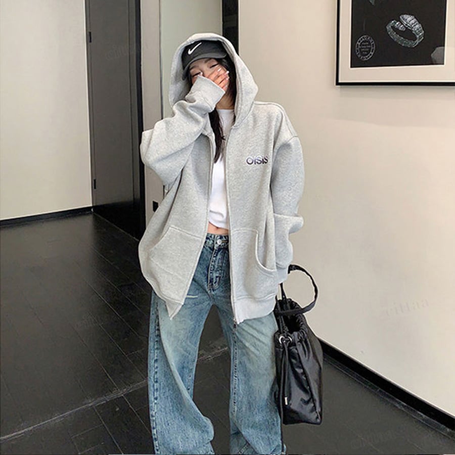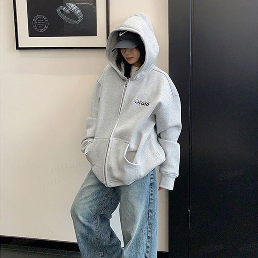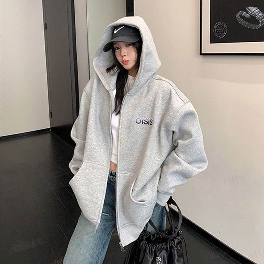 ★予約★D-922 2026新作♡OISISグラデーション立体刺繍ジップアップフーディー グレー