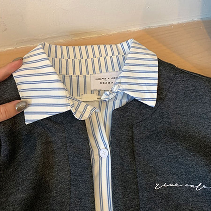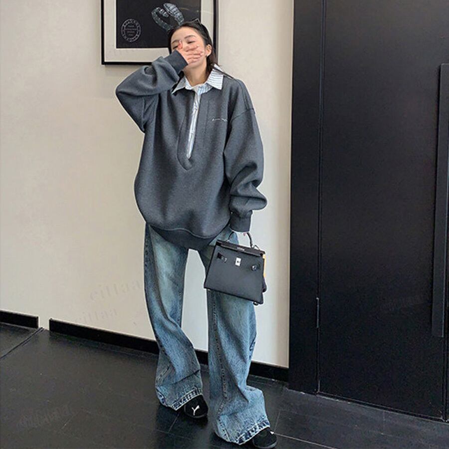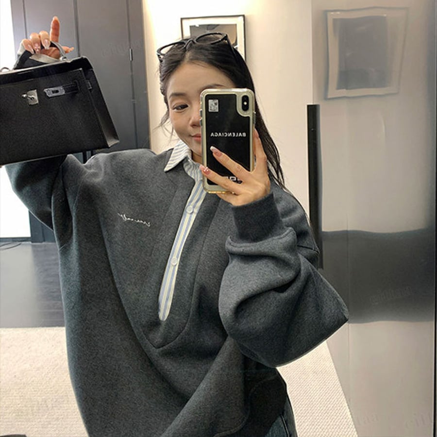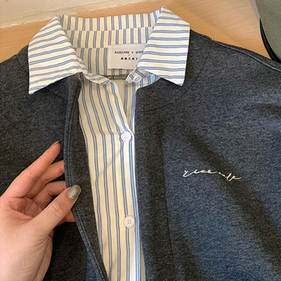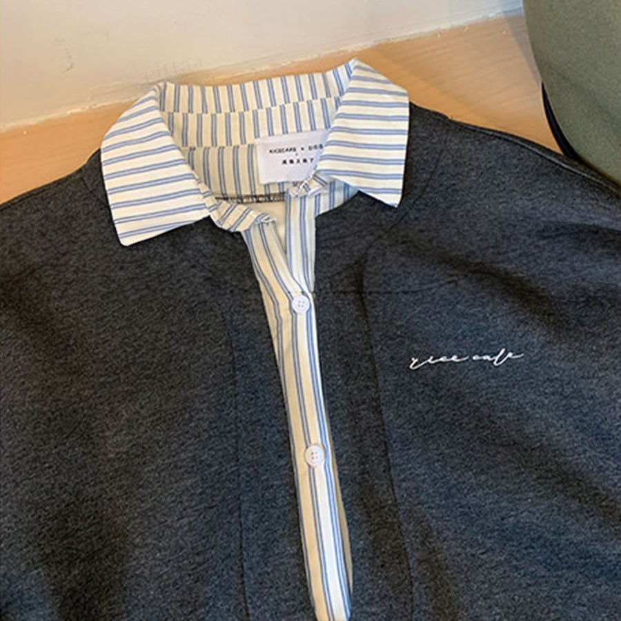 ★予約★D-924 2026新作♡ricecakeシャツドッキングデザインスウェット ダークグレー