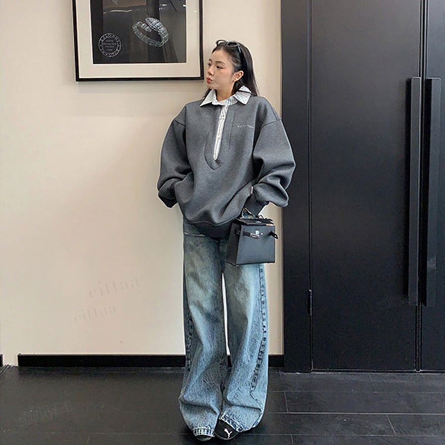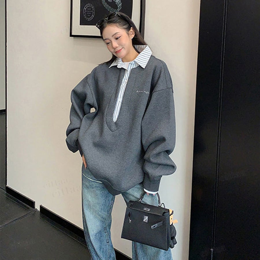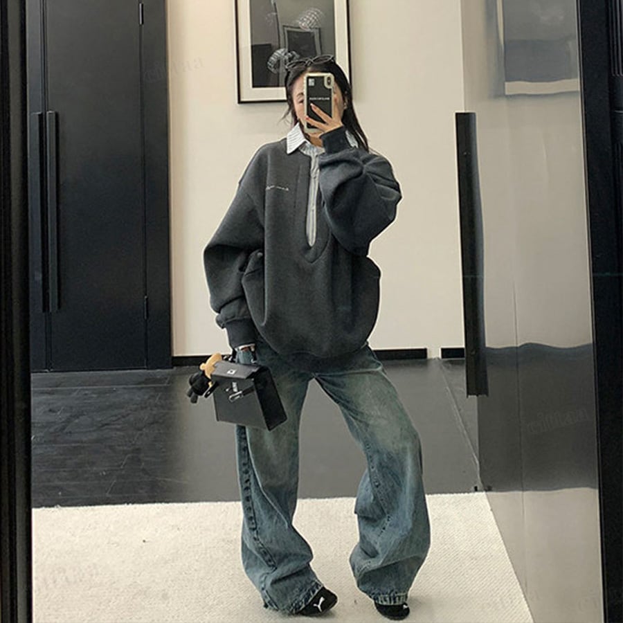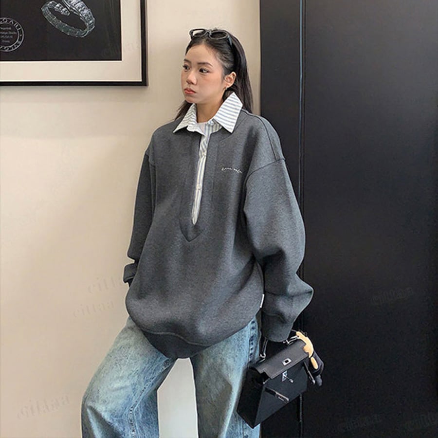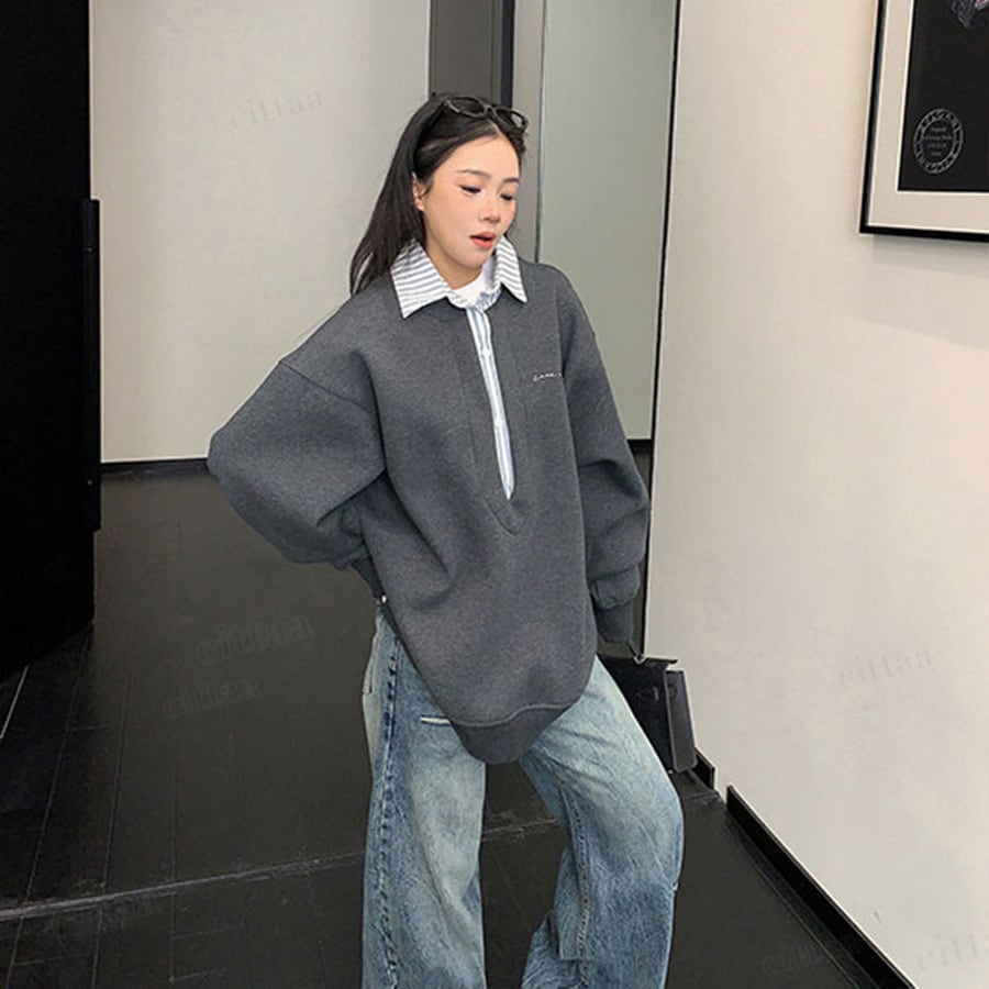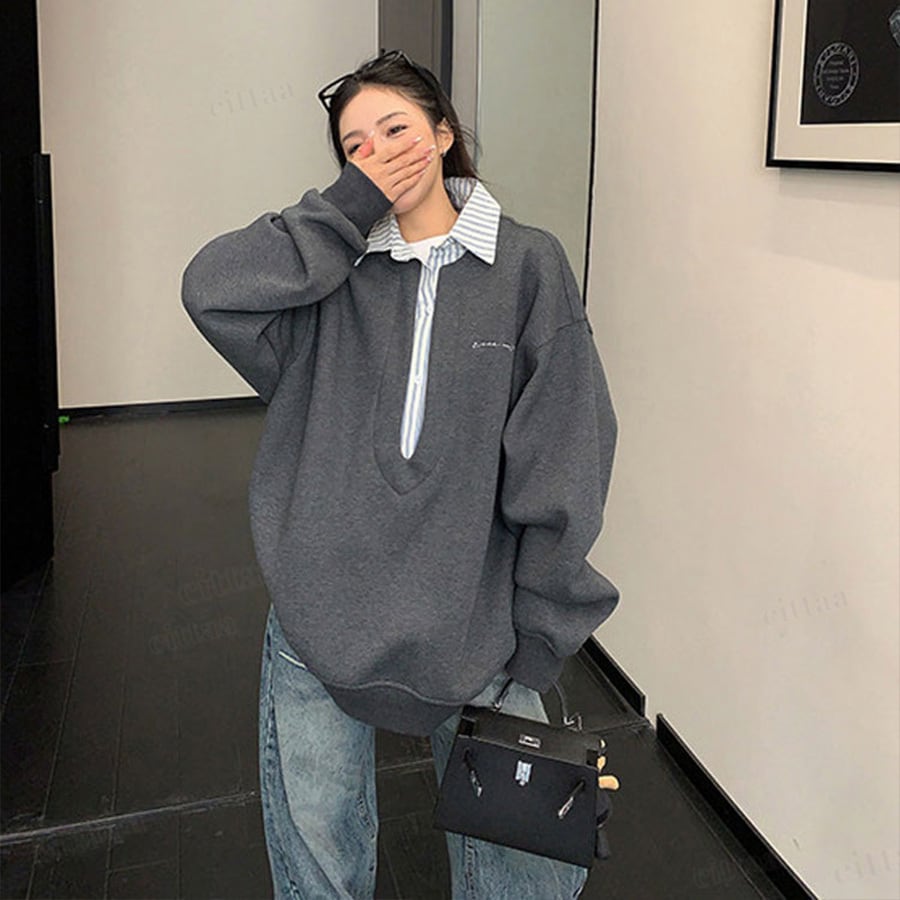 ★予約★D-924 2026新作♡ricecakeシャツドッキングデザインスウェット ダークグレー