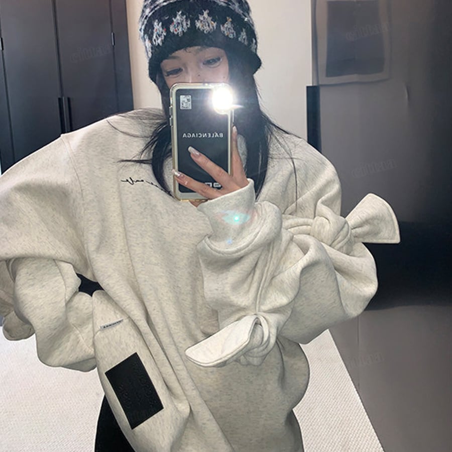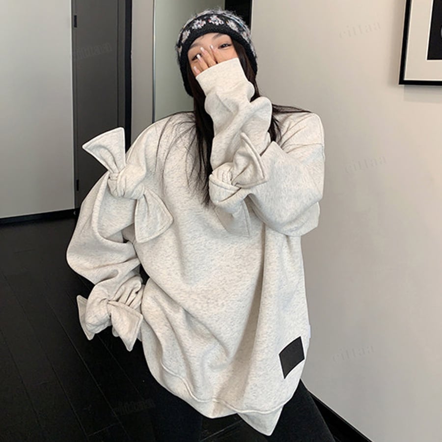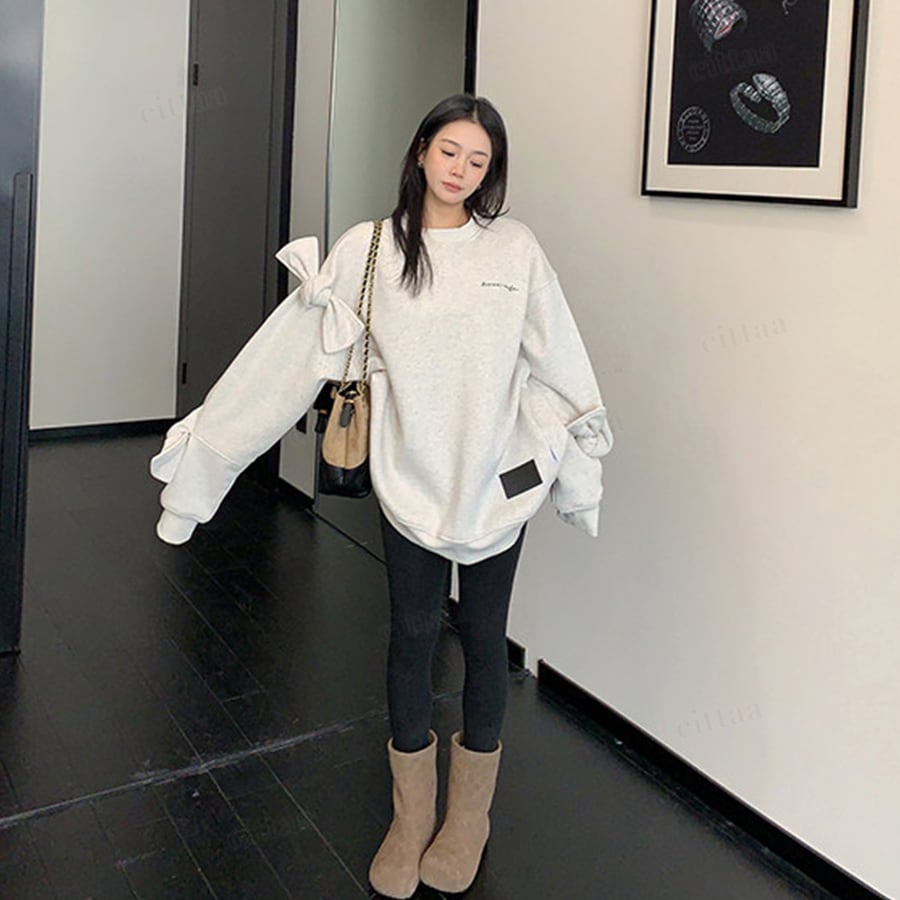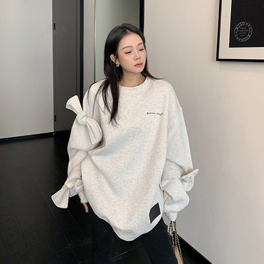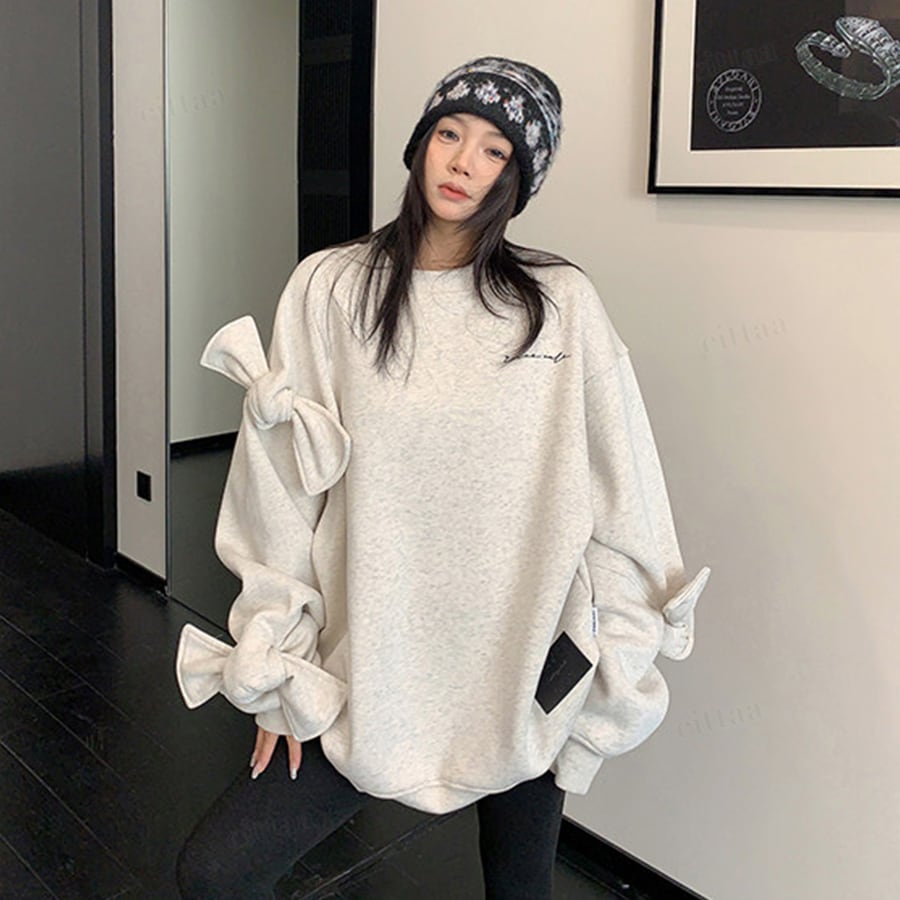 袖のBIGリボンがポイントの個性派スウェット