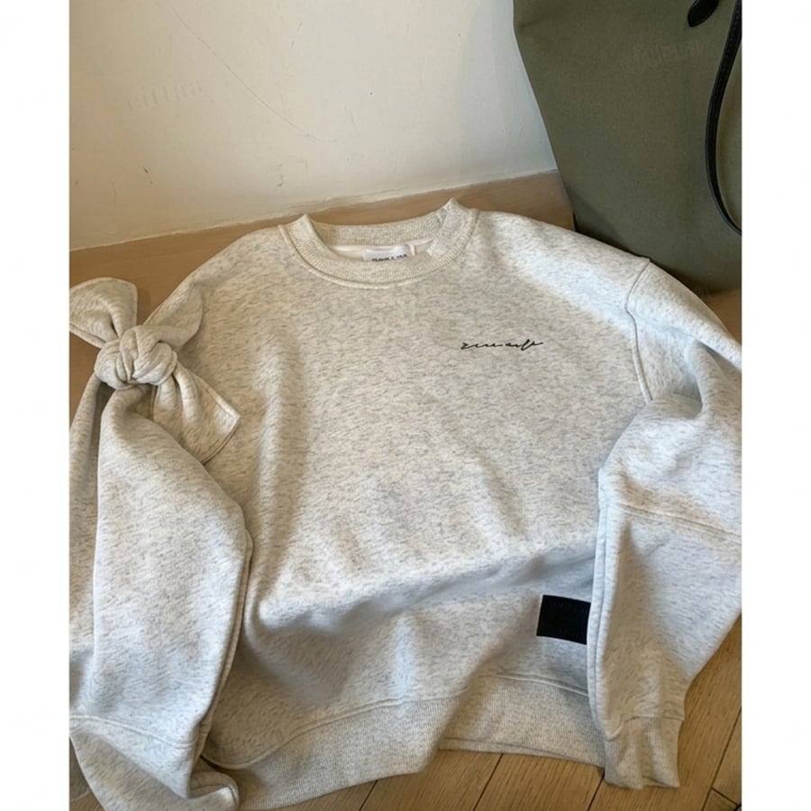 ★予約★D-925 2026新作♡ricecake刺繍ロゴBIG袖リボンスウェット ライトグレー