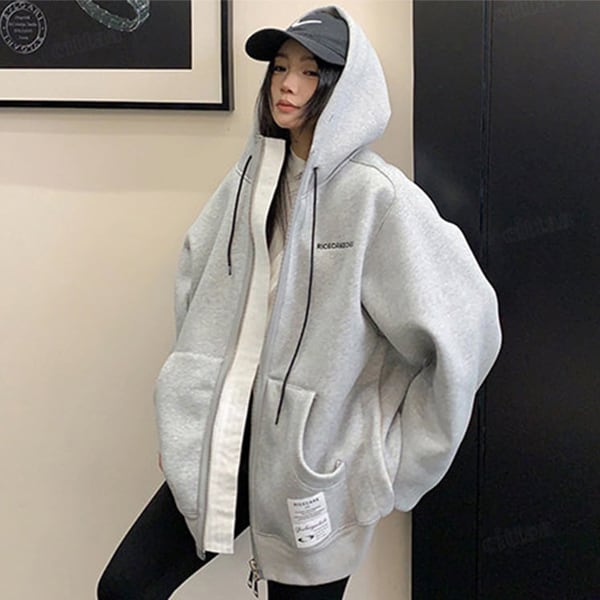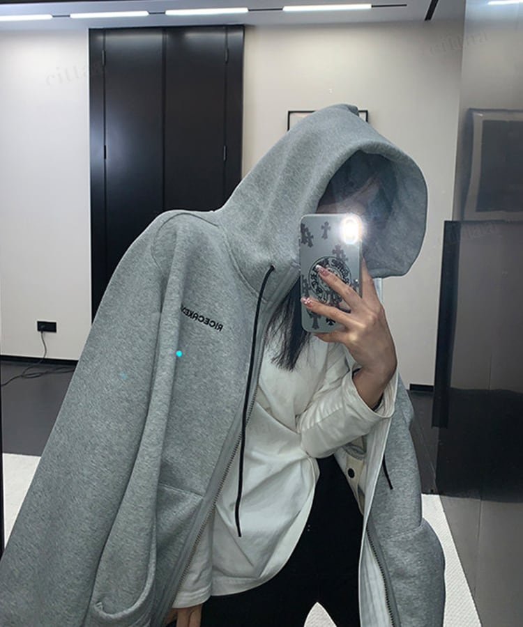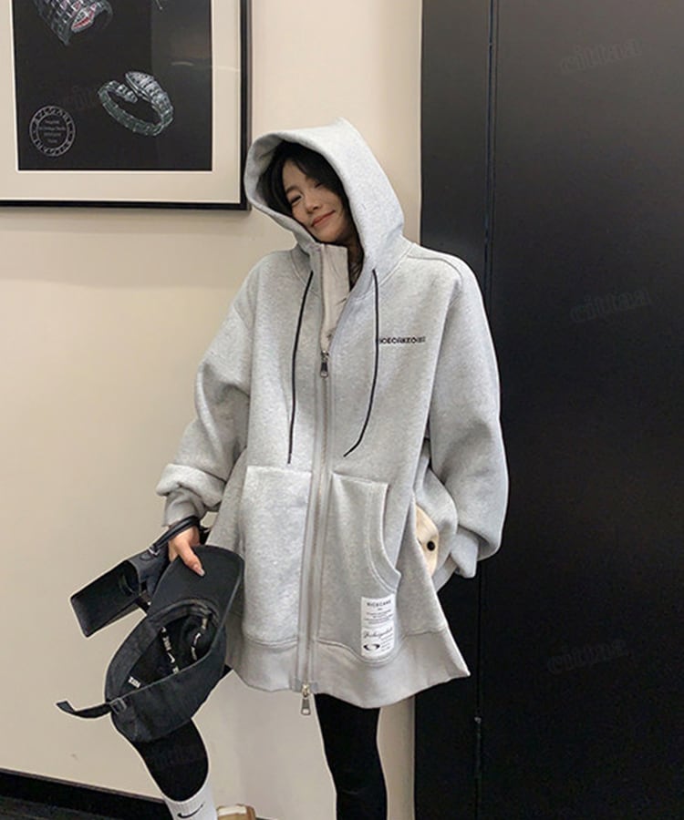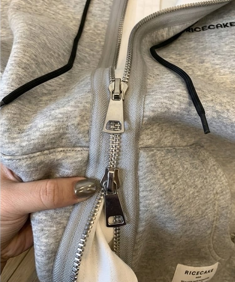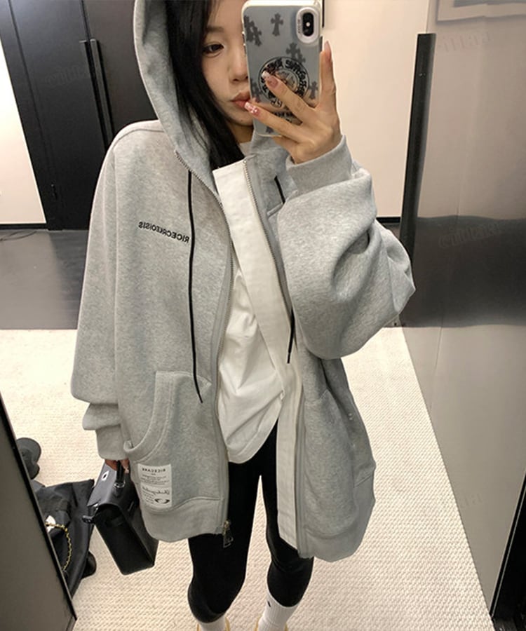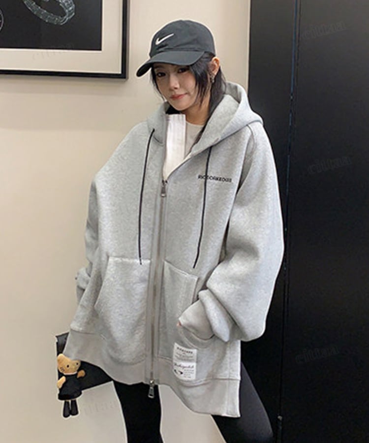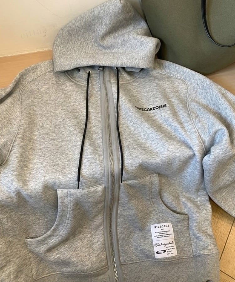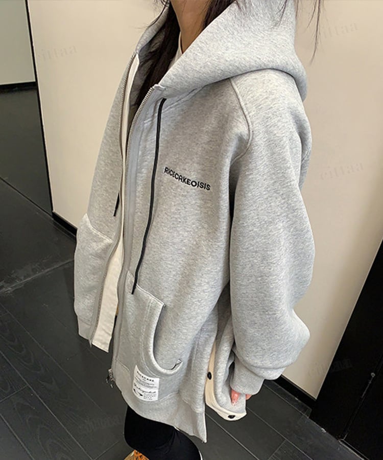 ★予約★D-928 2026新作♡RICECAKEラベル付きサイドボタンダブルジップフーディー グレー
